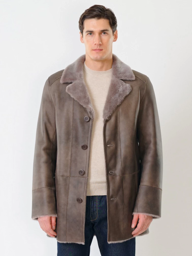 Товар дубленка классическая мужская 412, серо-коричневая, размер 50, артикул 70451 выполнен из овчина "мерино" с застежкой пуговицы. Рассчитан на сезон: осень-зима. Длина изделия 90 см, силуэт прямой.