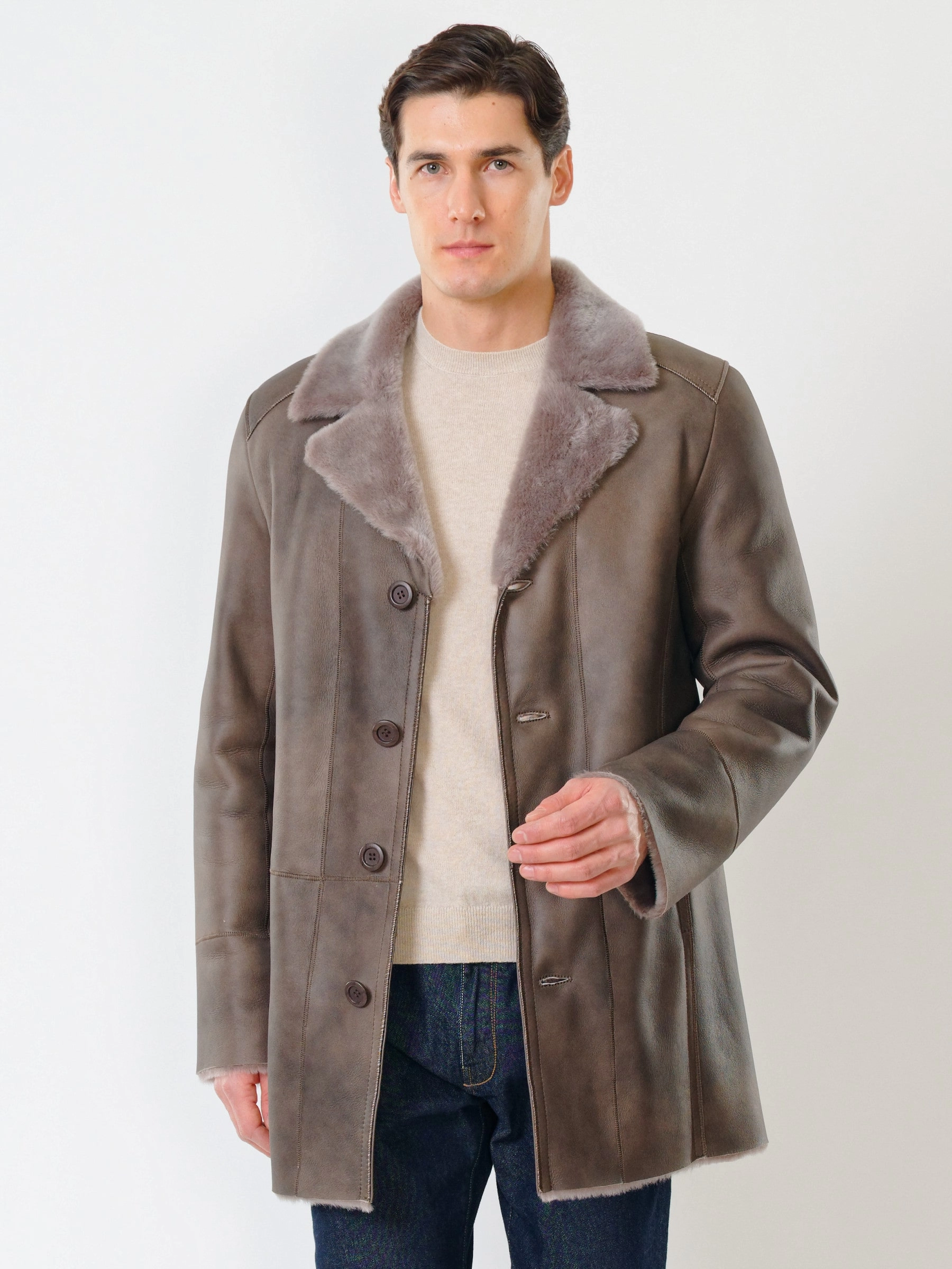 Дубленка классическая мужская 412, серо-коричневая, размер 50, артикул 70451
