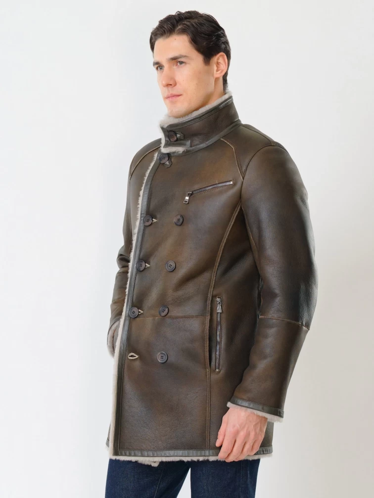 Товар классическая двубортная мужская дубленка 414, оливковая, размер 48, артикул 70460 выполнен из овчина "мерино" с застежкой пуговицы. Рассчитан на сезон: осень-зима. Длина изделия 75-90 см, силуэт прямой.
