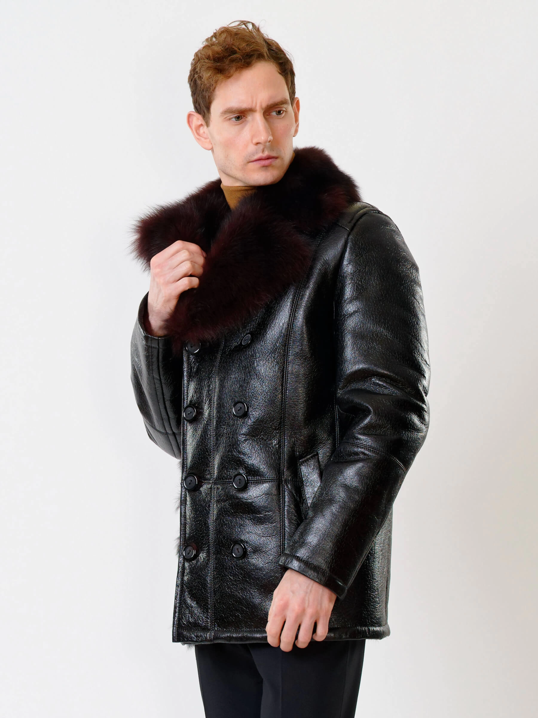 Стильная двубортная мужская дублёнка. Тосканская овчина высшего качества. Высокий, максимально густой мех прекрасно защитит от любого мороза. Новейшее устойчивое защитное покрытие. Английский воротник. Длина рукавов регулируется отворотом манжет. Чёткая, выверенная посадка по фигуре. Безупречная работа наших портных.