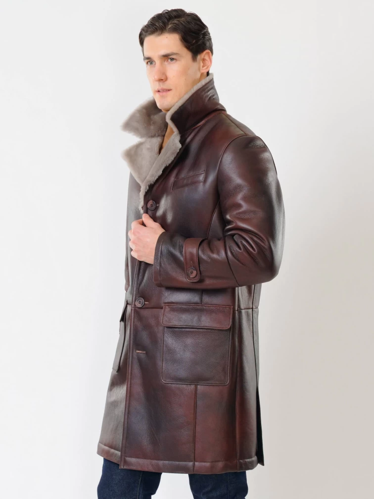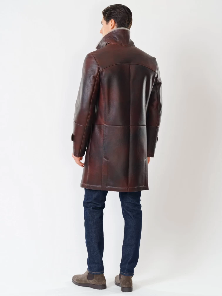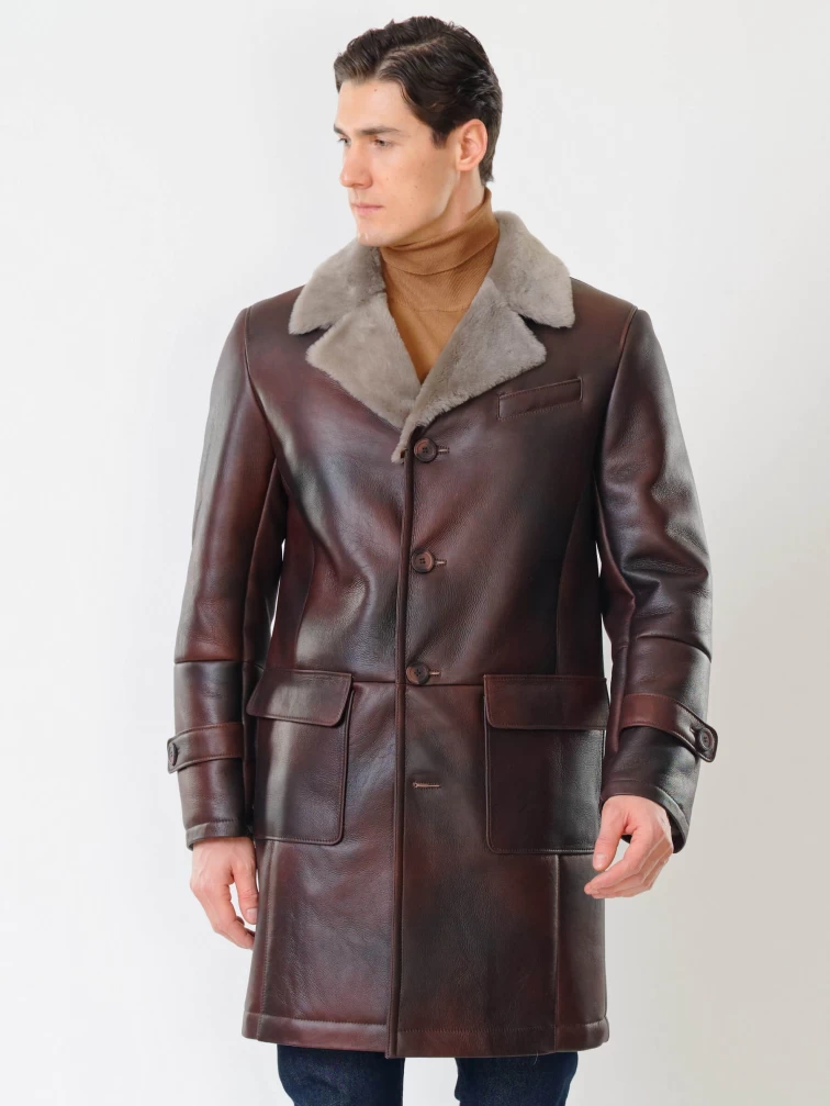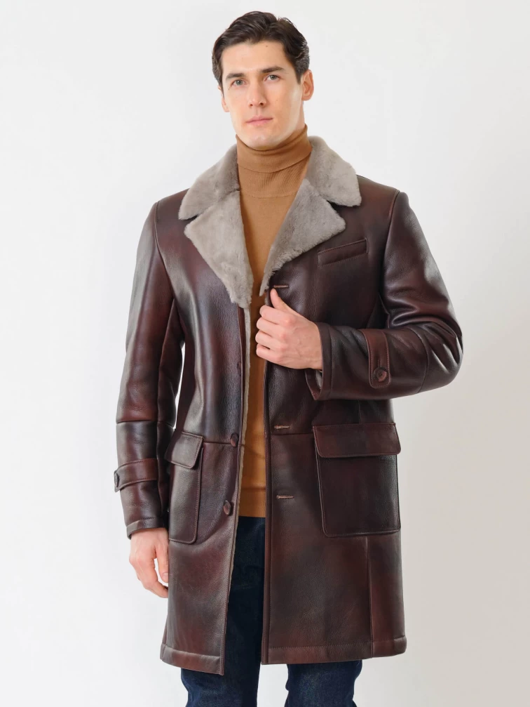 Мужское меховое пальто. Новейшее защитное покрытие. Особо прочные нитки. Приятный на ощупь, густой, красивый мех мериносной породы овец. Идеальные швы, продуманные и удобные элементы. Аккуратность во всей работе. Чёткая и очень удобная посадка по фигуре. Великолепная свобода движений. Абсолютный комфорт.