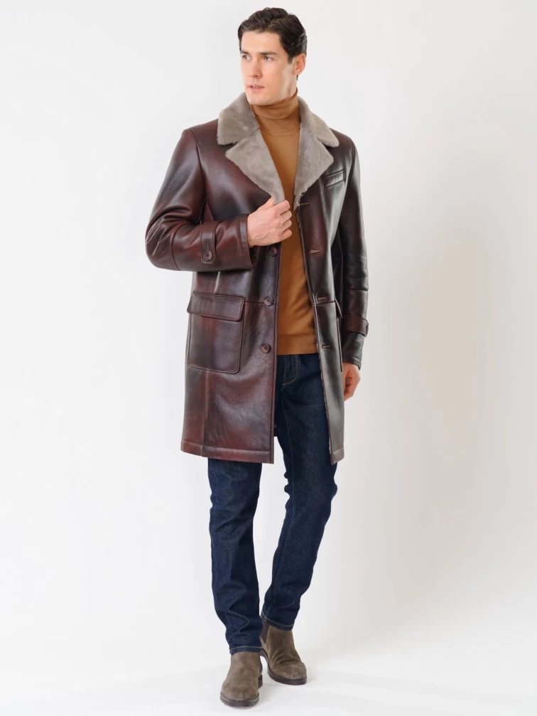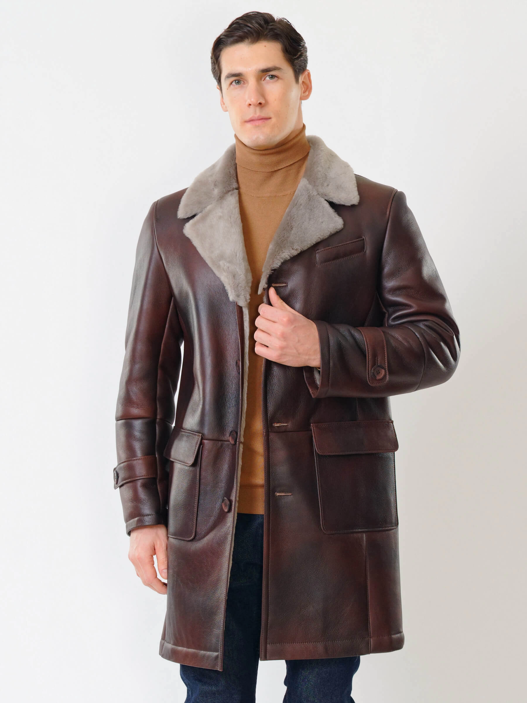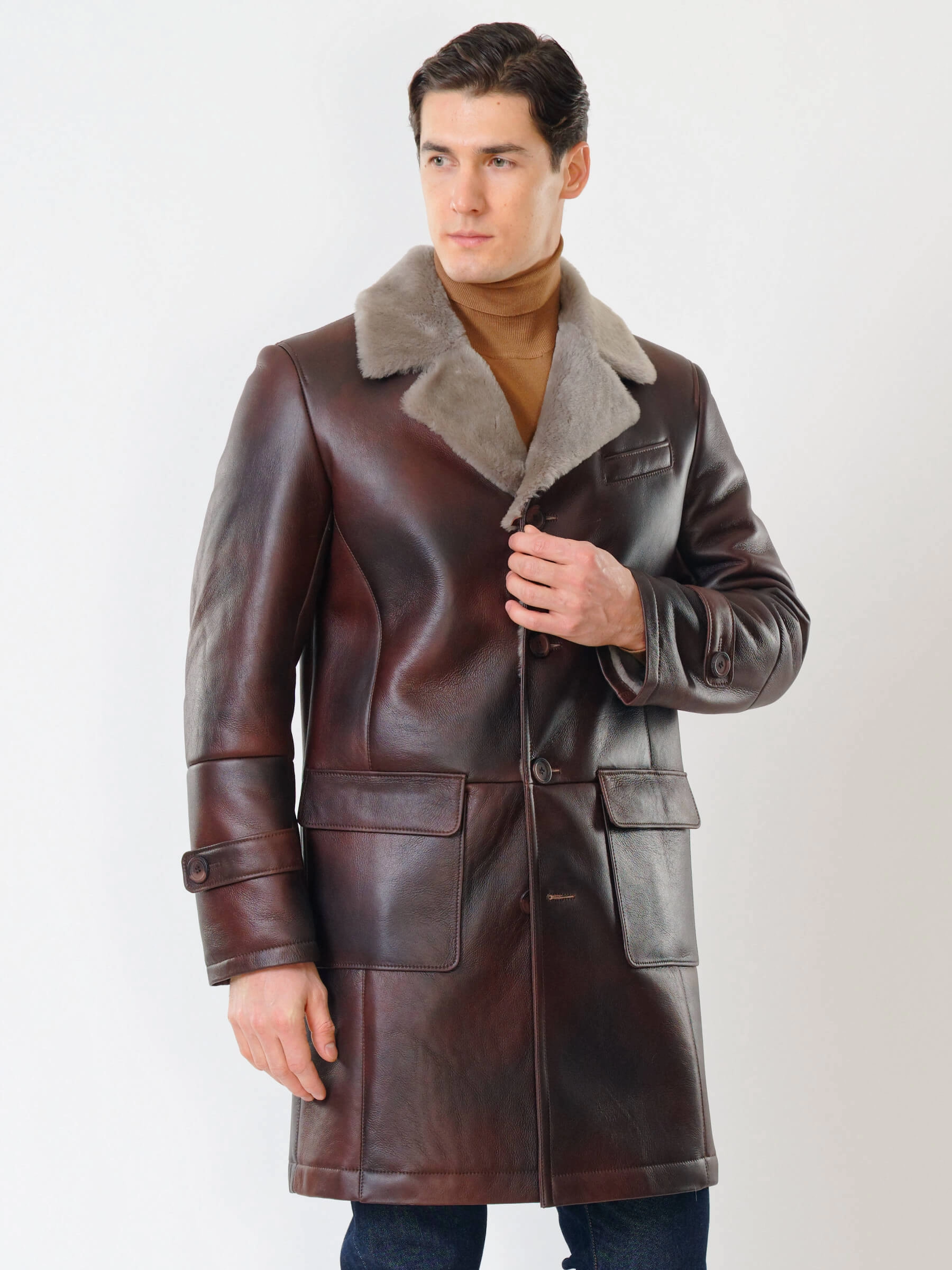 Длинная классическая мужская дубленка 419, виски, размер 62, артикул 70480