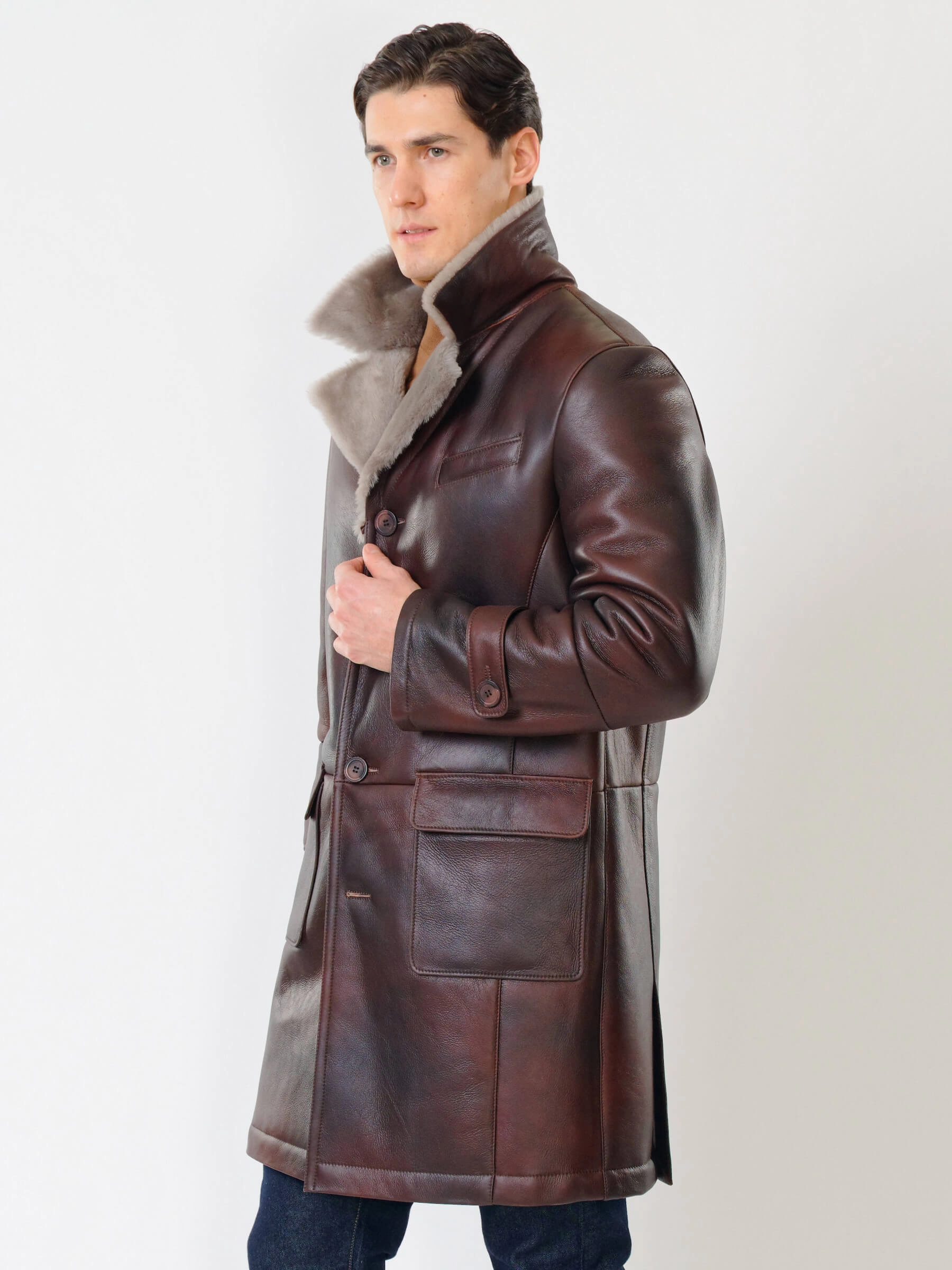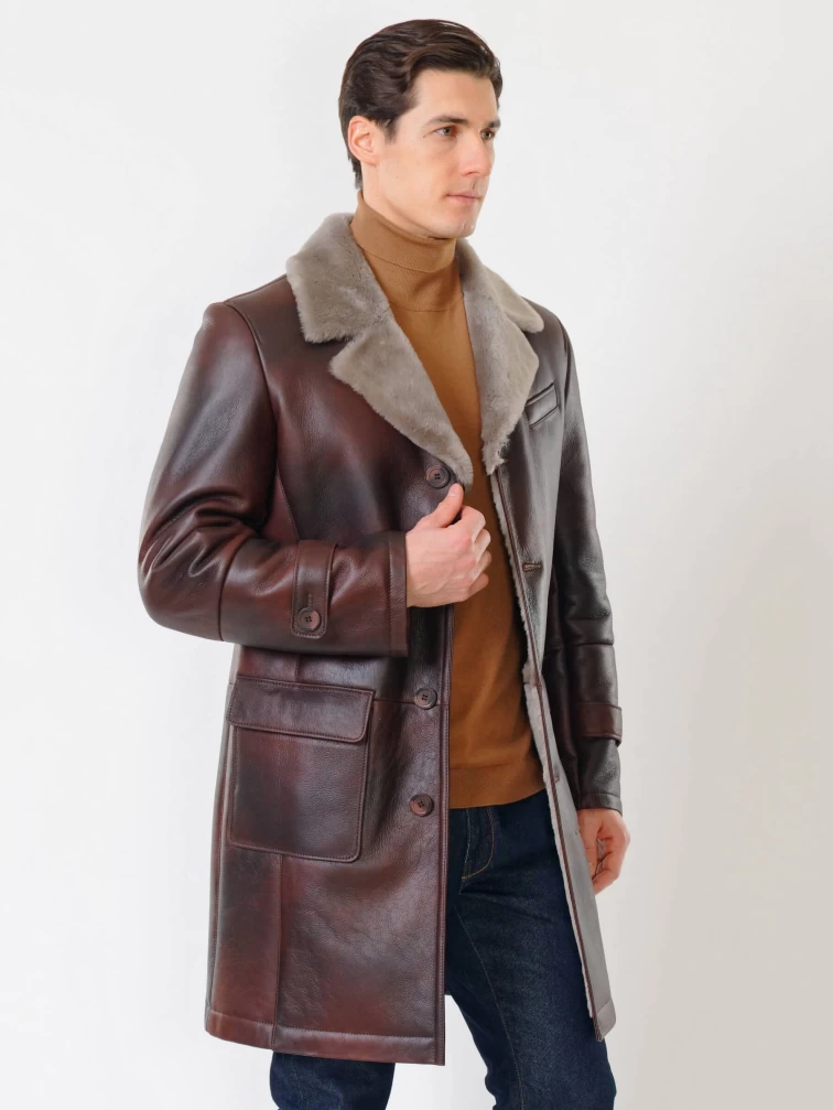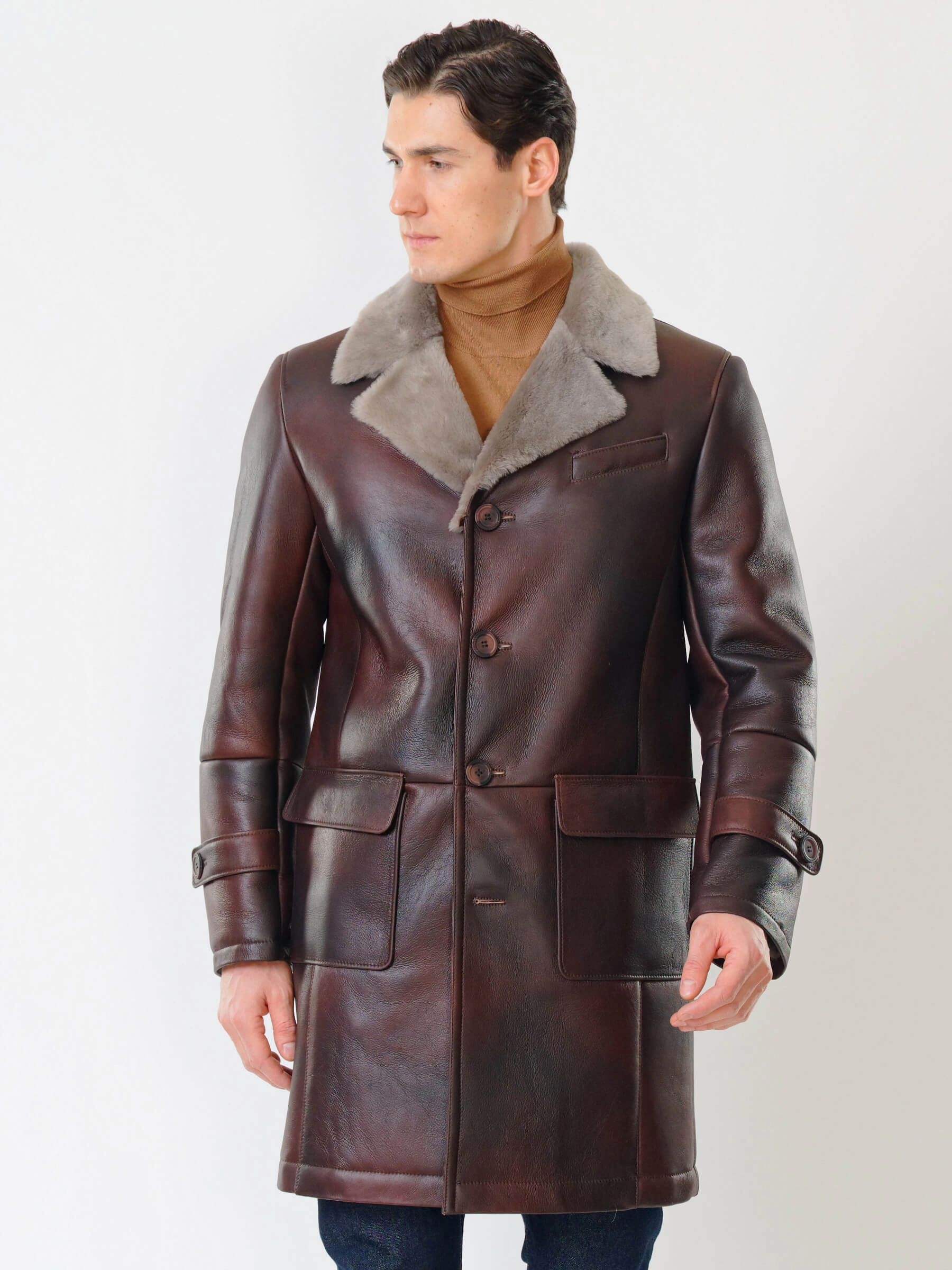 Длинная классическая мужская дубленка 419, виски, размер 62, артикул 70480