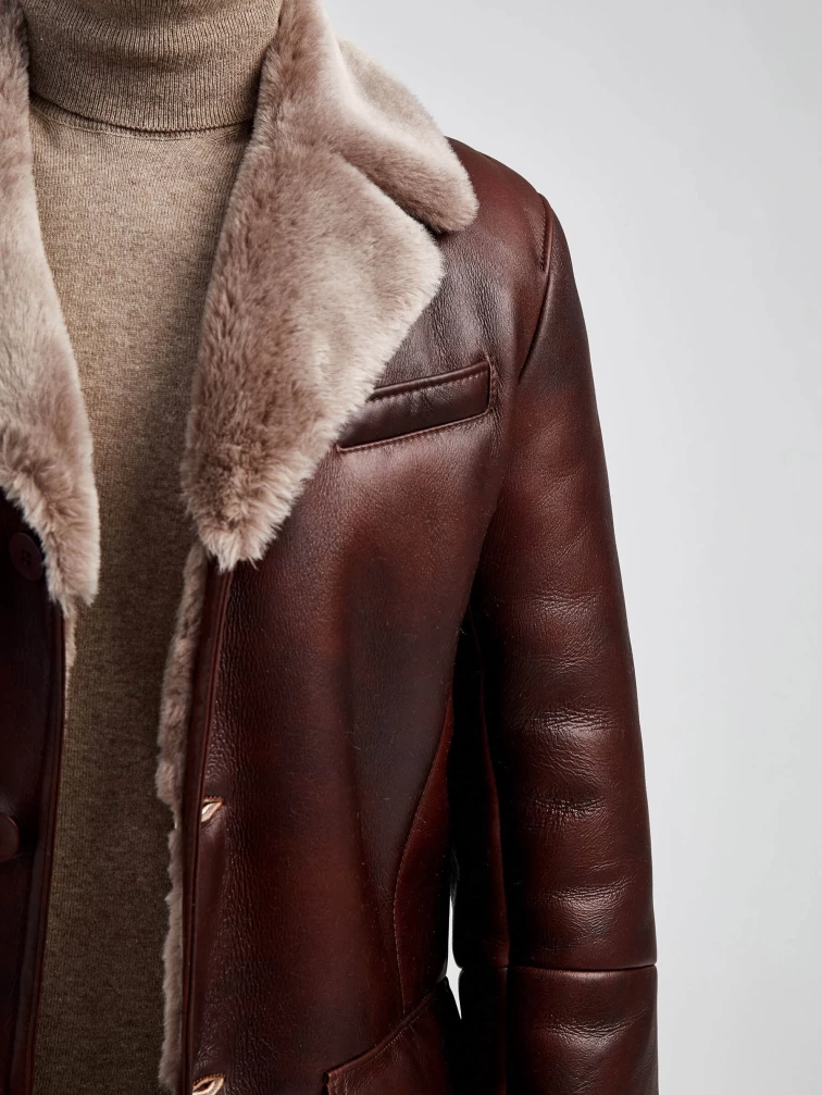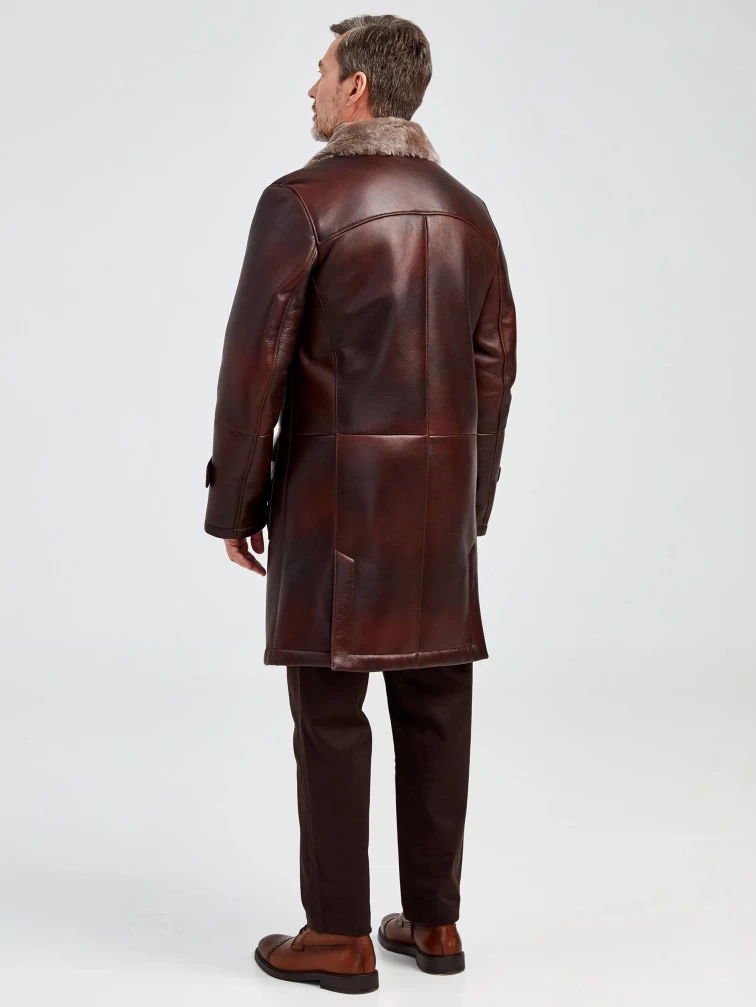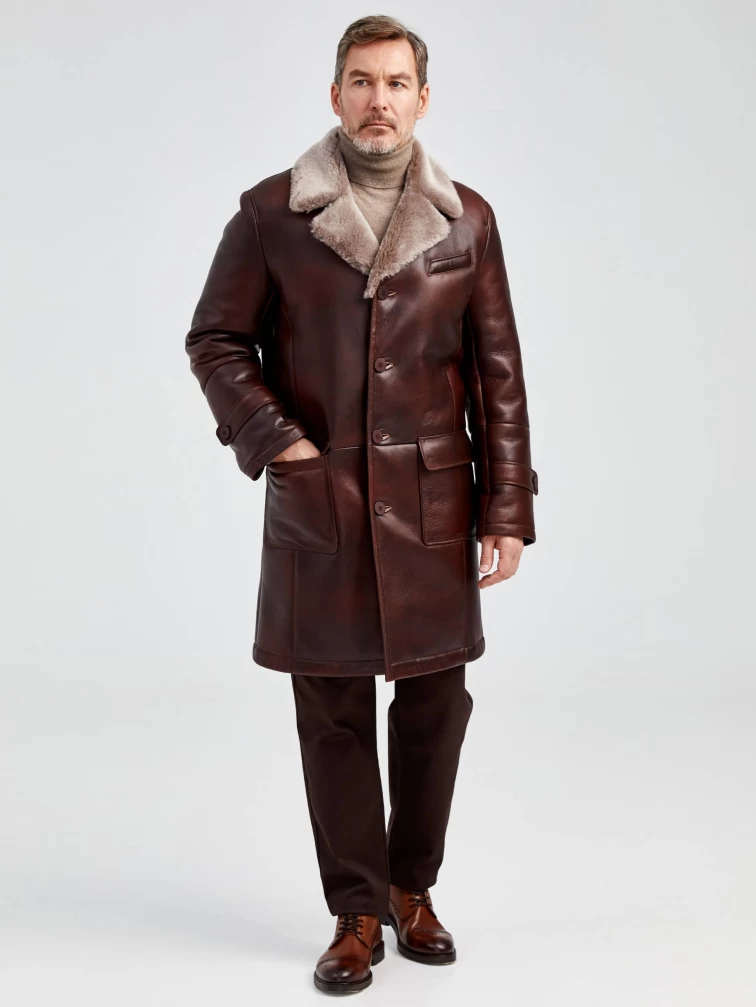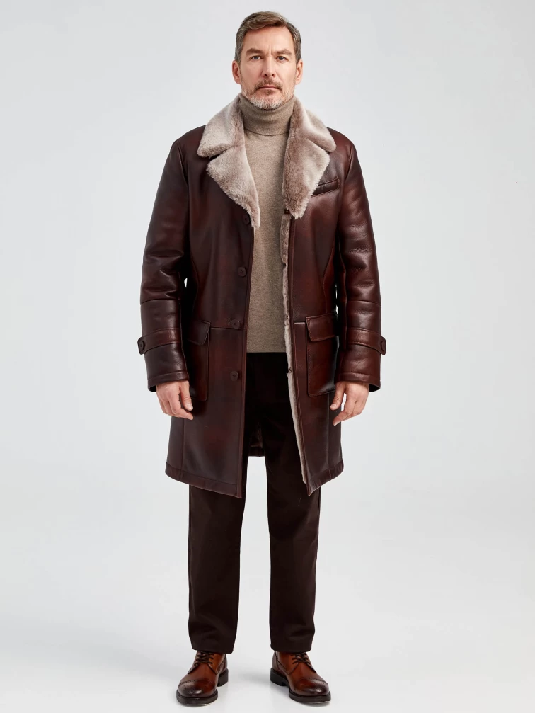Мужское меховое пальто. Новейшее защитное покрытие. Особо прочные нитки. Приятный на ощупь, густой, красивый мех мериносной породы овец. Идеальные швы, продуманные и удобные элементы. Аккуратность во всей работе. Чёткая и очень удобная посадка по фигуре. Великолепная свобода движений. Абсолютный комфорт.