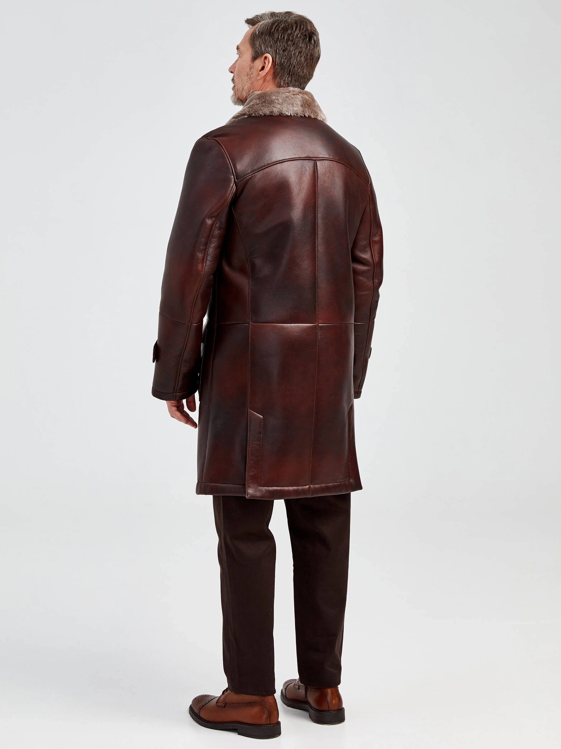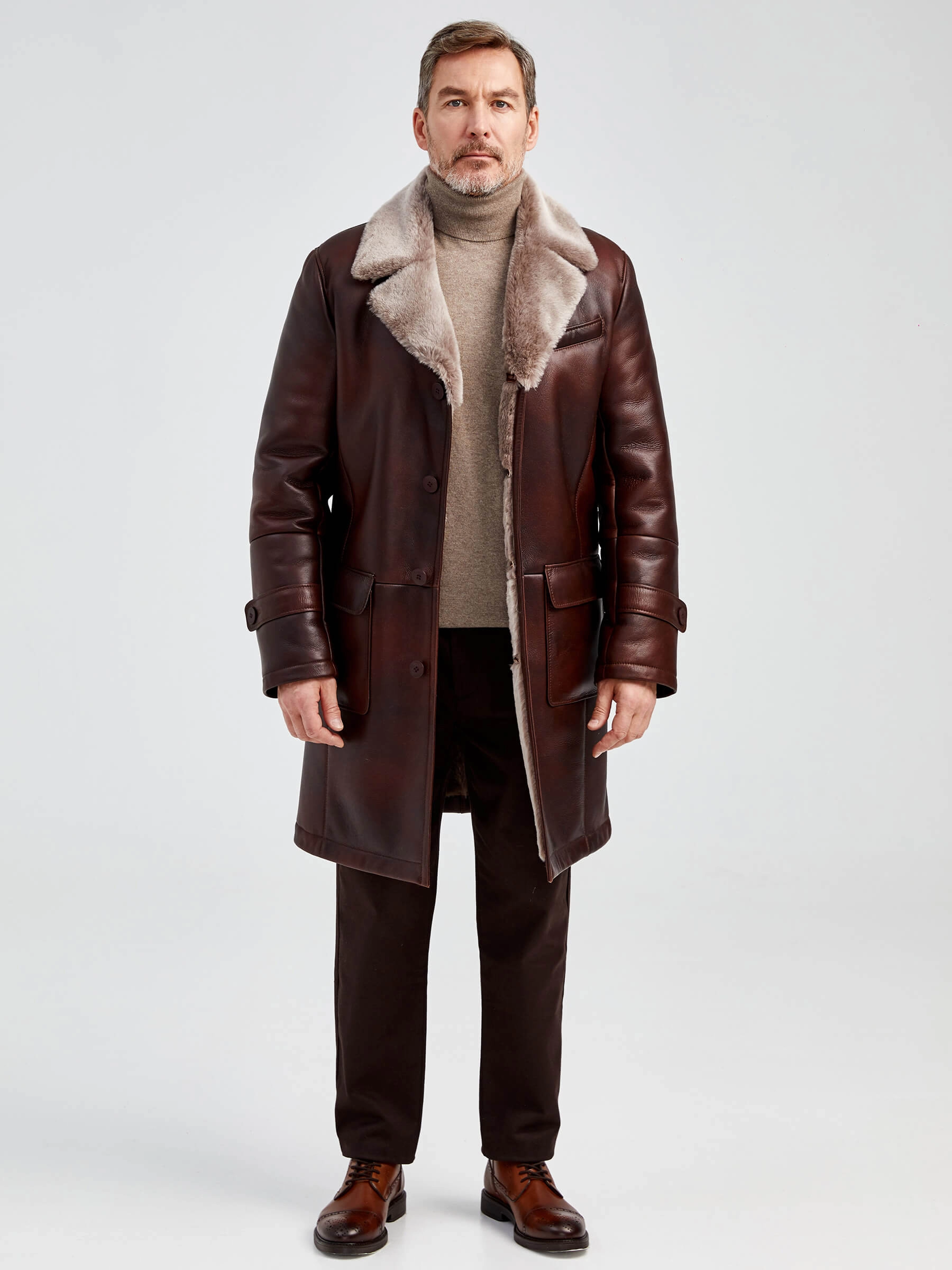 Длинная классическая мужская дубленка 419, виски, размер 62, артикул 70851