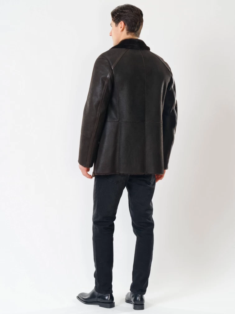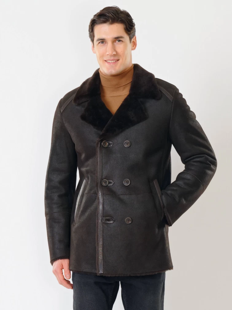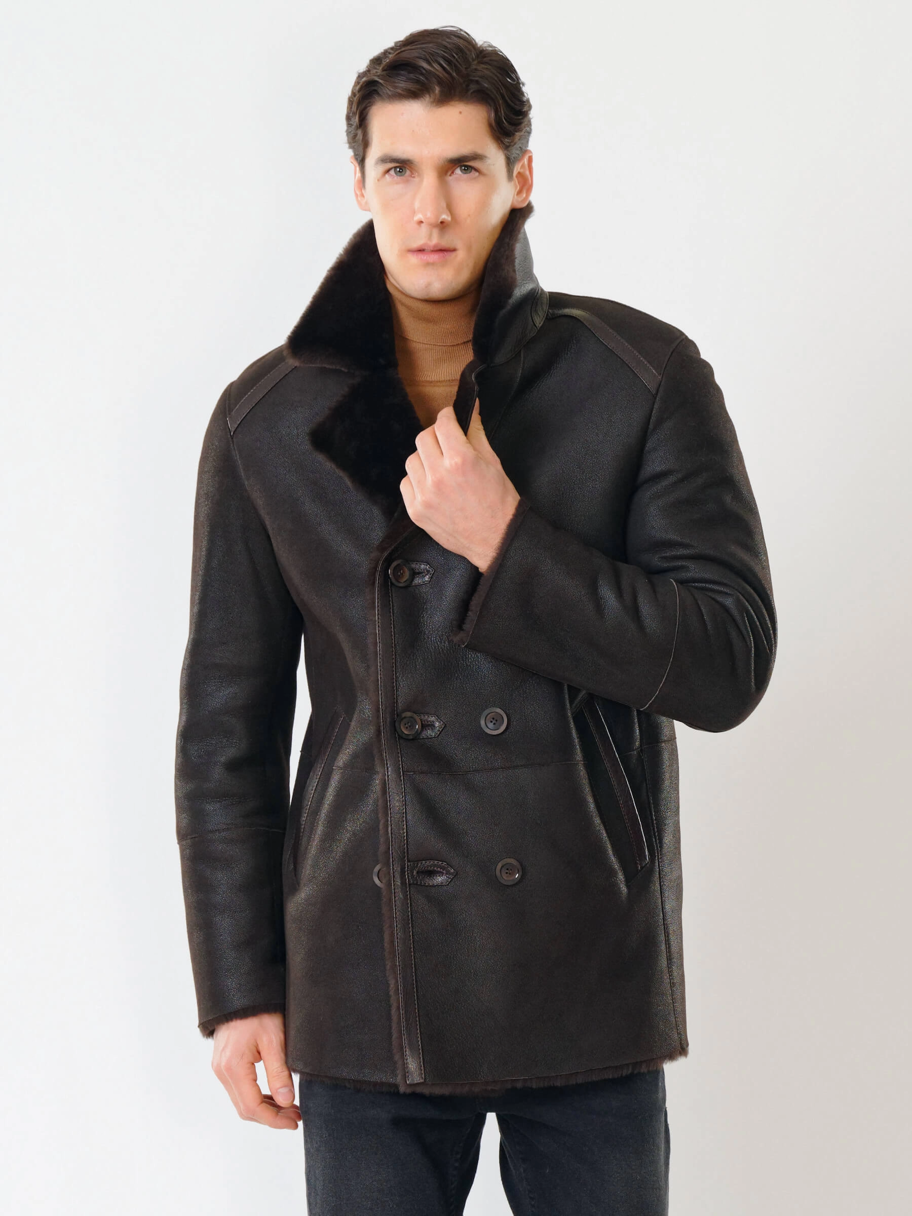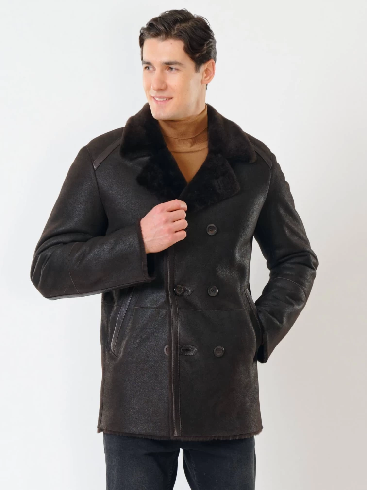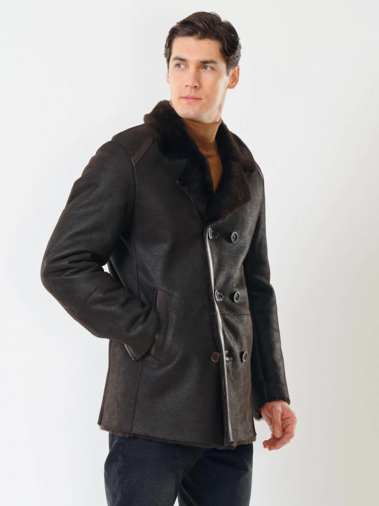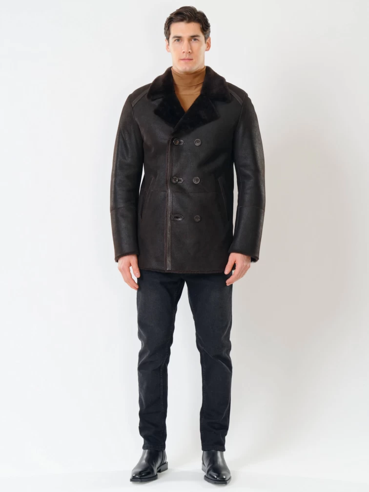 Дубленка двубортная классическая мужская 422, коричневая, размер 58, артикул 70501
