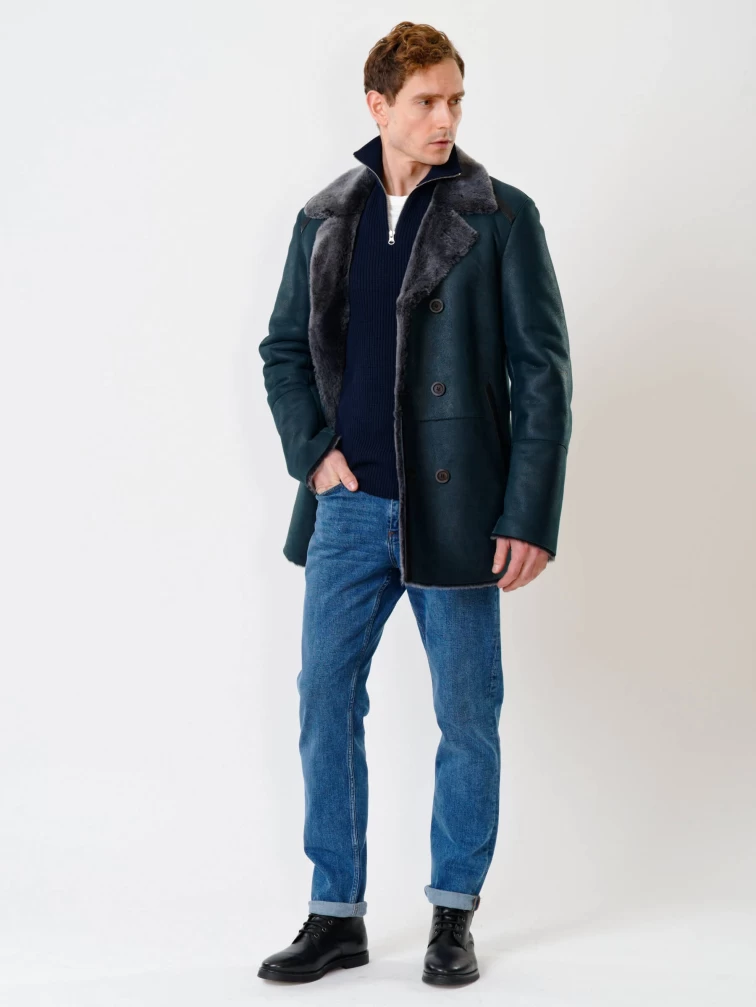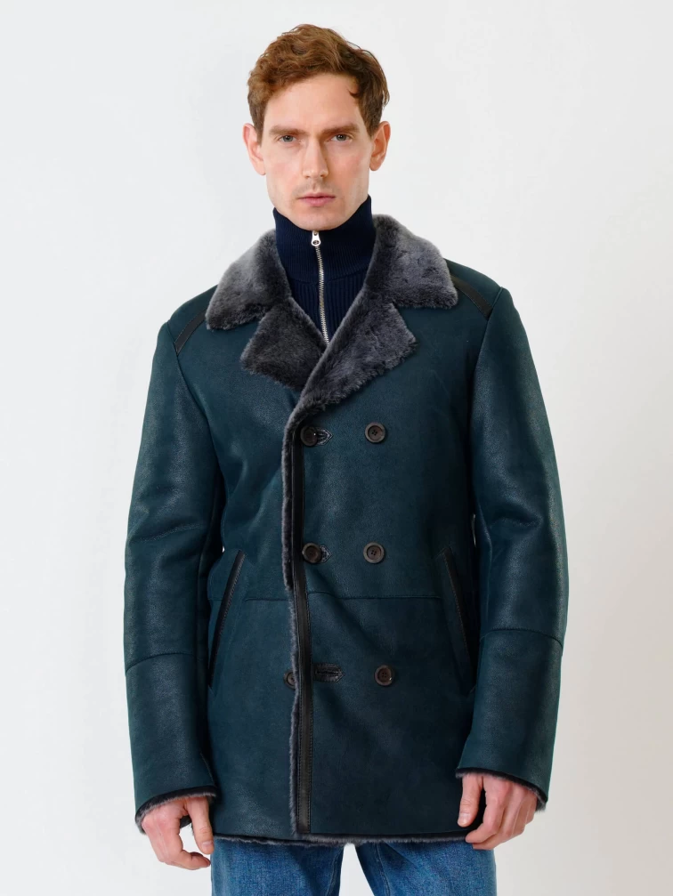 Дубленка двубортная классическая мужская 422, синяя, размер 60, артикул 70301