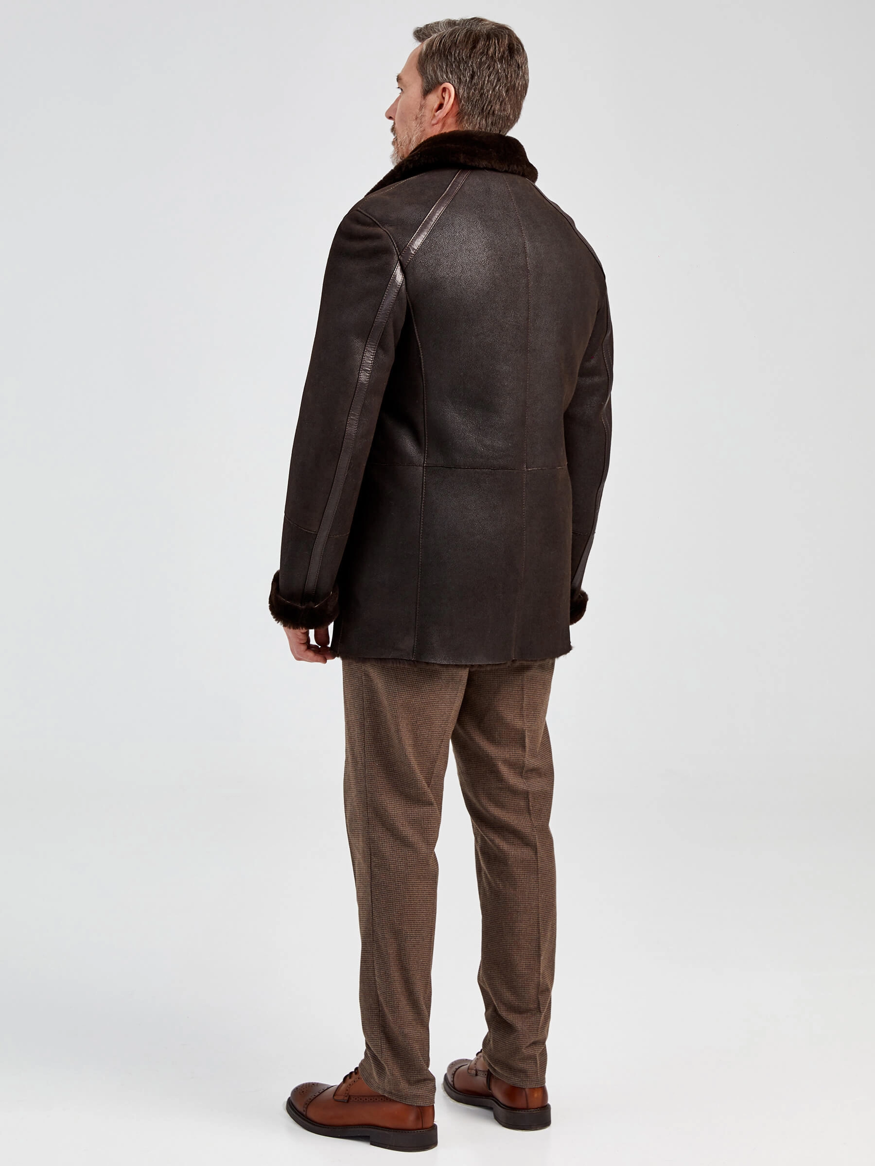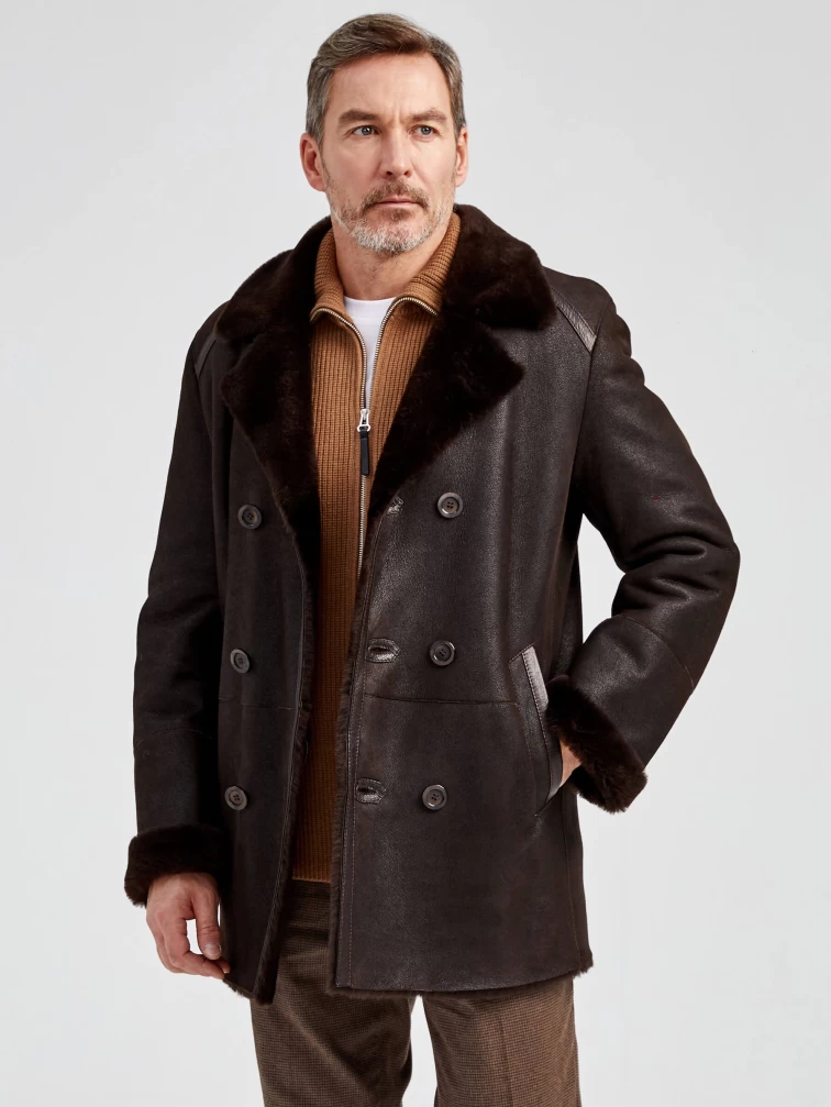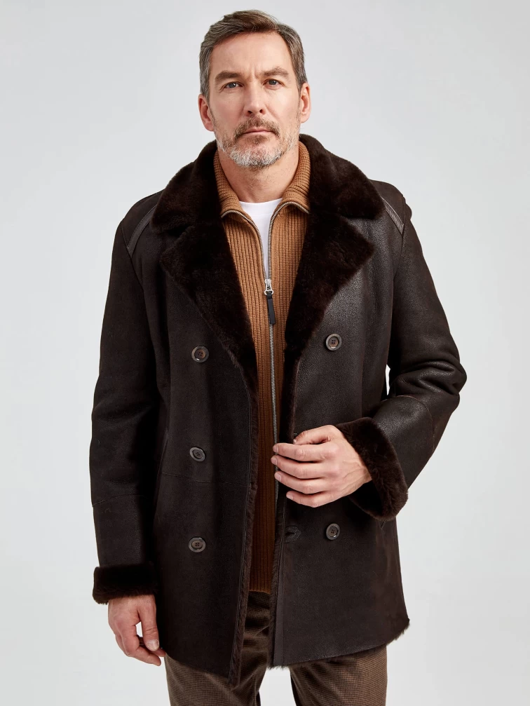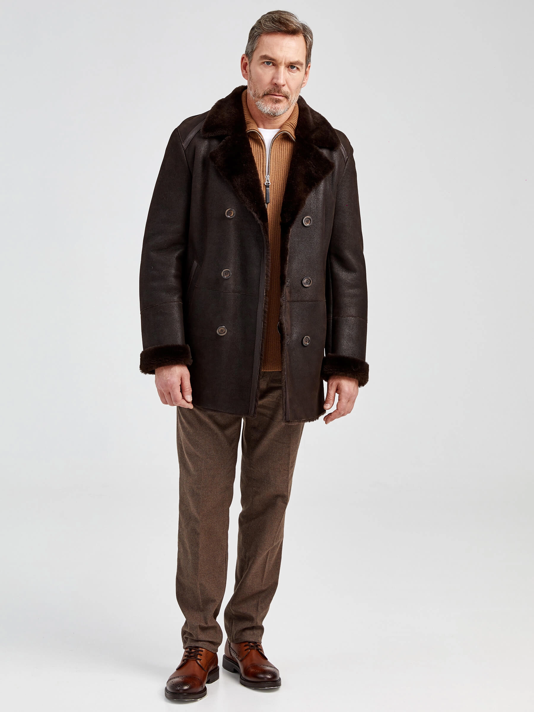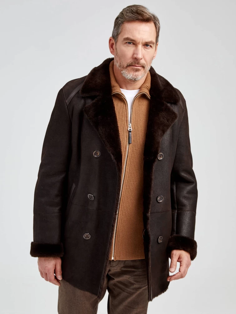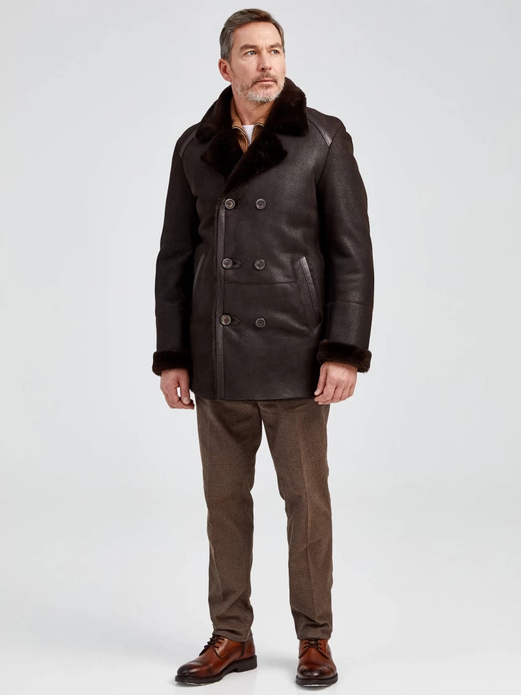 Дубленка двубортная классическая мужская 422, коричневая, размер 58, артикул 70872