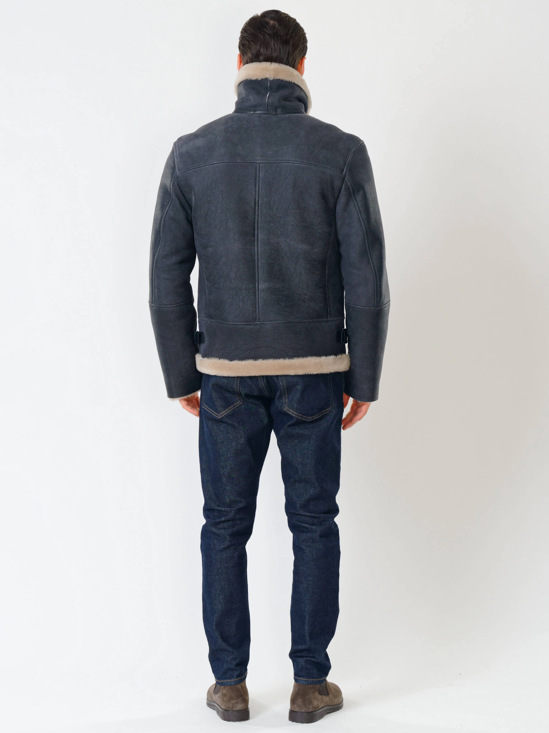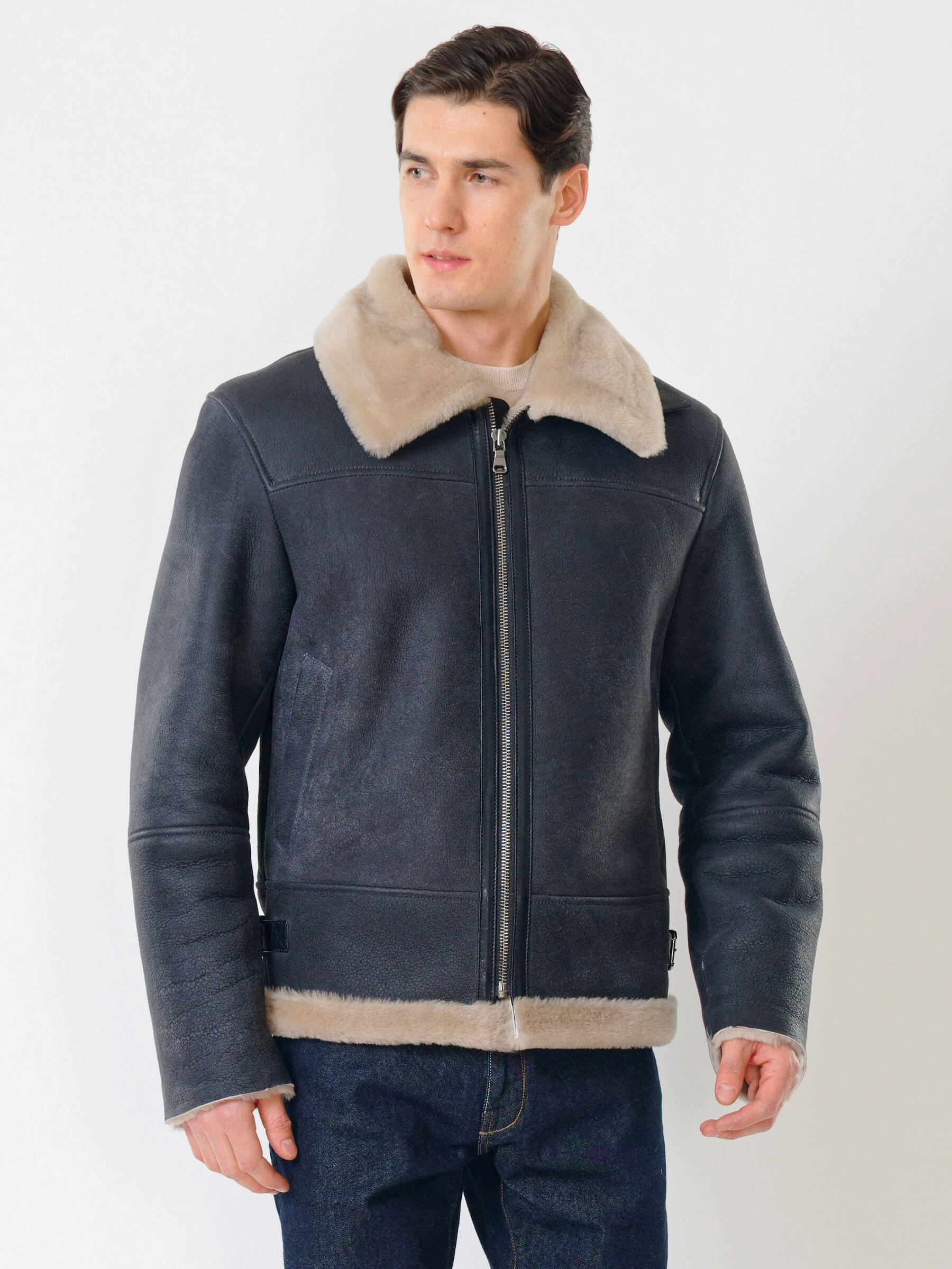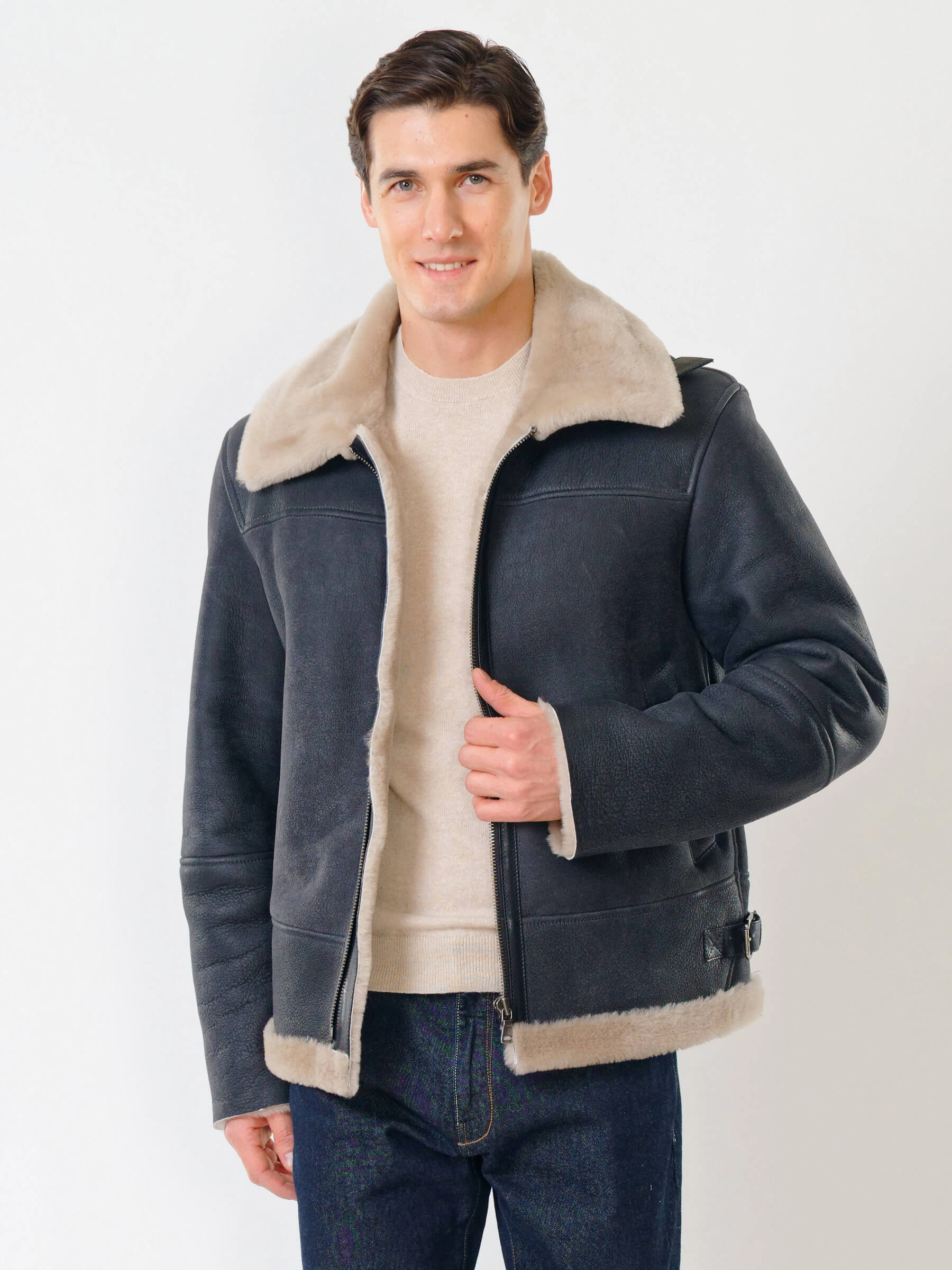 Короткая мужская дубленка пилот 427, синяя, размер 48, артикул 70531