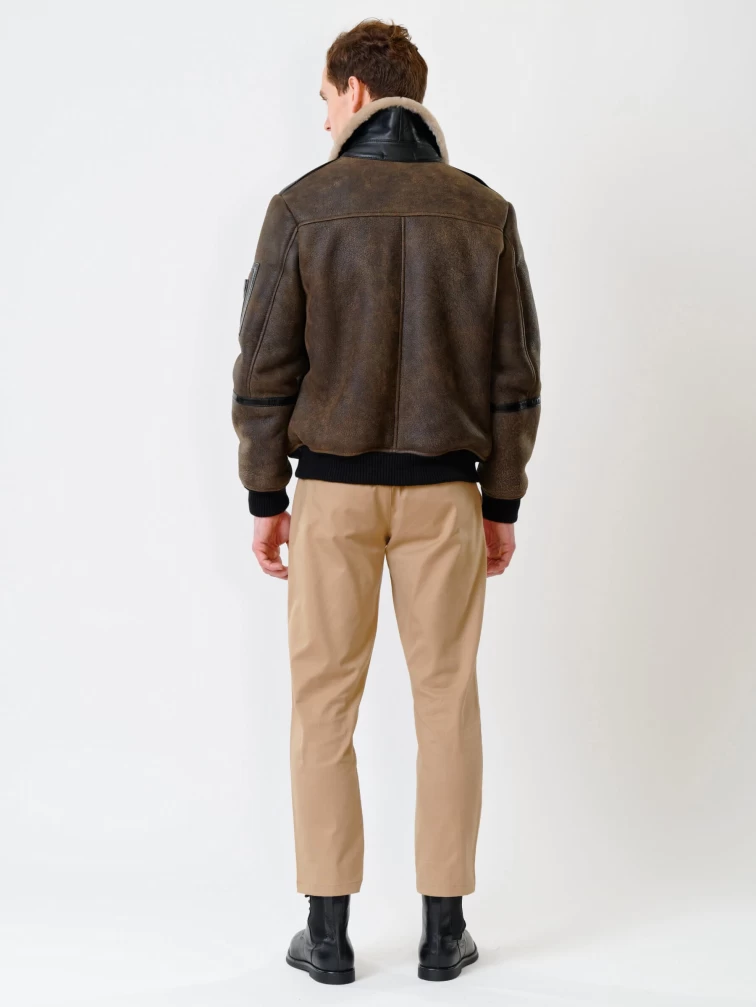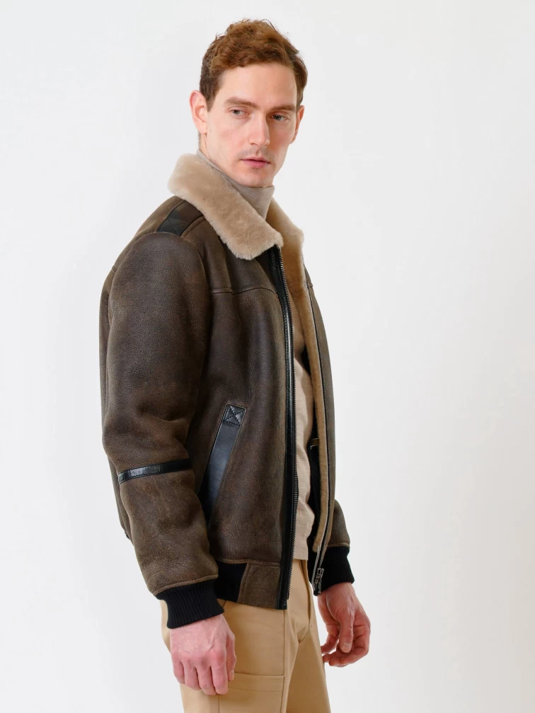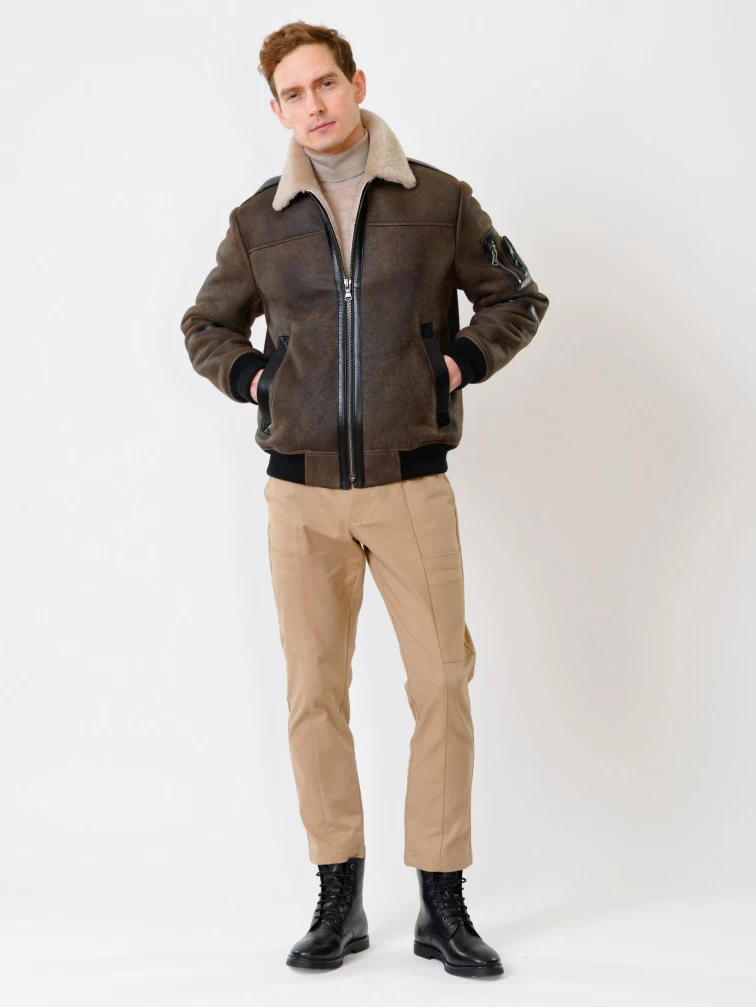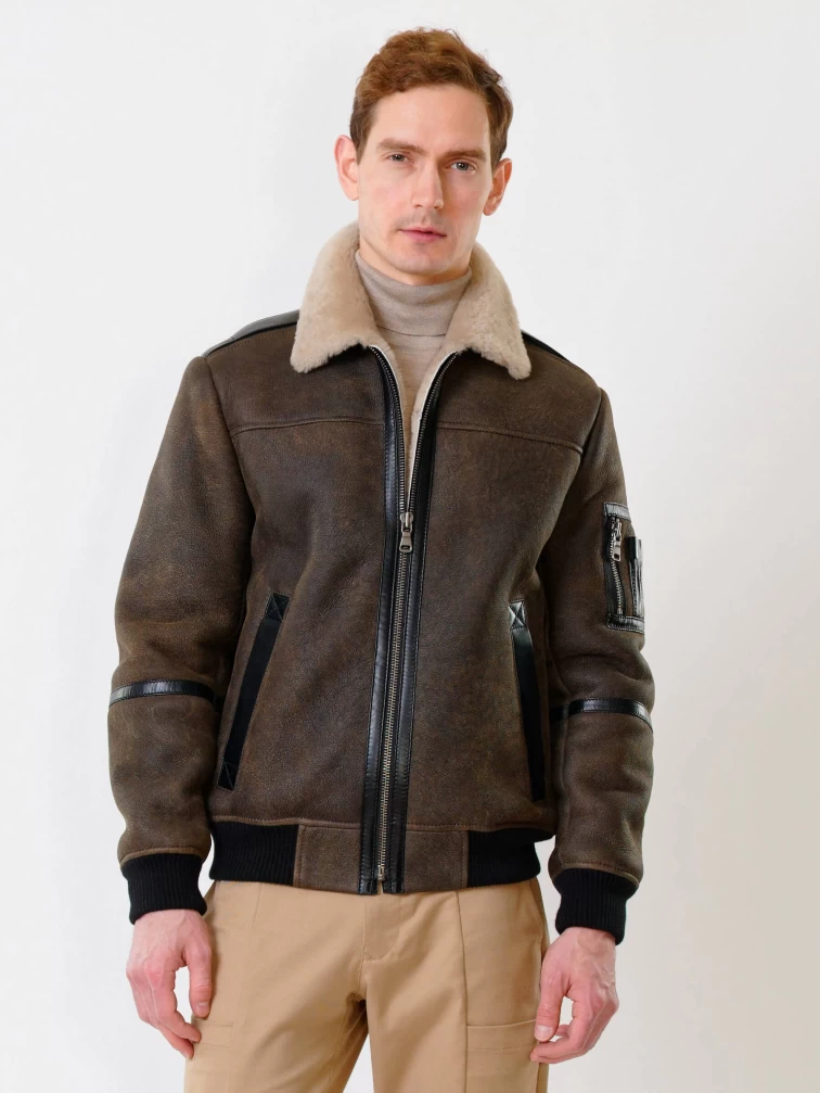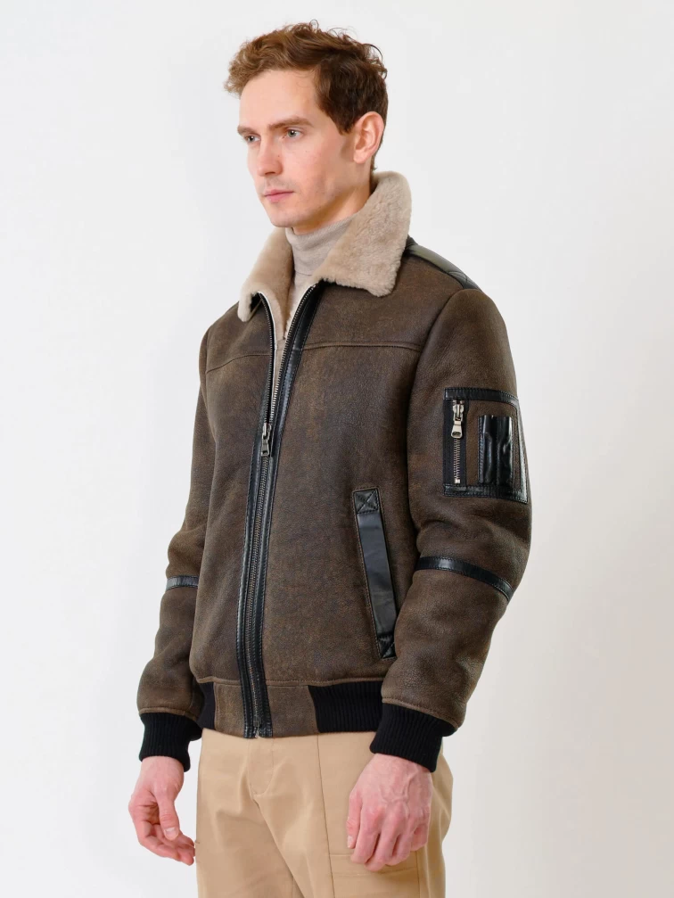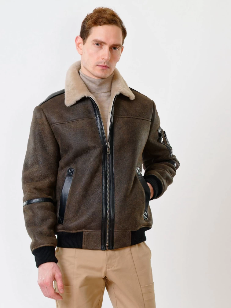 Короткая дубленка бомбер премиум класса для мужчин 428, коричневая, размер 50, артикул 70340