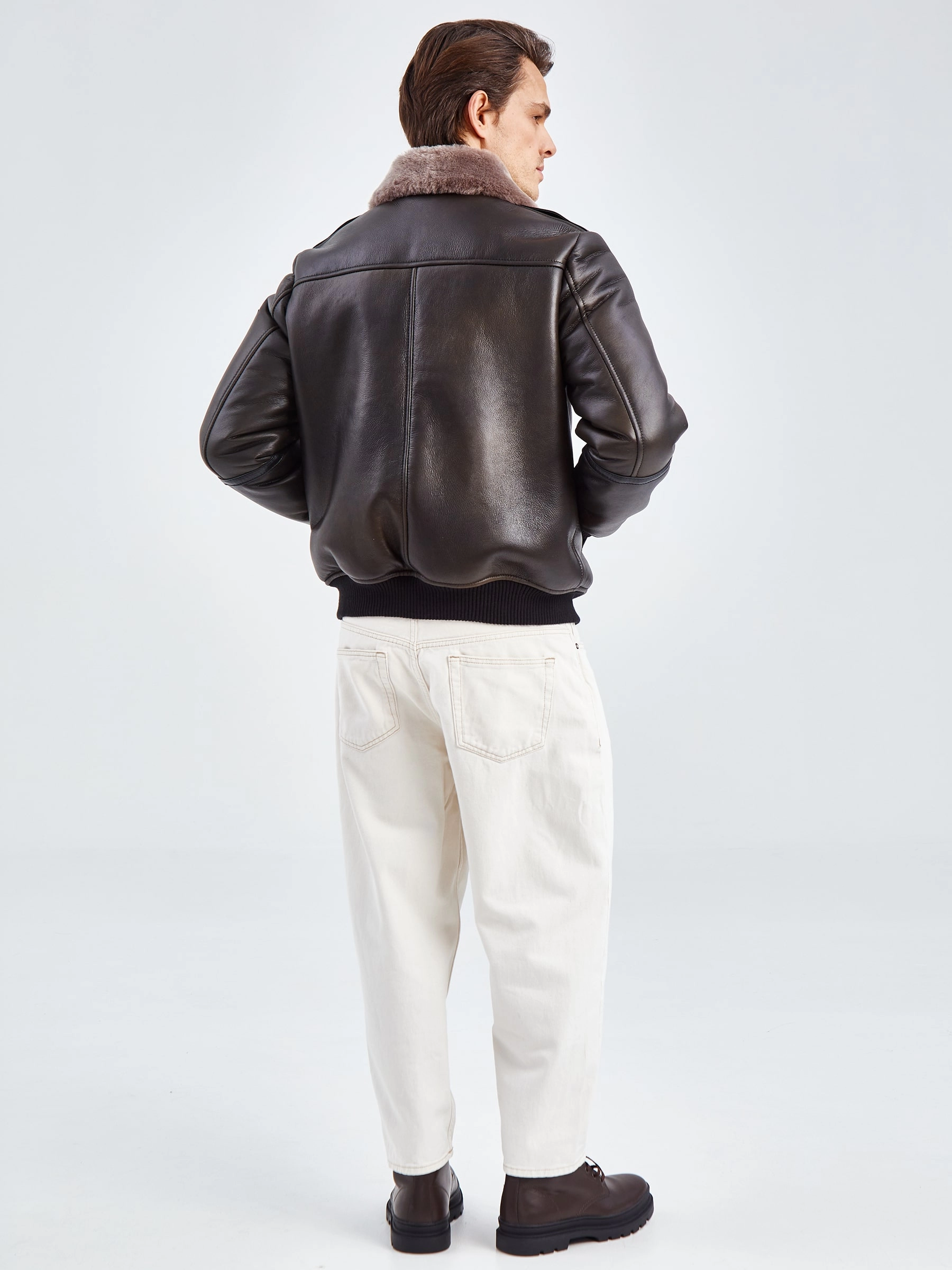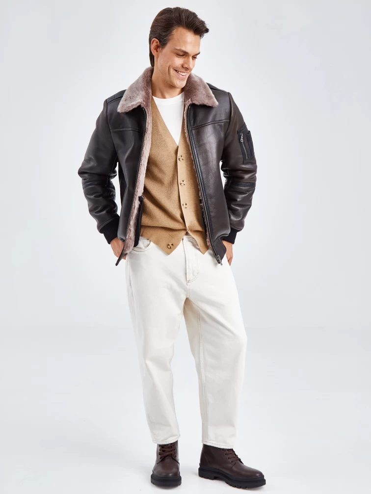 Дублёнка-авиатор. Специальная технология стирки овчины придает поверхности дублёнки повышенную износостойкость. Максимально густой мех. Минимальный вес. Предусмотрены внутренние карманы для документов. Безупречная работа наших портных. Комфортная посадка по фигуре. Великолепная свобода движений.