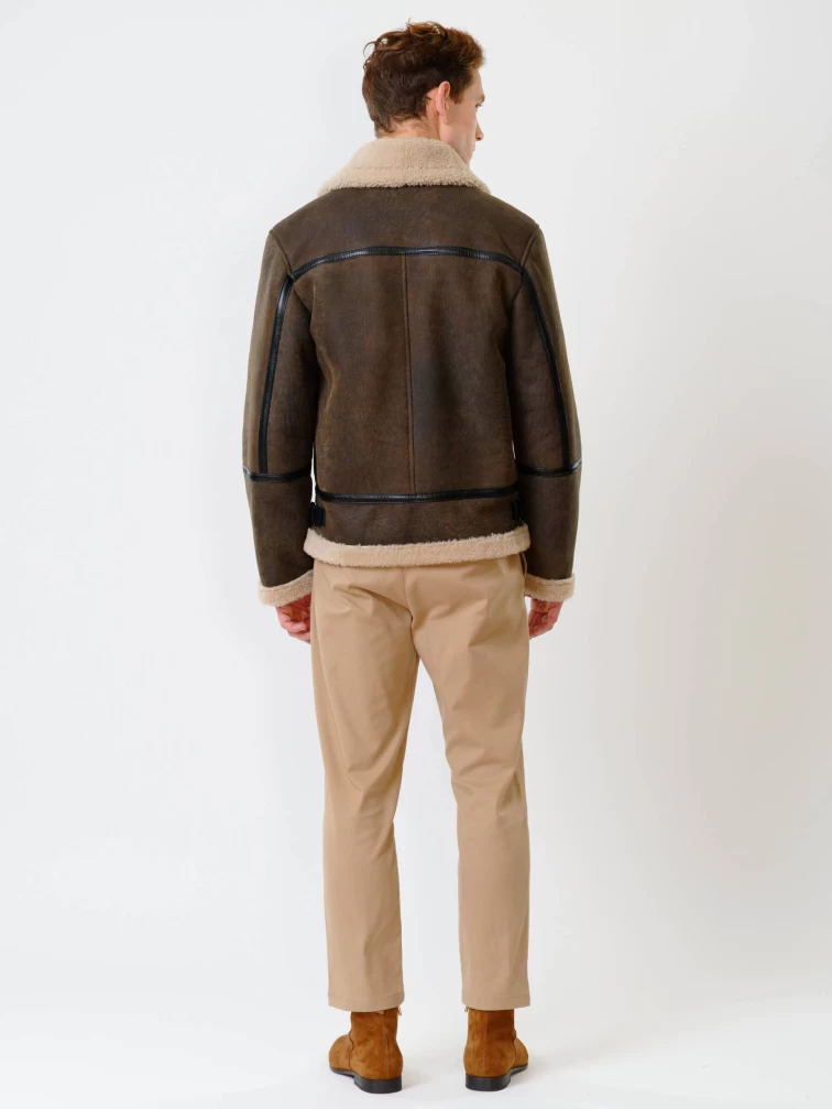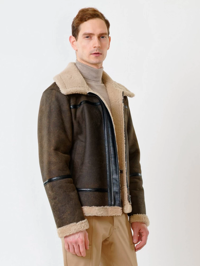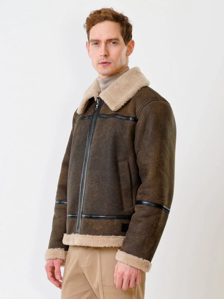 Короткая мужская дубленка пилот из овчины керли премиум класса 430, коричневая, размер 48, артикул 70350
