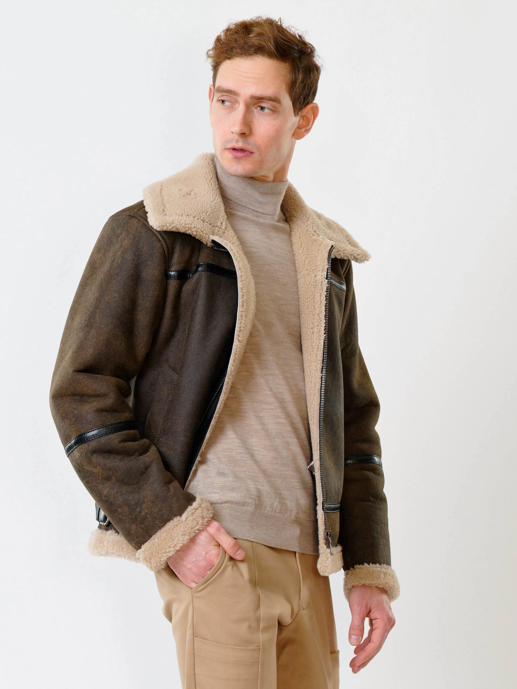 Дублёнка-авиатор. Специальная технология стирки овчины придает поверхности дублёнки повышенную износостойкость. Максимально густой мех. Минимальный вес. Предусмотрены внутренние карманы для документов. Безупречная работа наших портных. Комфортная посадка по фигуре. Великолепная свобода движений.