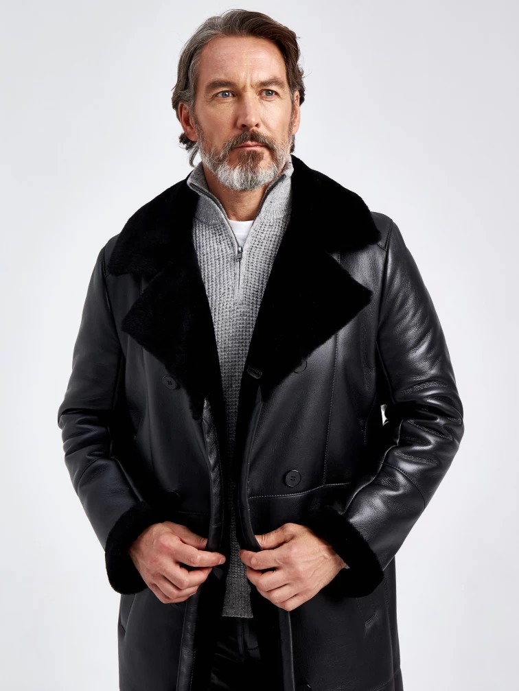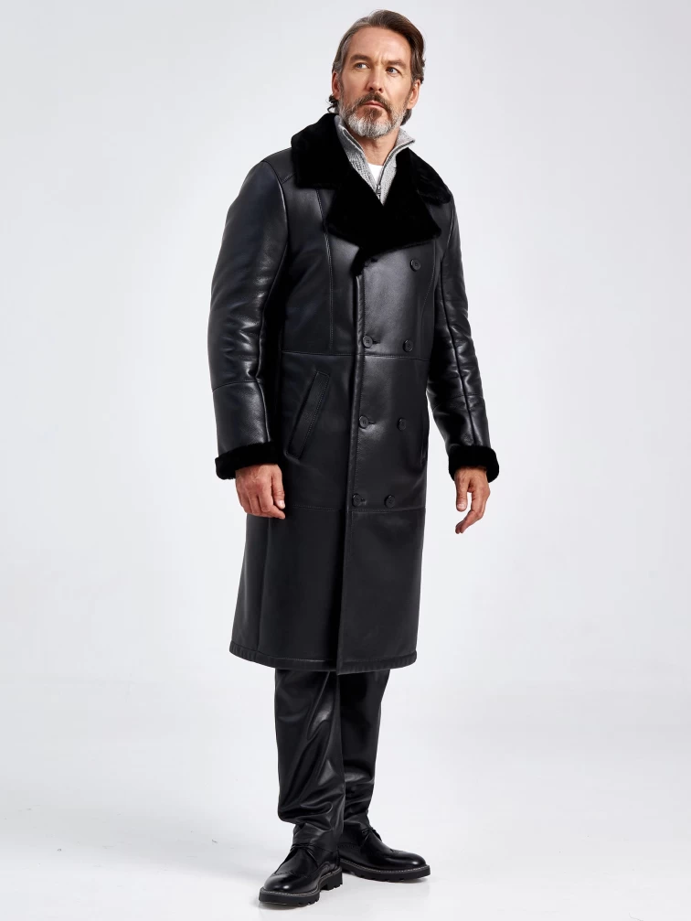 Премиальное качество двубортной мужской дубленки. Идеальное сочетание как с классическим деловым костюмом, кожаными джинсами, так и с повседневными брюками. Изделие сшито из овчины мериносной породы с максимально густым шелковистым волосом. Верхняя застёжка закрывает горловину. Рельефы полочек создают эффект приталенности. Предусмотрен внутренний карман для документов. Сзади выполнена шлица. Идеальные швы, продуманные и удобные элементы. Удобная посадка по фигуре. Абсолютный комфорт.