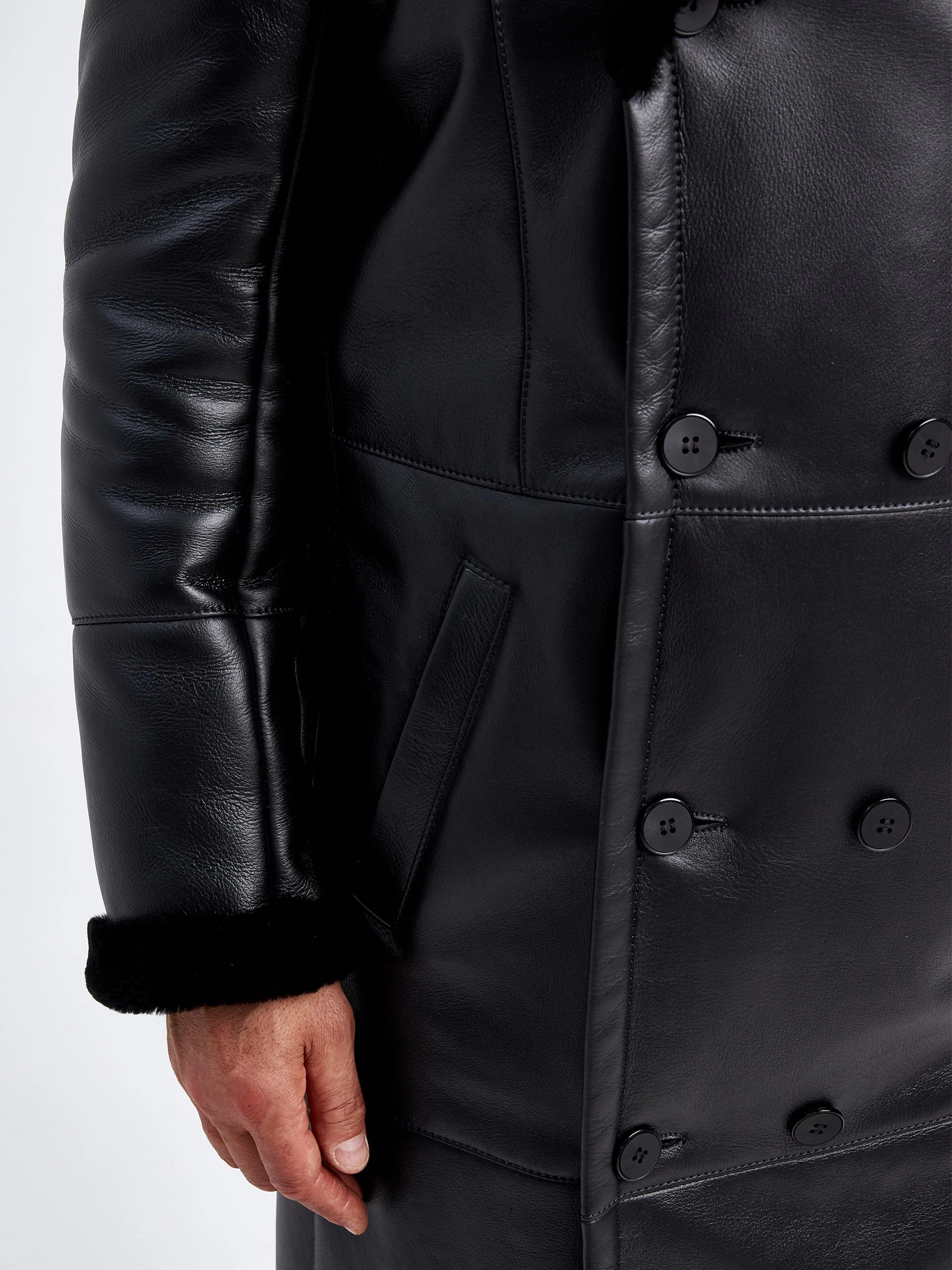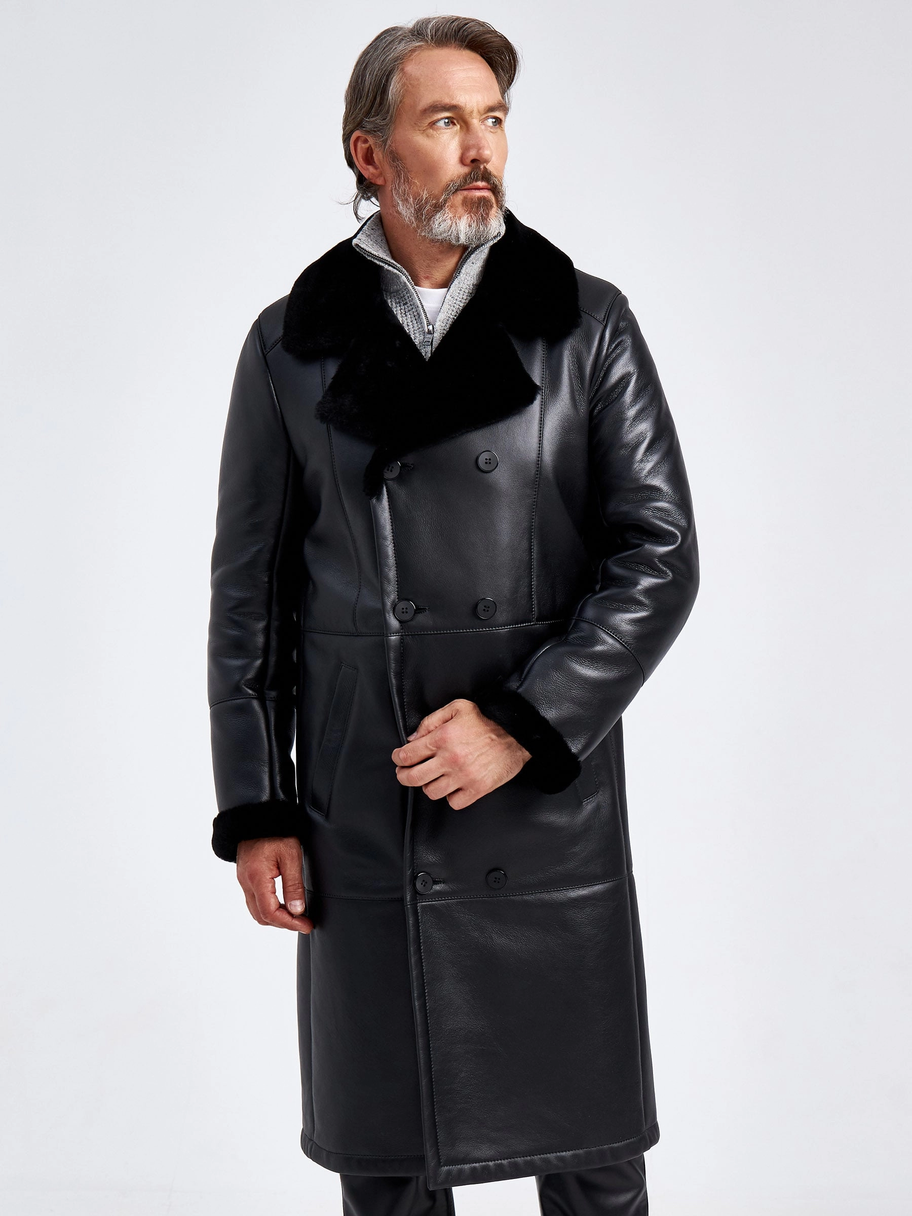 Длинная двубортная мужская дубленка премиум класса 432, черная, размер 50, артикул 70630