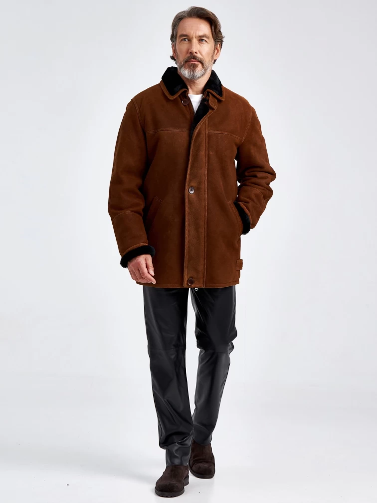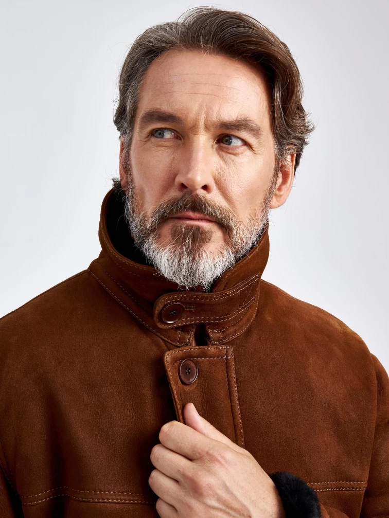 Дубленка замшевая мужская 86152, коричневая, размер 46, артикул 70780