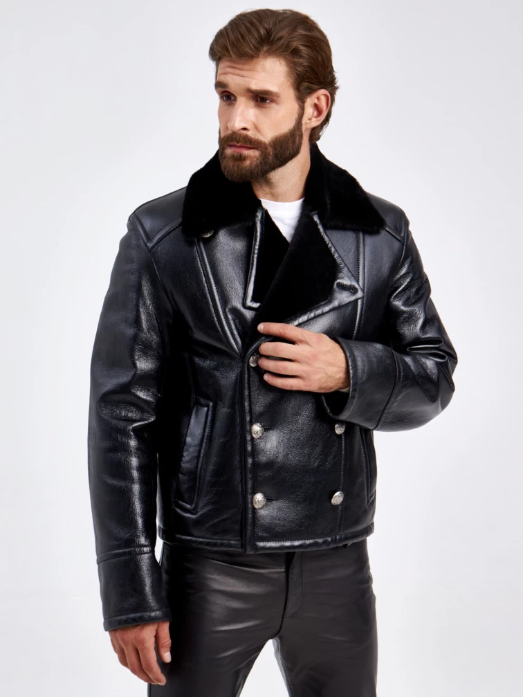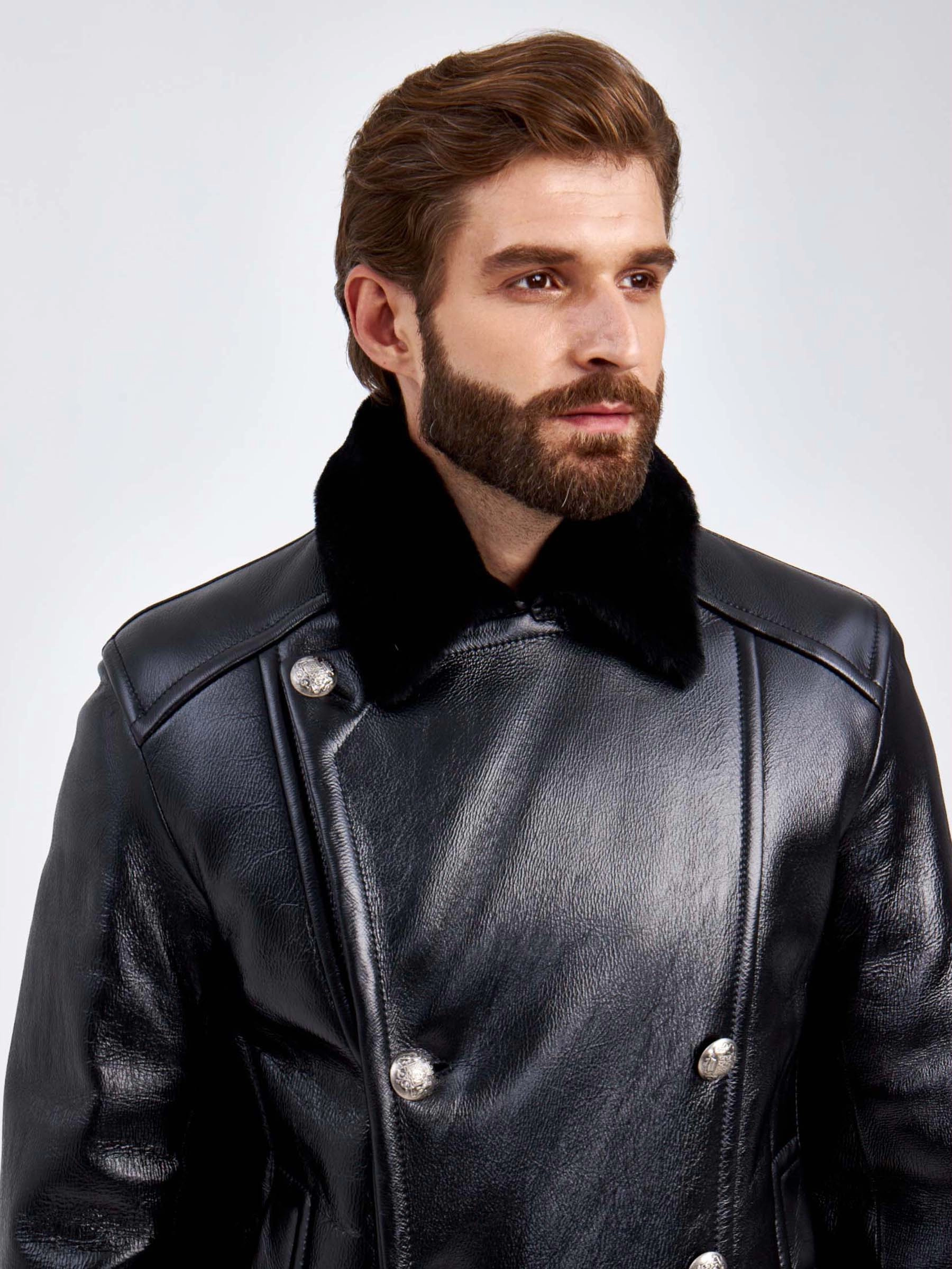 Двубортная мужская дубленка Габер, черная, размер 50, артикул 70850