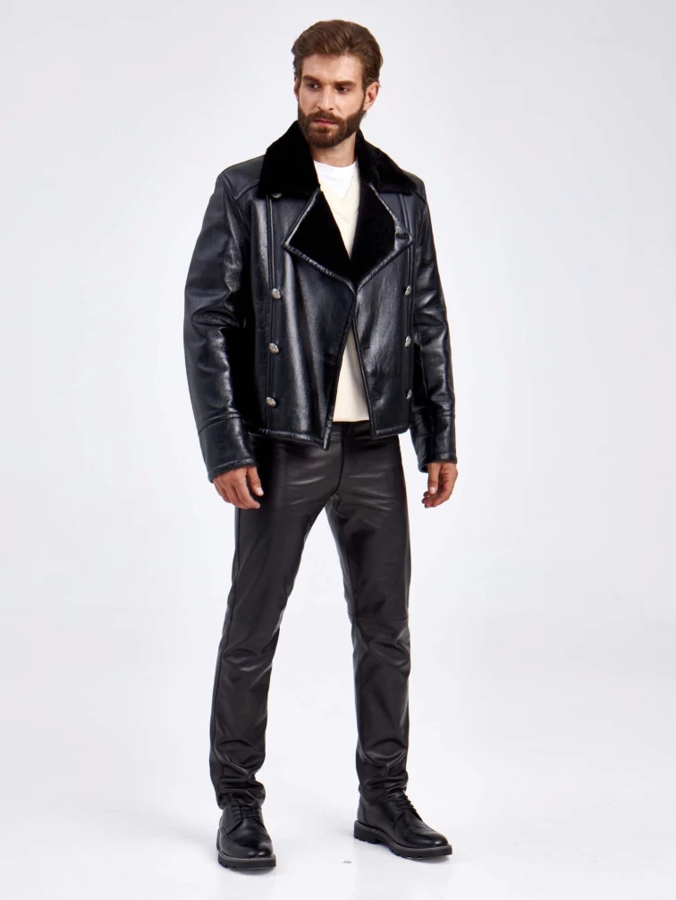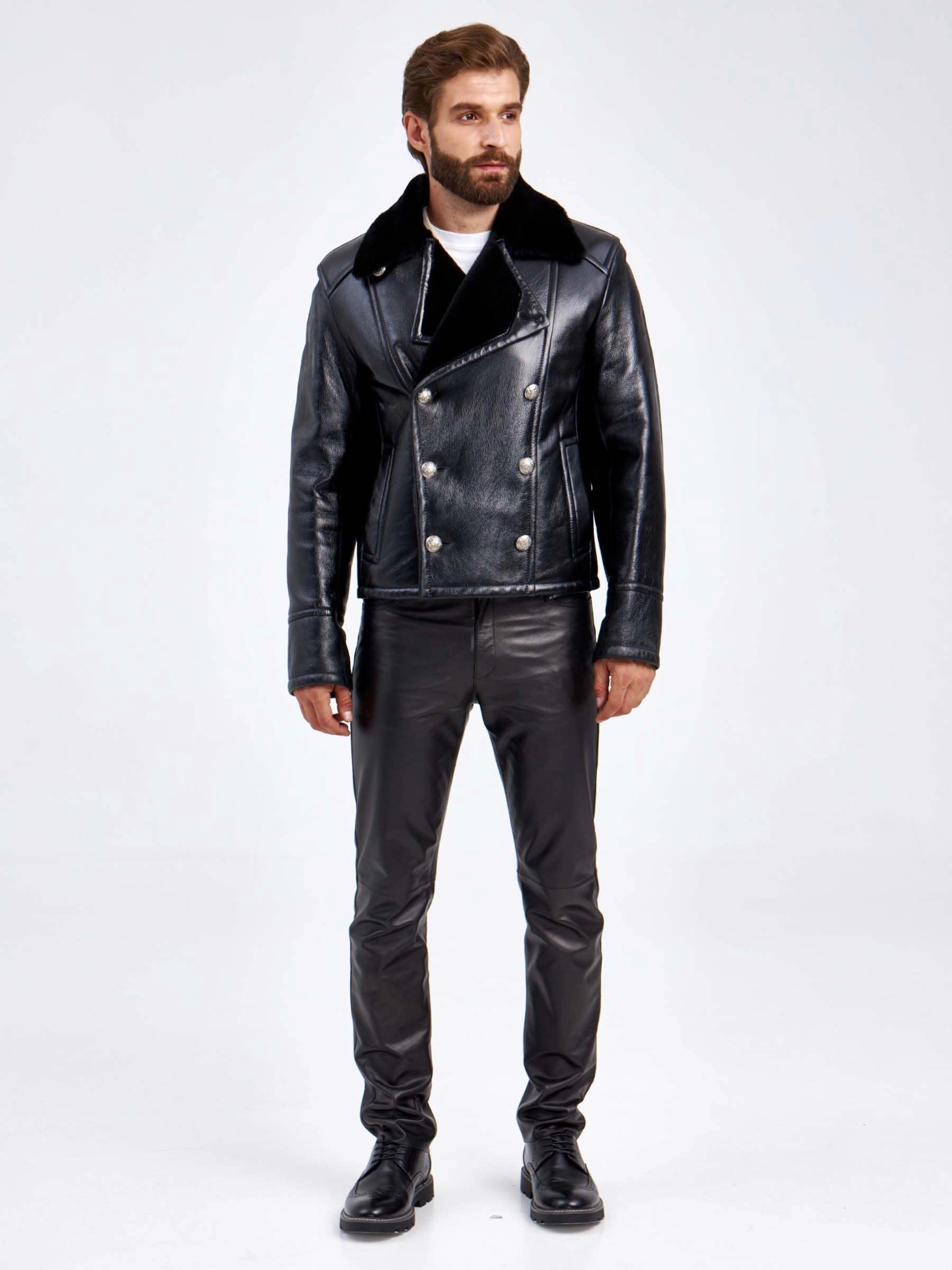 Товар двубортная мужская дубленка габер, черная, размер 50, артикул 70850 выполнен из овчина "мерино" с застежкой пуговицы. Рассчитан на сезон: осень-зима. Длина изделия 51-74 см, силуэт полуприлегающий.