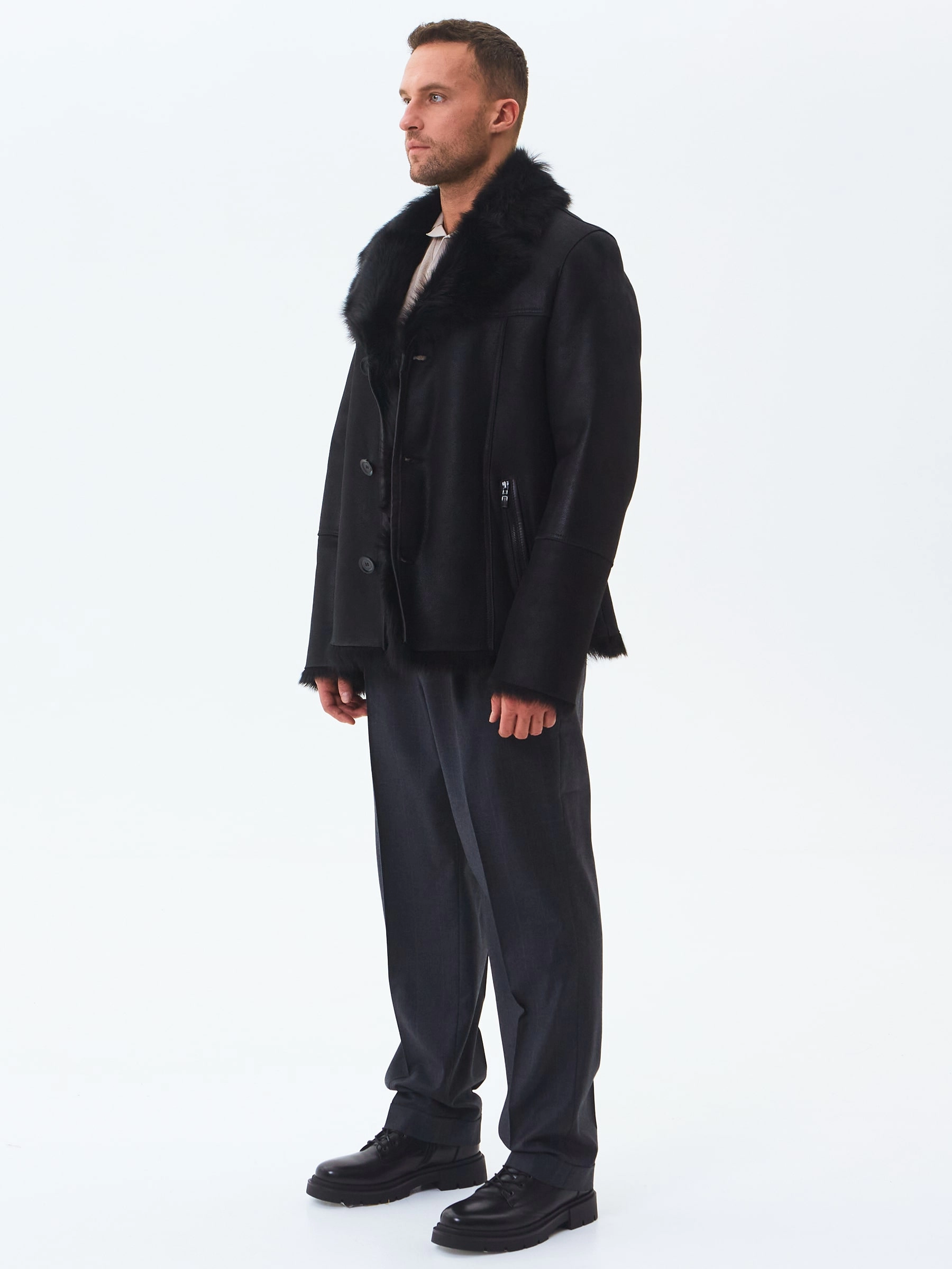 Короткая мужская дубленка из тосканы премиум класса Мишель, черная, размер 52, артикул 70370