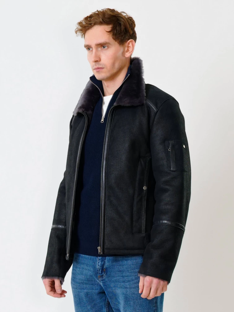Короткая мужская дубленка Мюнхен, черная, размер 44, артикул 70270