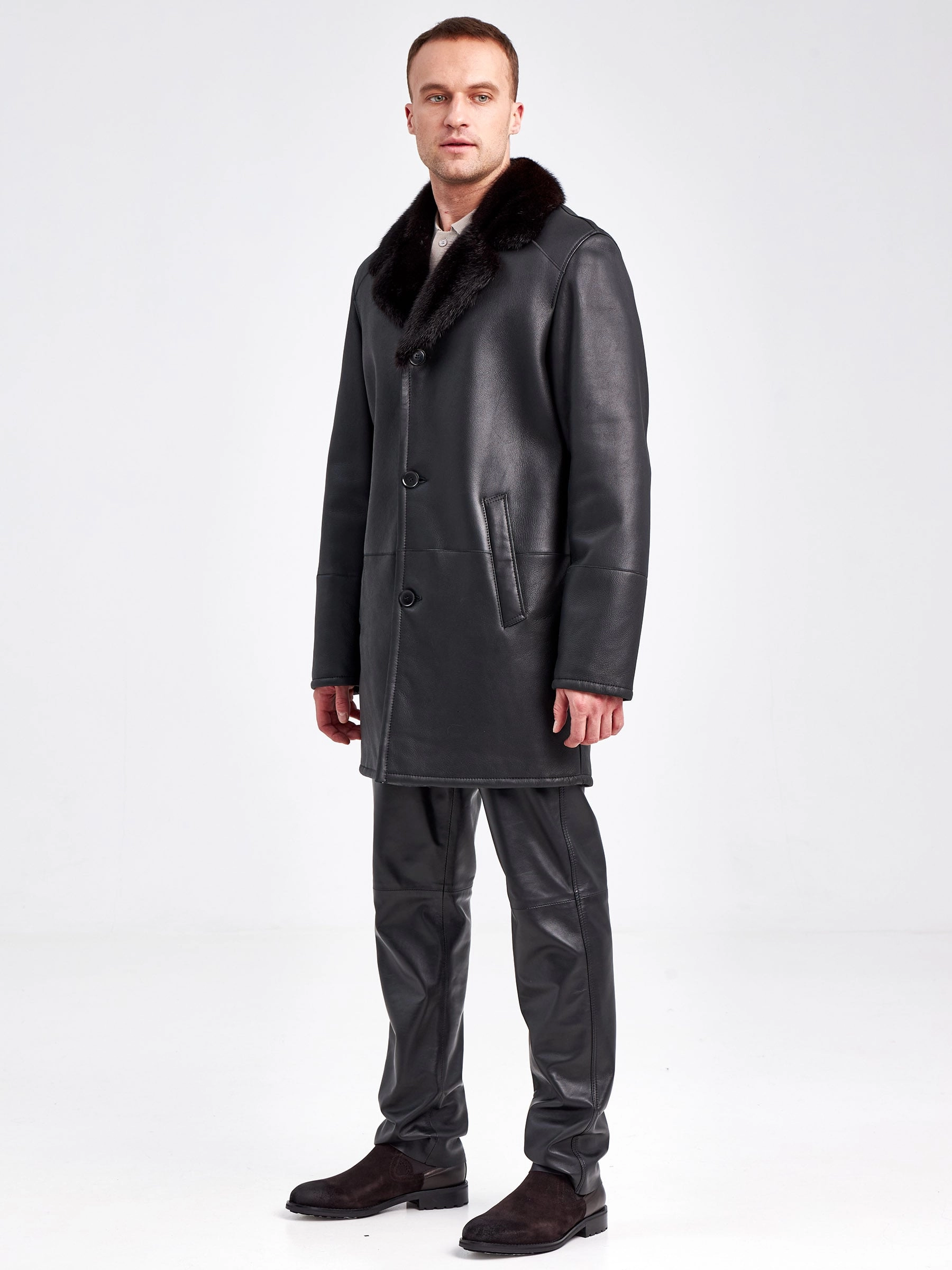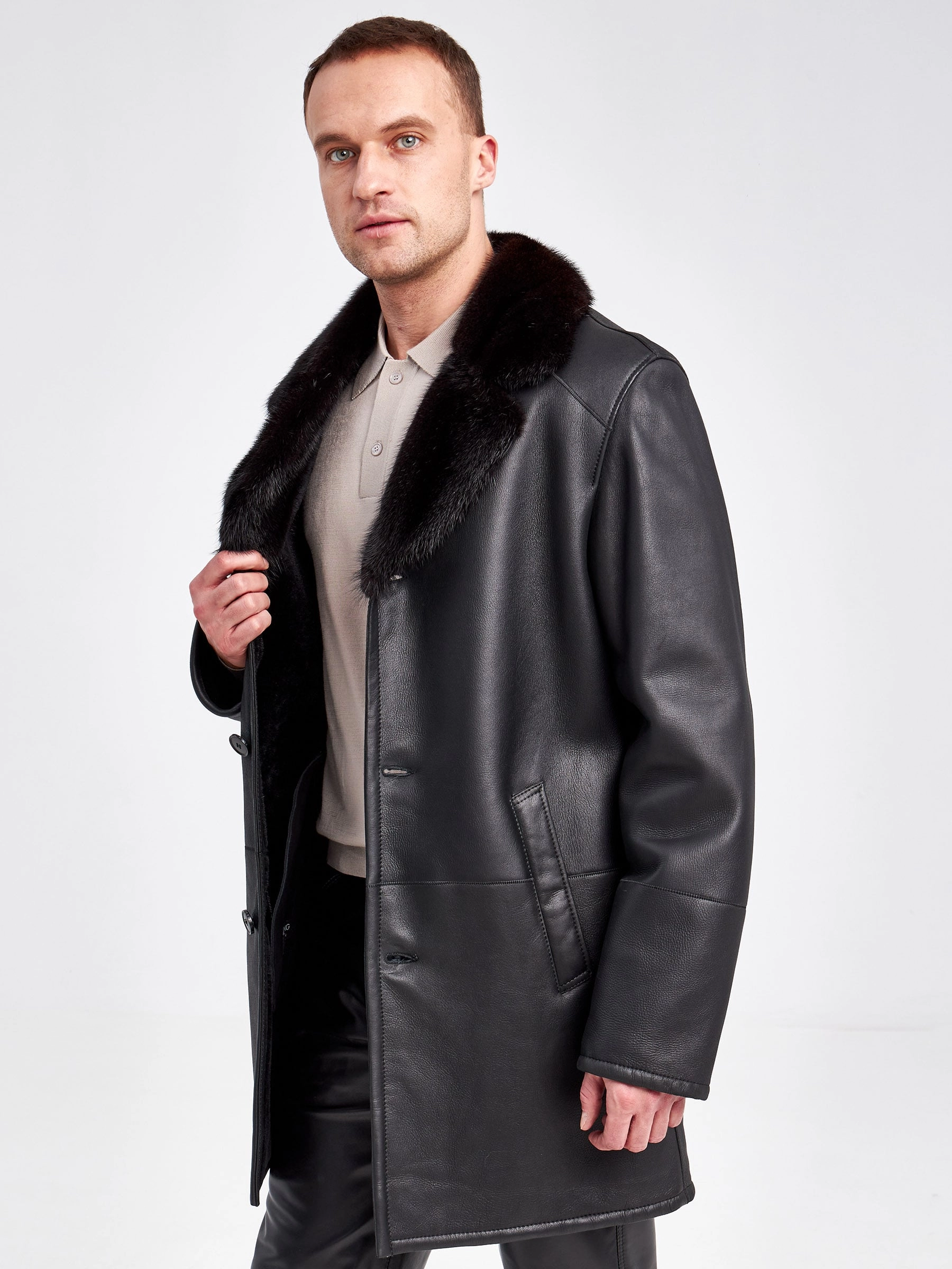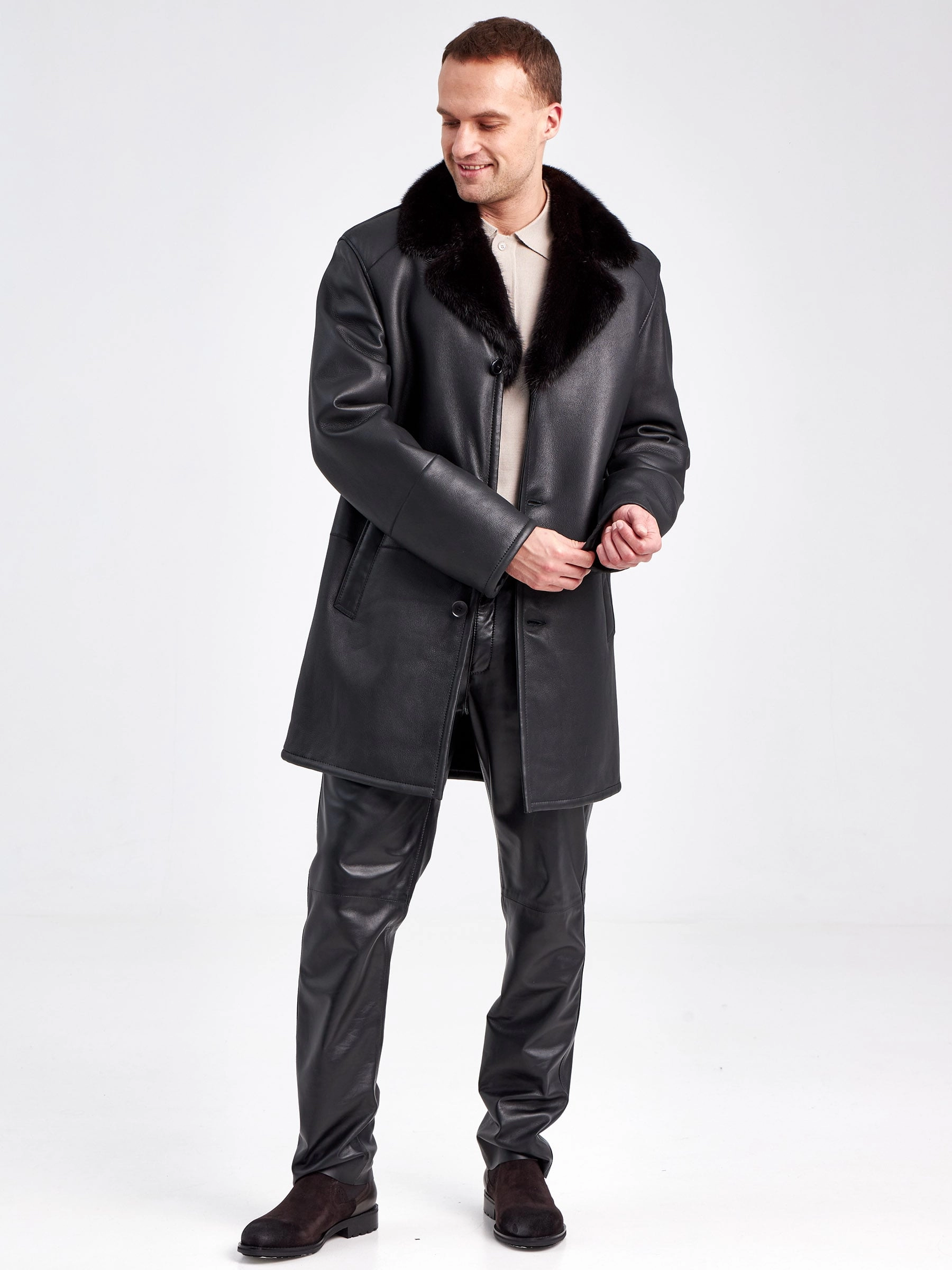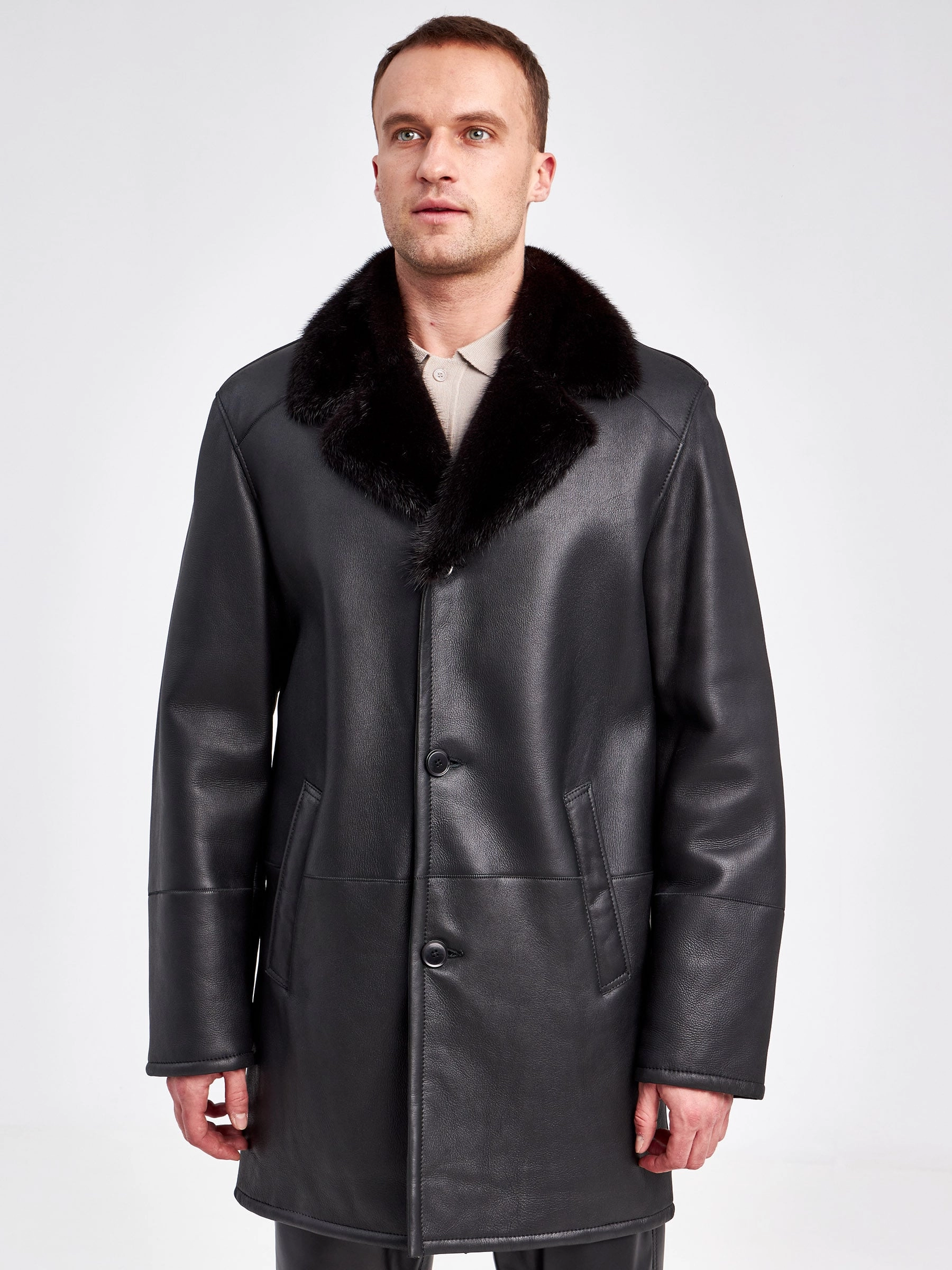 Товар длинная мужская дубленка с воротником меха норки премиум класса 2293(авн), черная, размер 46, артикул 71200 выполнен из овчина "мерино" с застежкой пуговицы. Рассчитан на сезон: зима. Длина изделия 98 см, силуэт прямой.