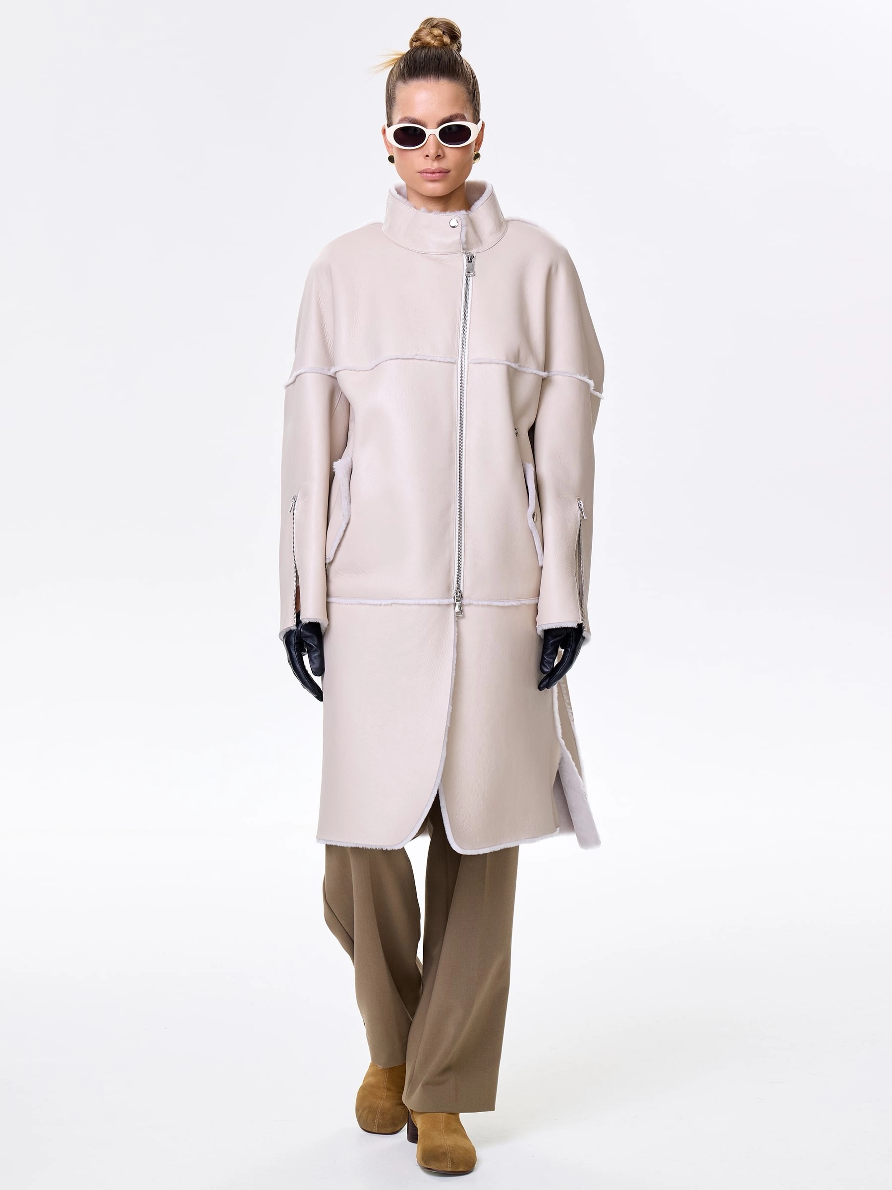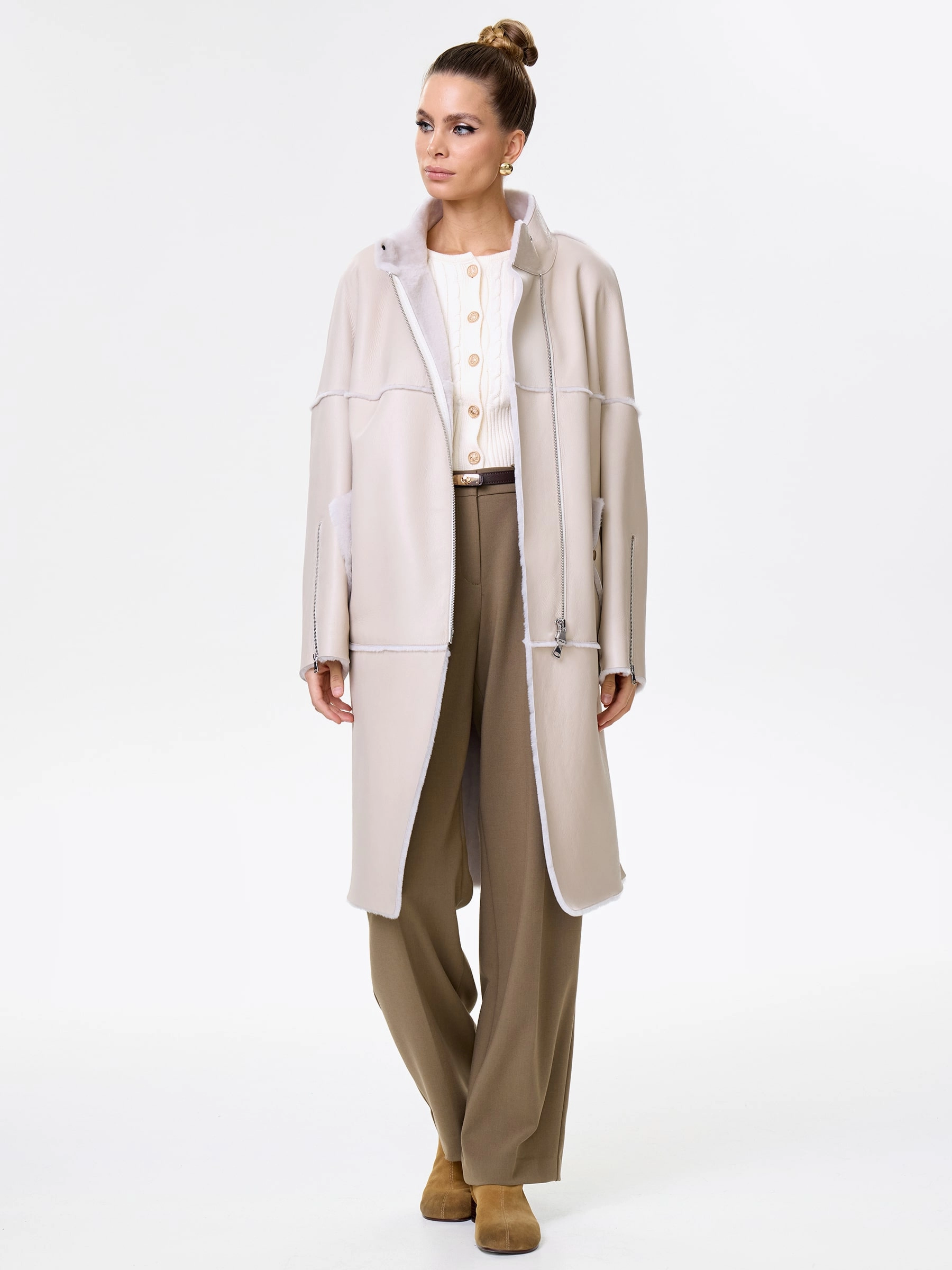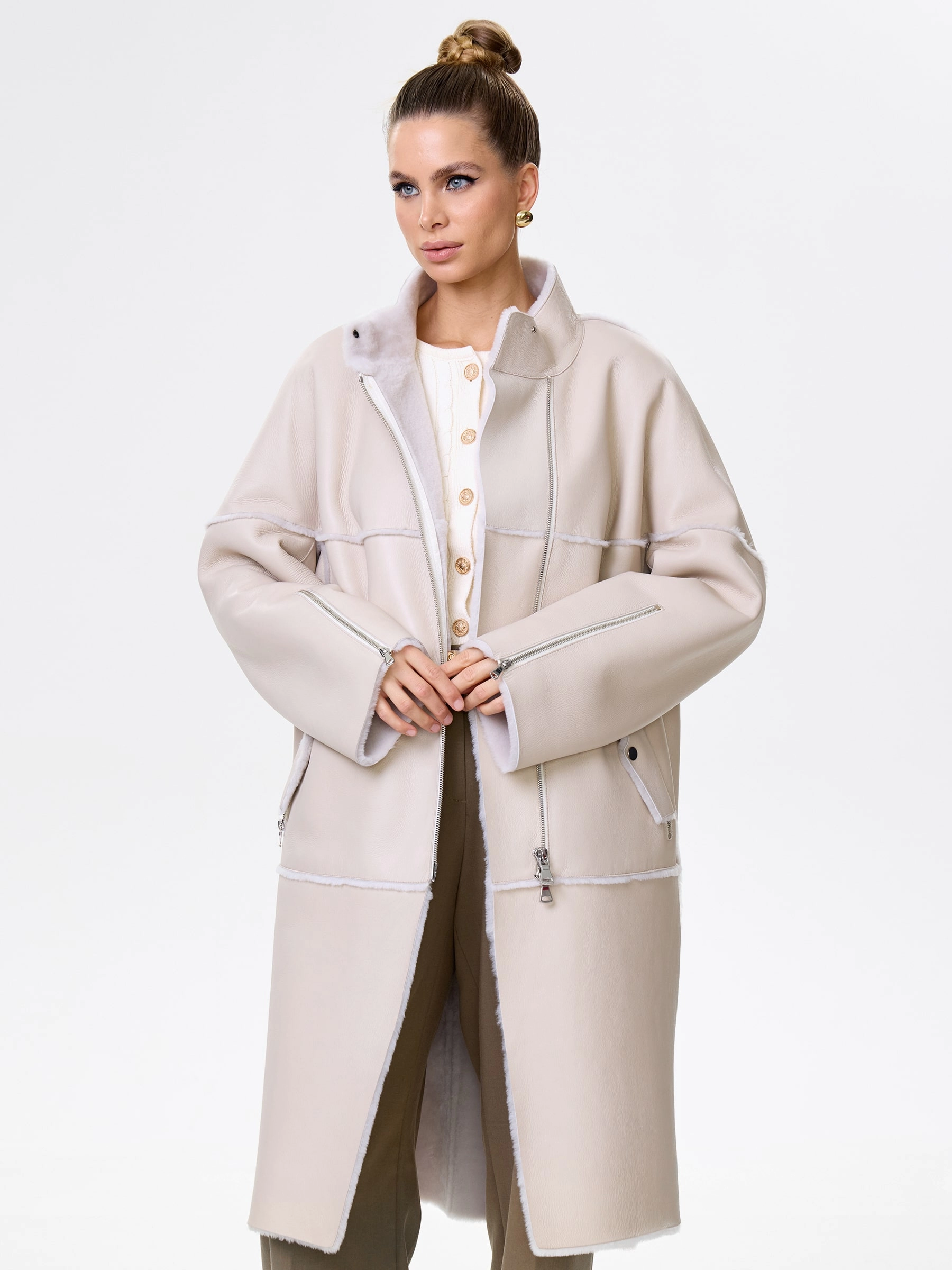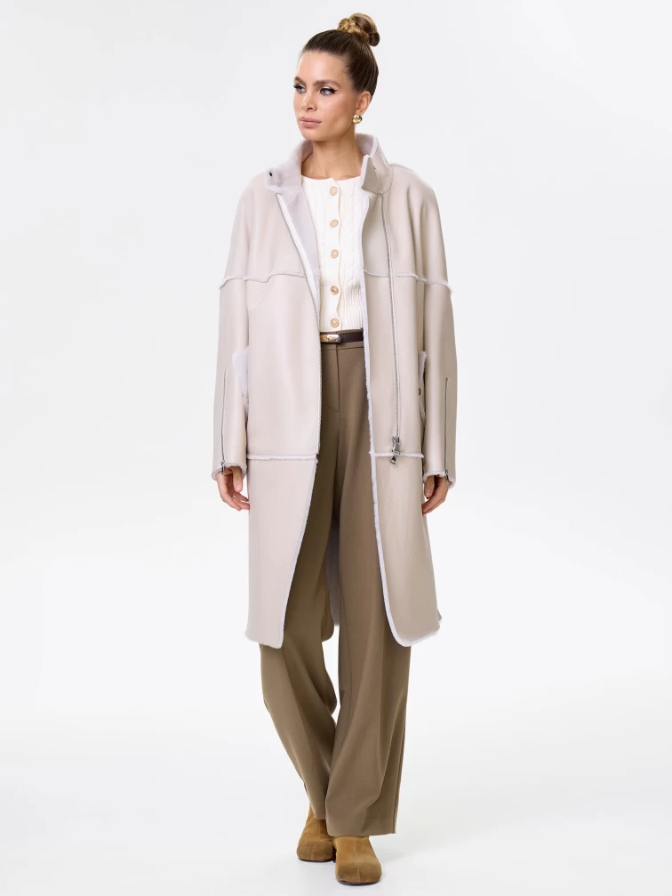 Товар молодежная женская дубленка на молнии премиум класса 2029, бежевая, размер 54, артикул 63010 выполнен из овчина "мерино" с застежкой молния. Рассчитан на сезон: осень-зима. Длина изделия 105 см, силуэт прямой.