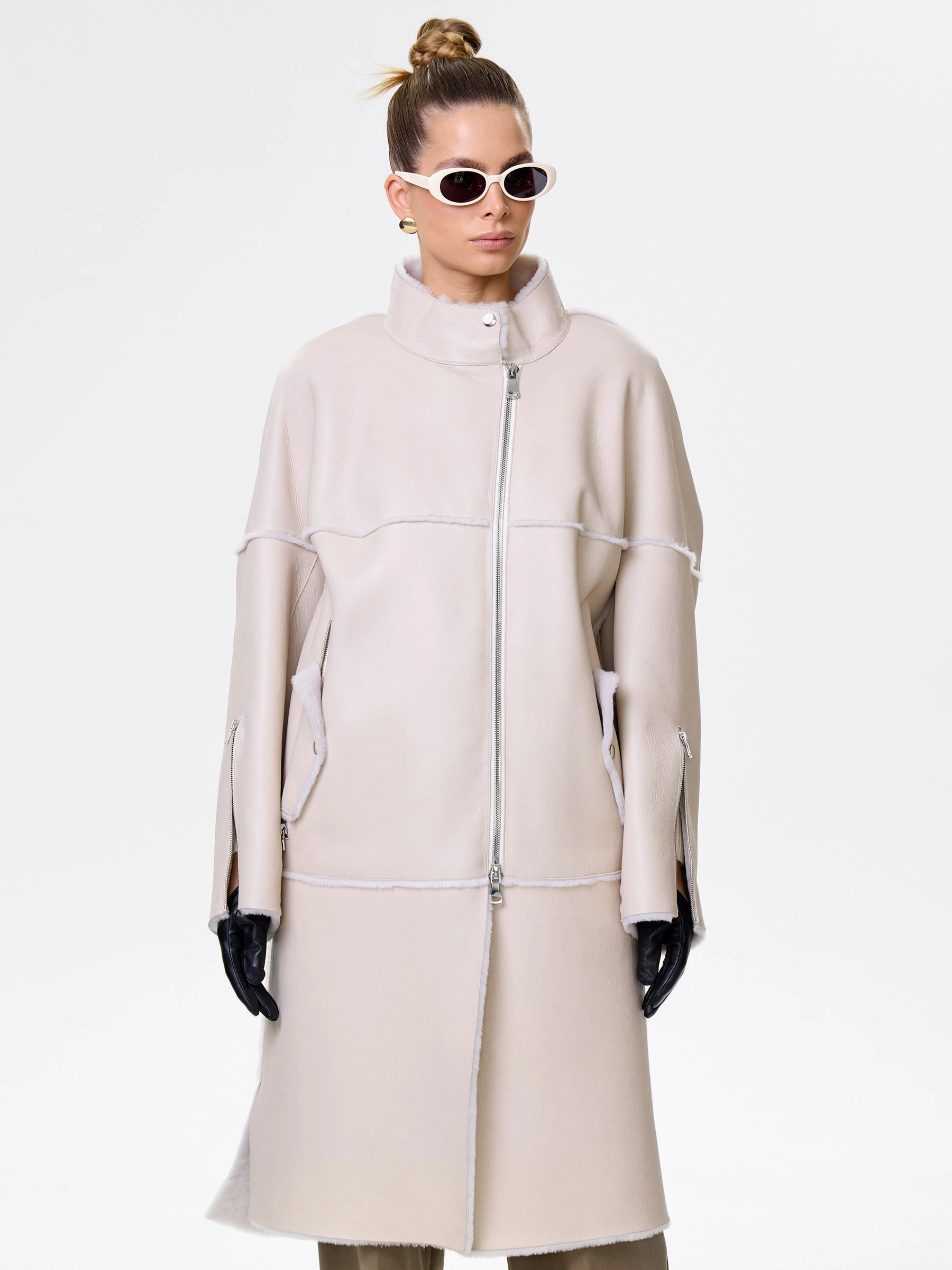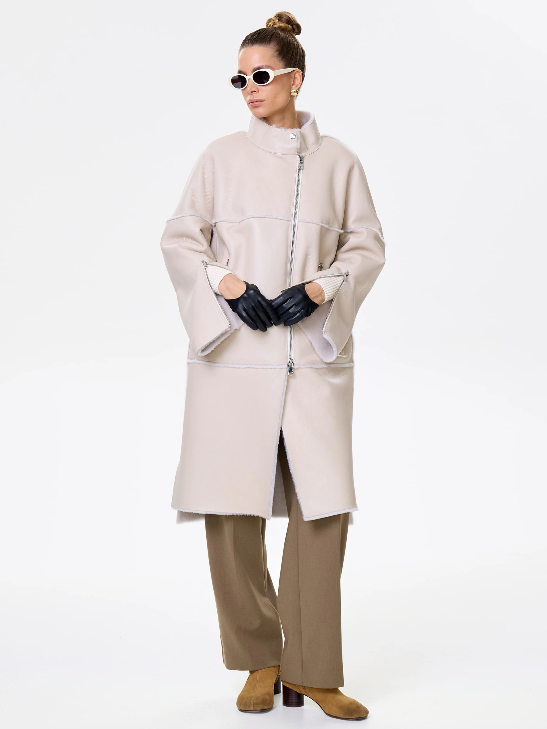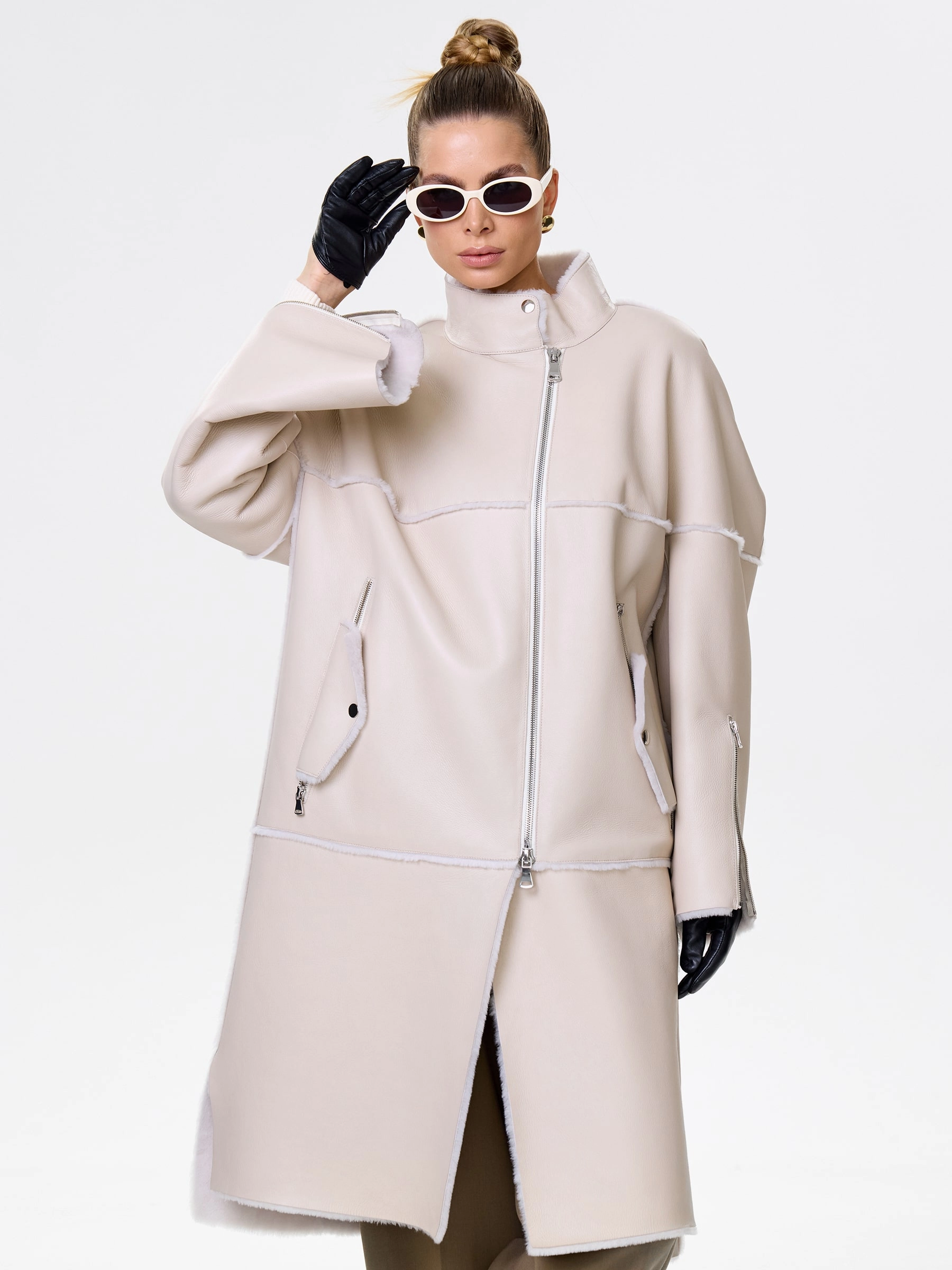 Товар молодежная женская дубленка на молнии премиум класса 2029, бежевая, размер 54, артикул 63010 выполнен из овчина "мерино" с застежкой молния. Рассчитан на сезон: осень-зима. Длина изделия 105 см, силуэт прямой.