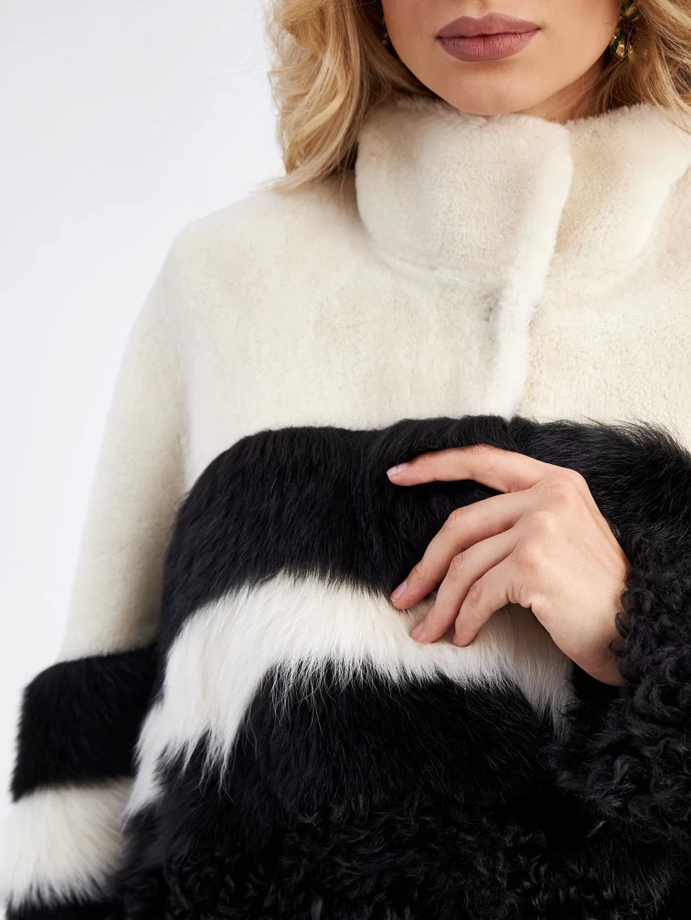Двусторонняя комбинированная женская дубленка с мехом тиградо премиум класса 2032, белая, размер 42, артикул 63070