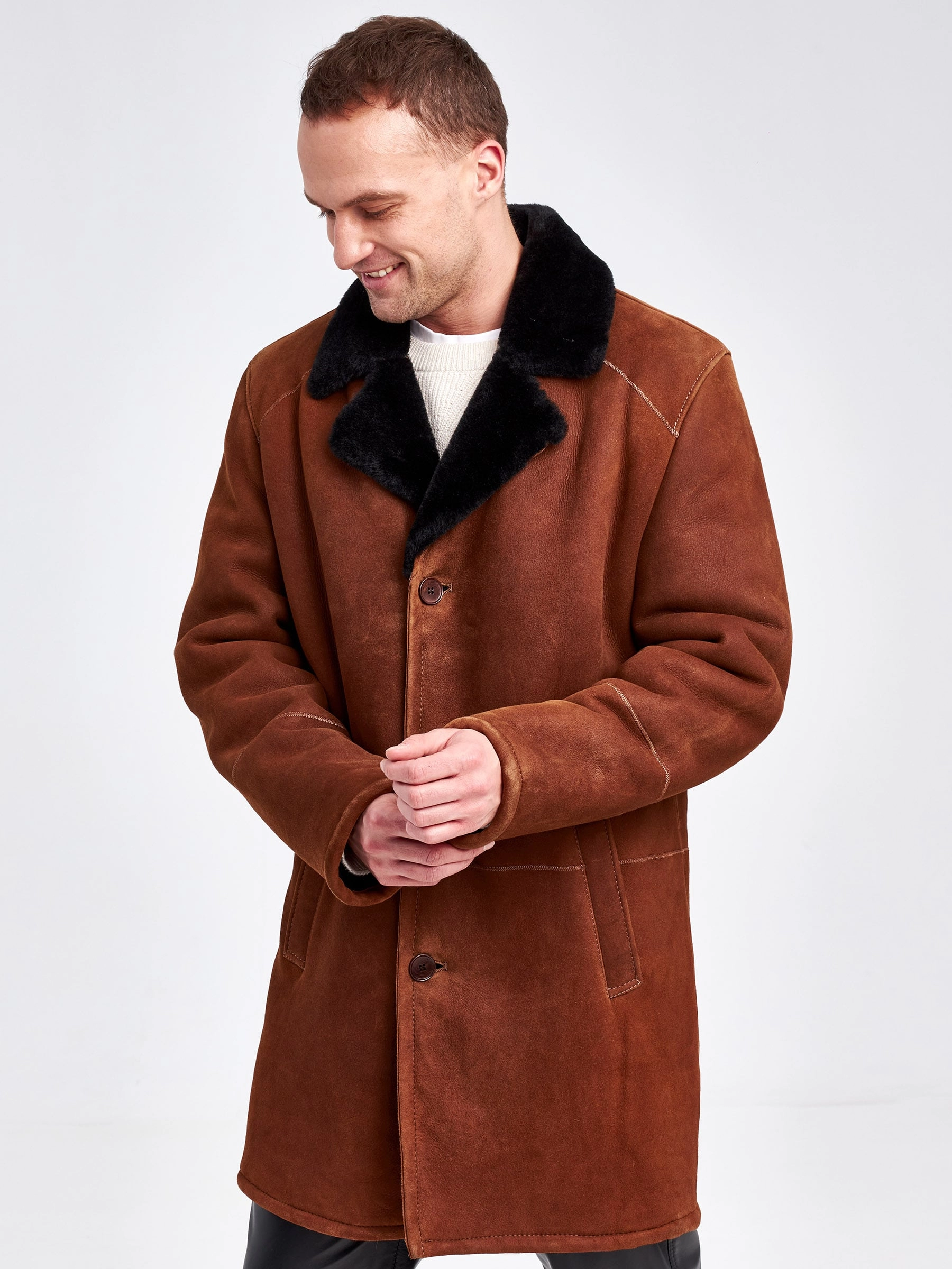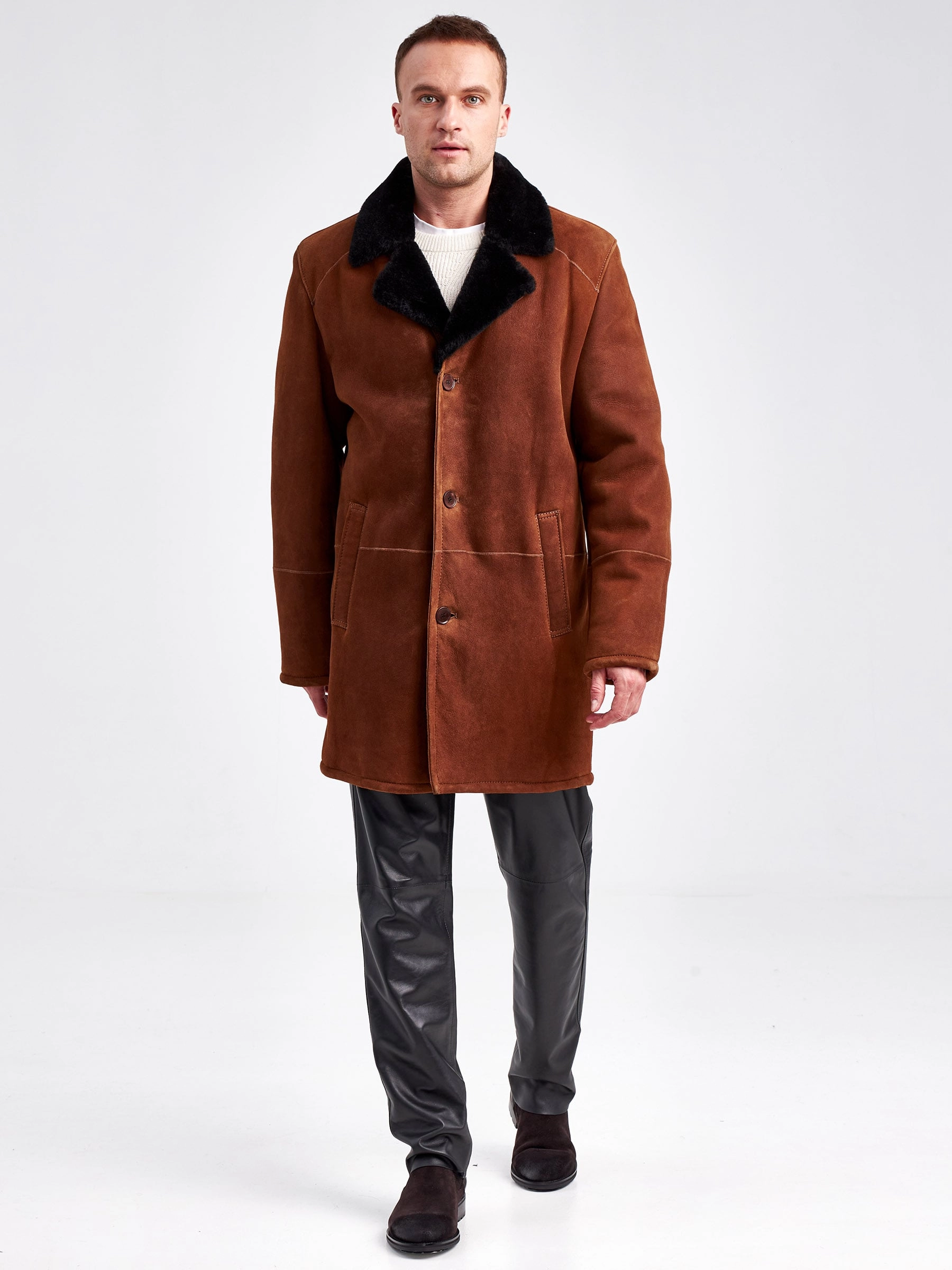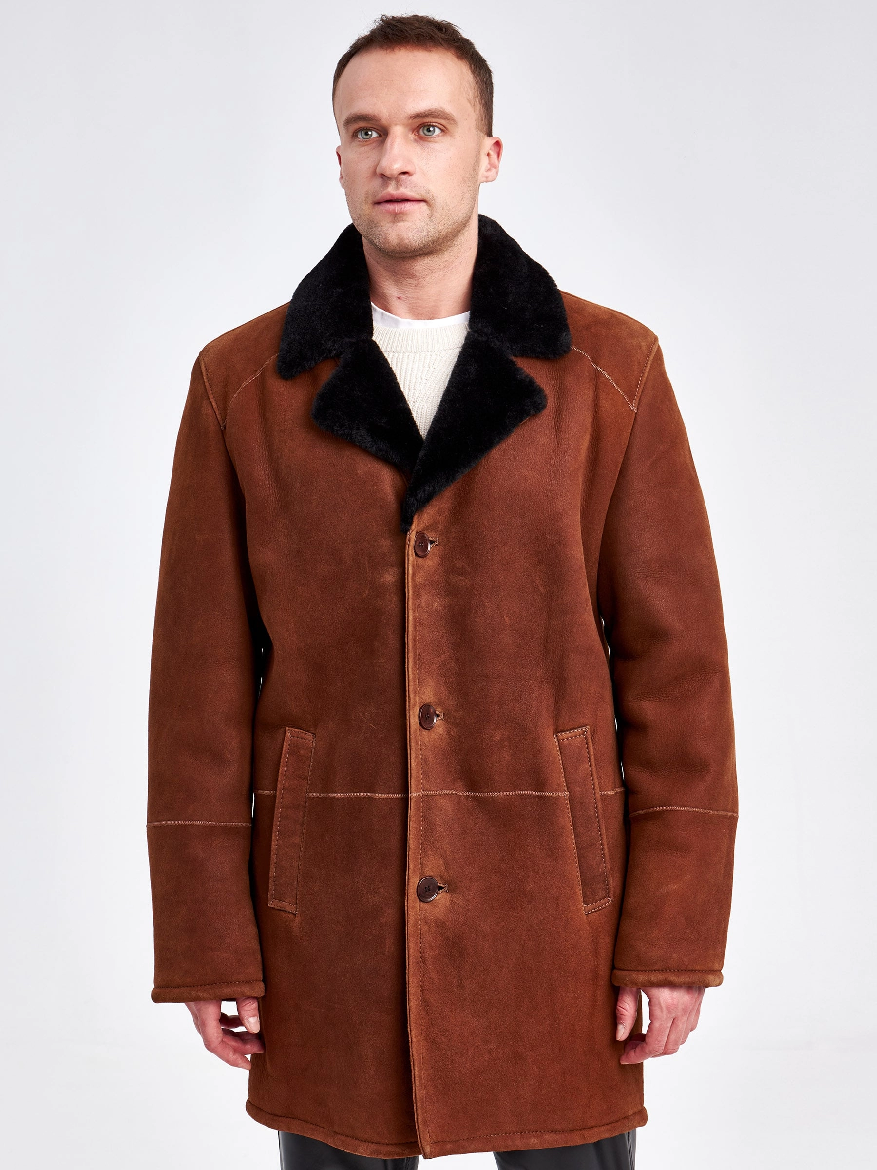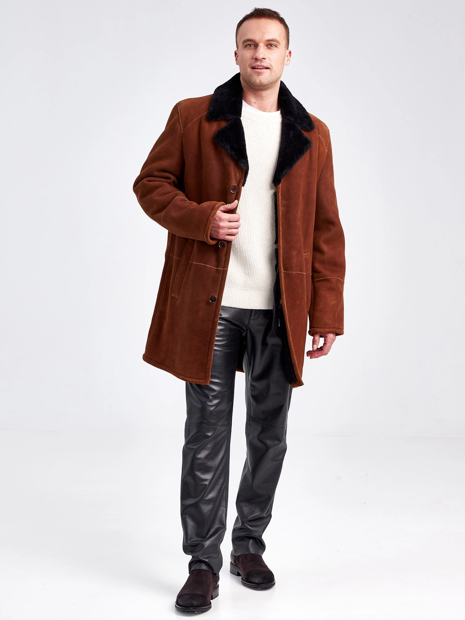 Замшевая дубленка для мужчин 2293, коричневая, размер 48, артикул 71160