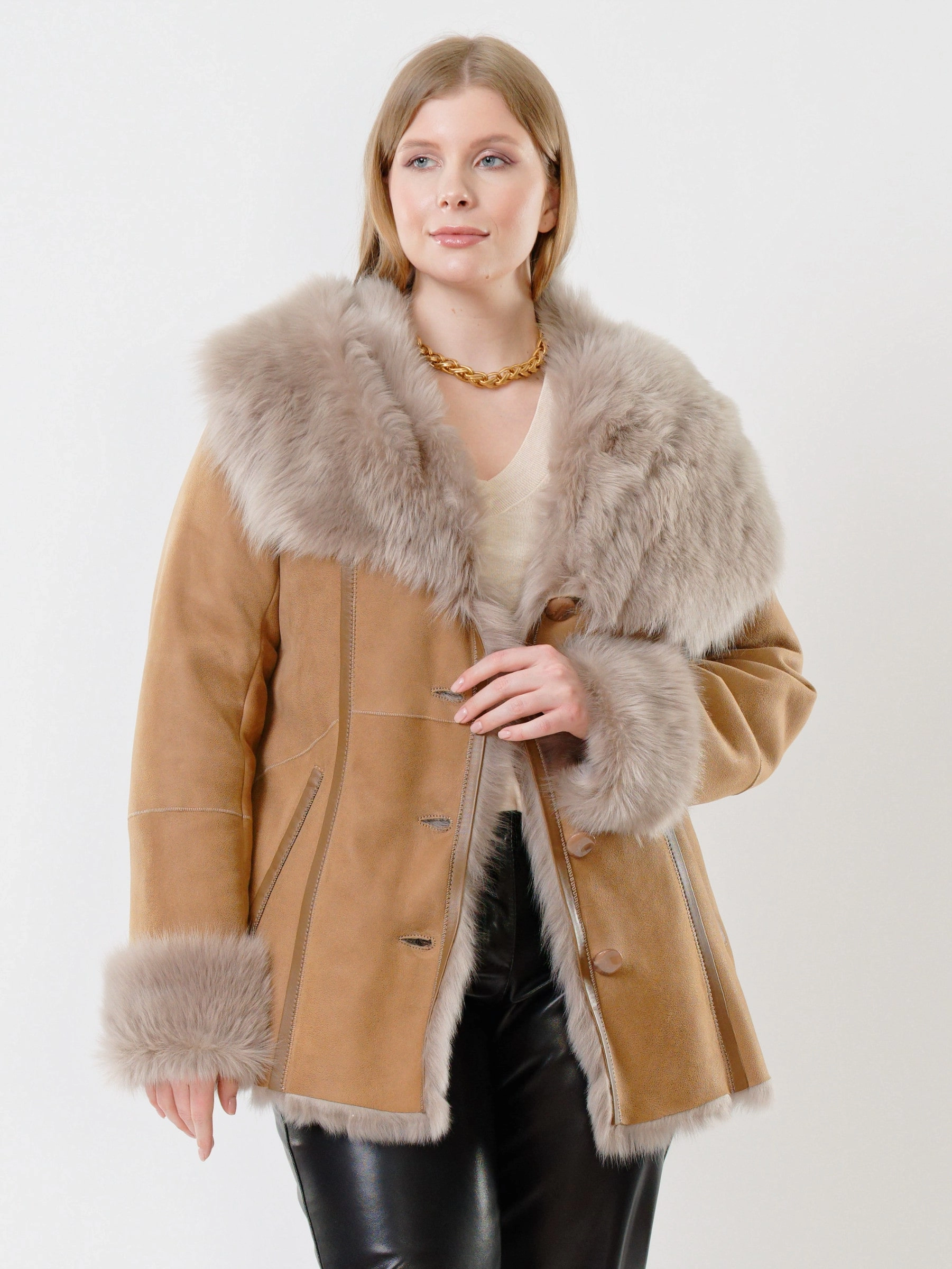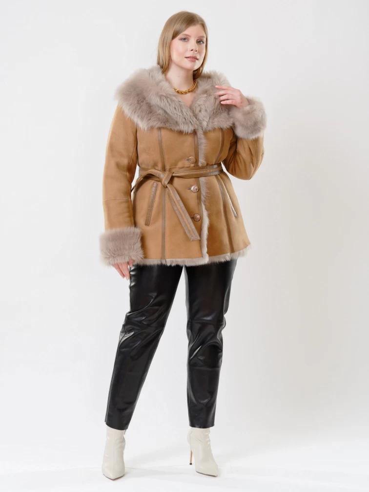 Идеальная полуприлегающая модель премиум-класса: невероятно густой мех тосканской овчины согреет в лютый мороз, а глубокий капюшон-трансформер эффектно завернёт вас в уют или элегантно ляжет шалью на плечи. Защитное покрытие убережёт от царапин, кожаная отделка карманов и борта добавит статусности, а регулируемые манжеты и боковые карманы обеспечат комфорт. Идеальная посадка по фигуре, продуманные швы и длинный пояс подчеркнут силуэт — сочетайте с джинсами, объёмными свитерами или тёмными платьями для дерзкого зимнего образа! Преимущество: короткая длина, полуприлегающий крой - это мобильность для города и элегантность для вечера.