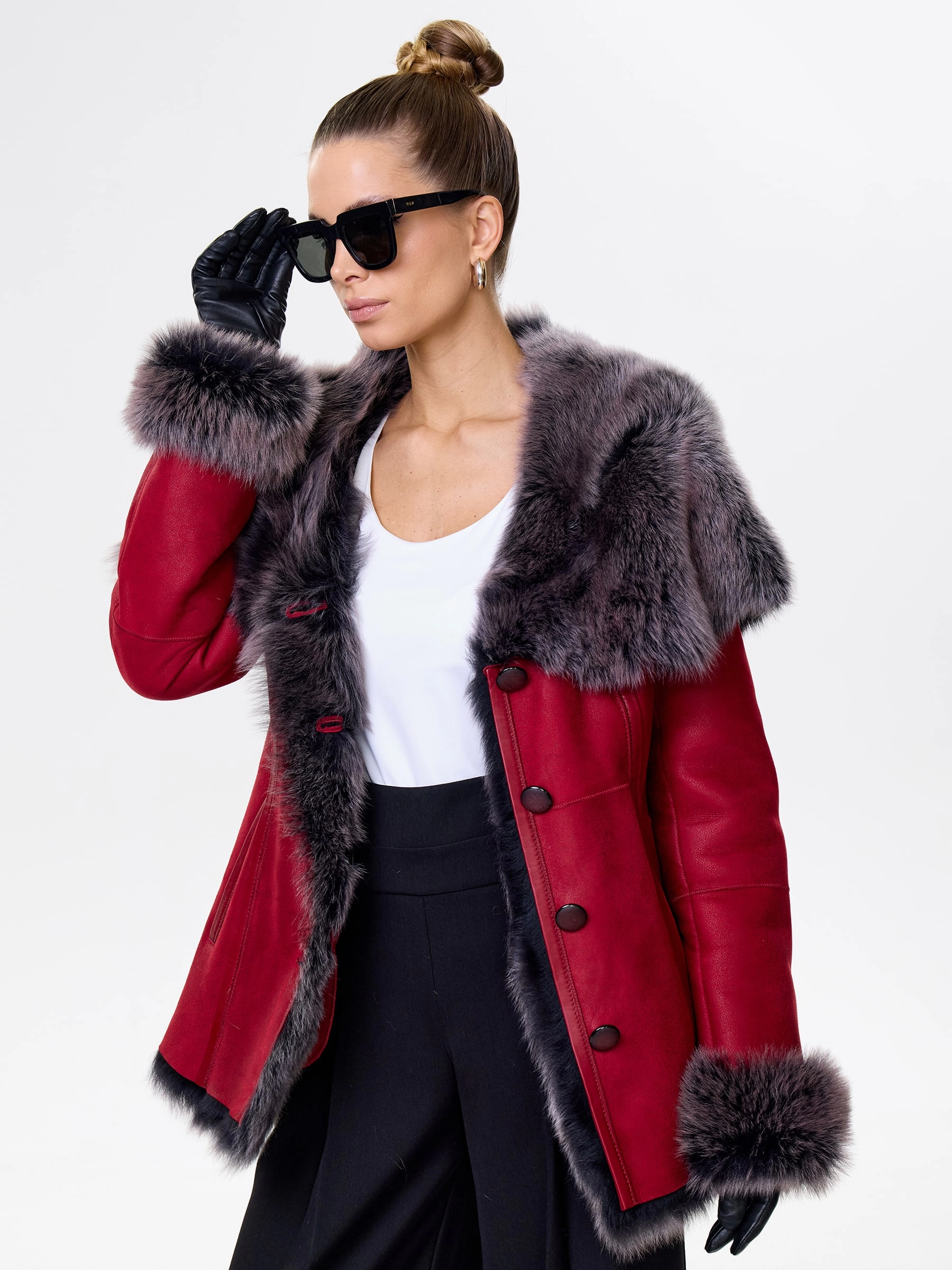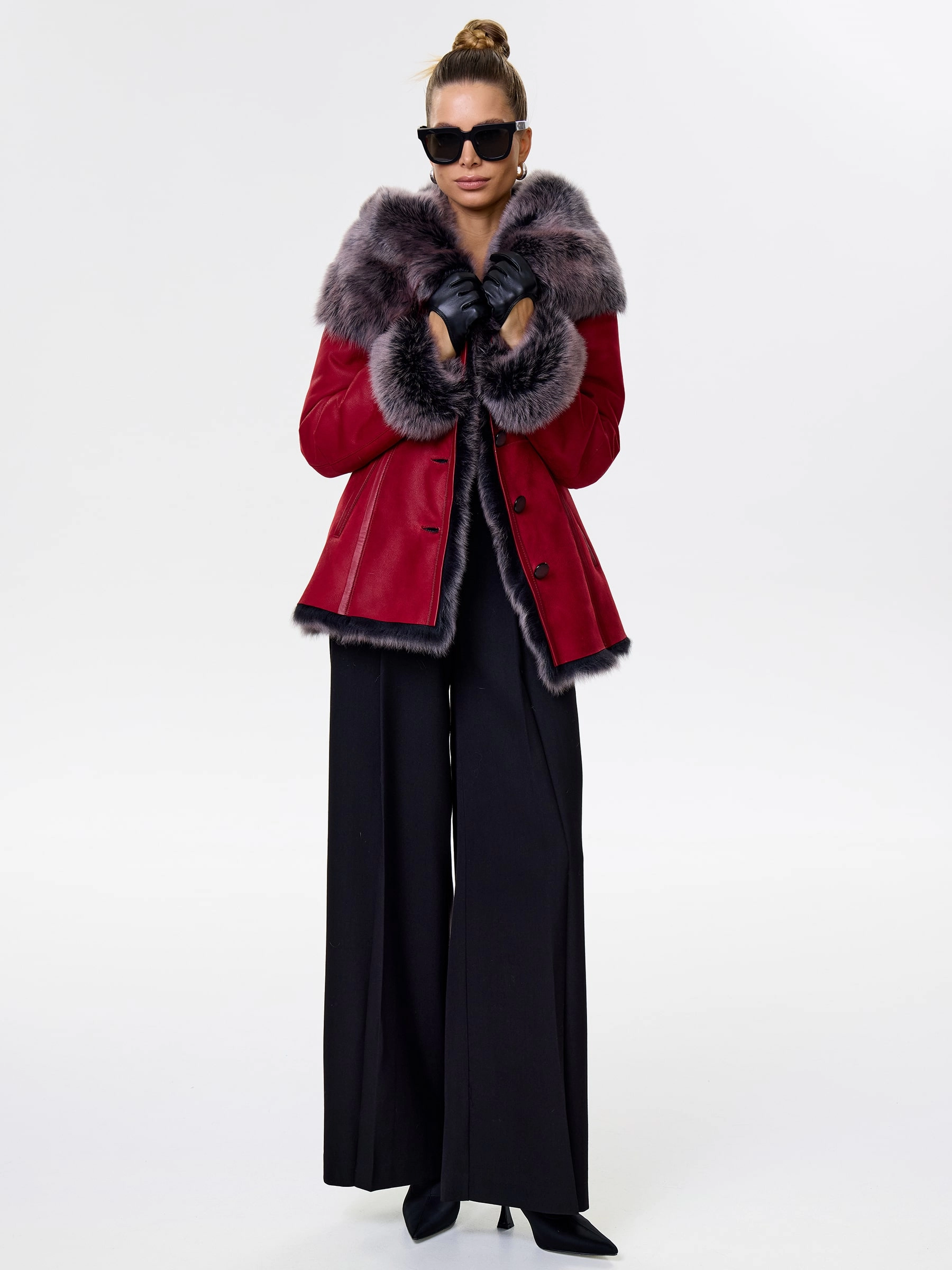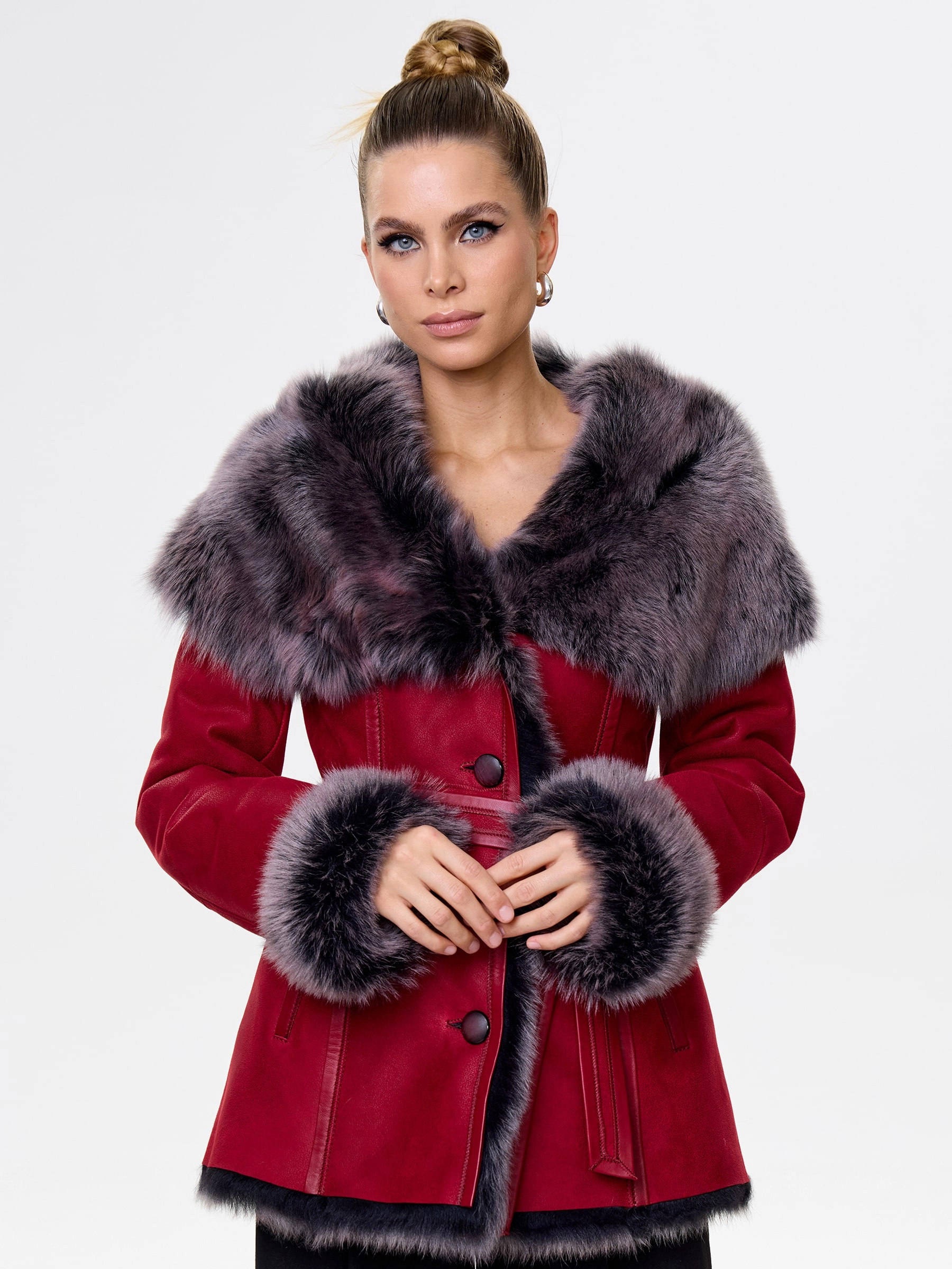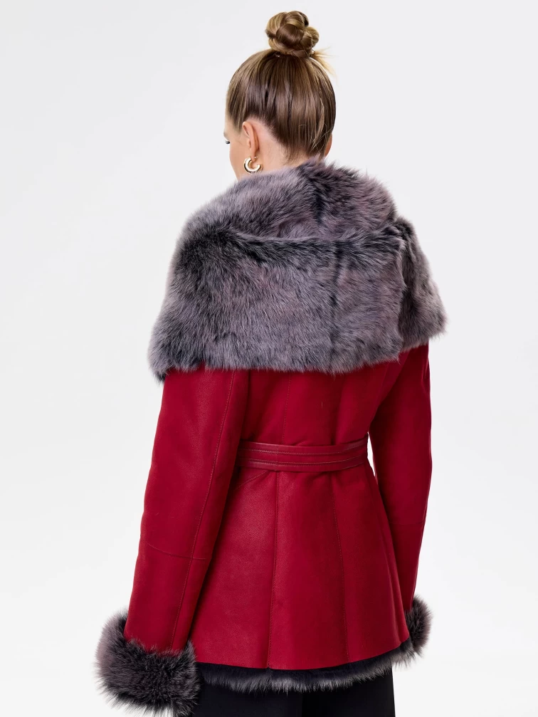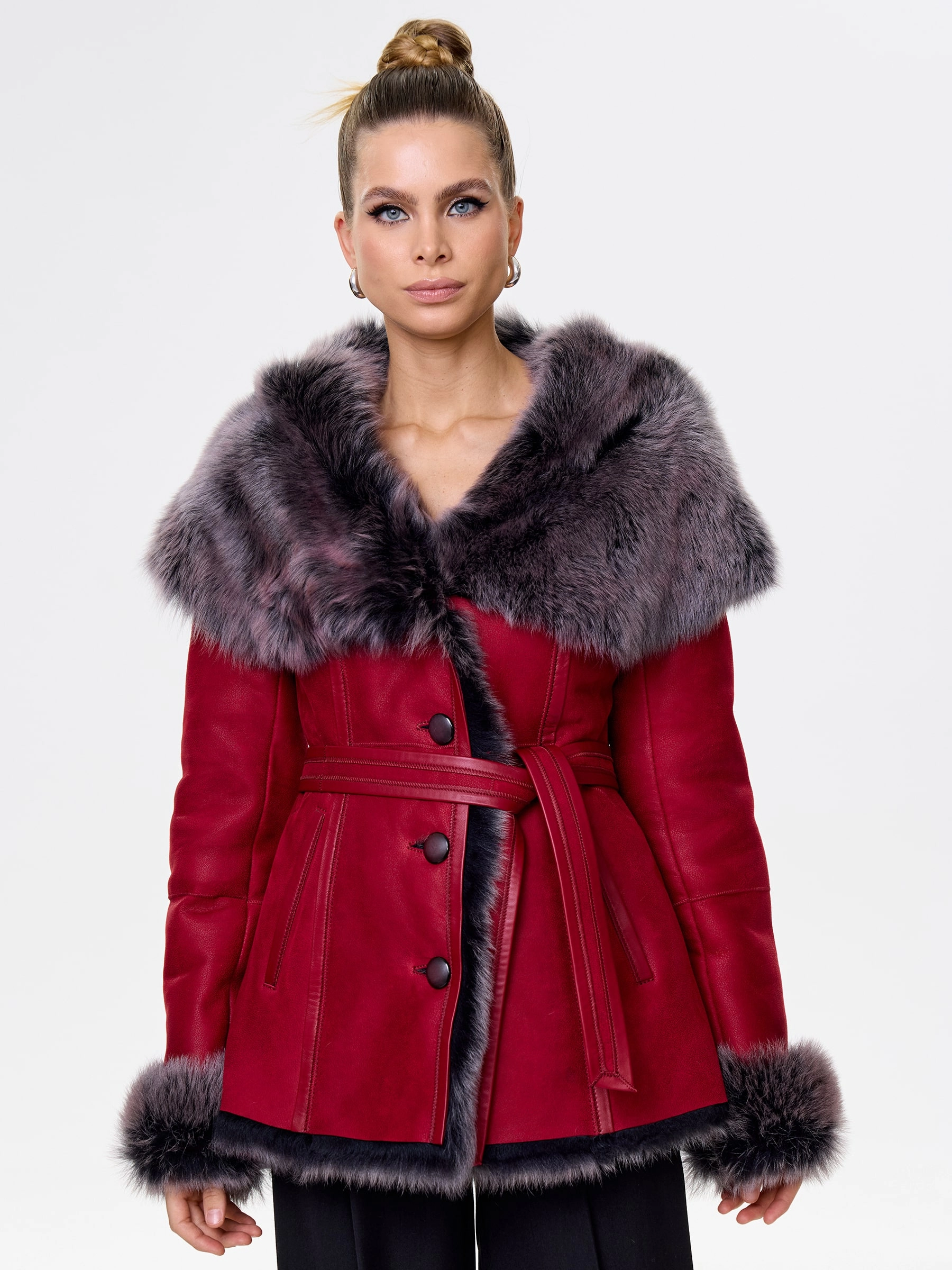 Идеальная полуприлегающая модель премиум-класса: невероятно густой мех тосканской овчины согреет в лютый мороз, а глубокий капюшон-трансформер эффектно завернёт вас в уют или элегантно ляжет шалью на плечи. Защитное покрытие убережёт от царапин, кожаная отделка карманов и борта добавит статусности, а регулируемые манжеты и боковые карманы обеспечат комфорт. Идеальная посадка по фигуре, продуманные швы и длинный пояс подчеркнут силуэт — сочетайте с джинсами, объёмными свитерами или тёмными платьями для дерзкого зимнего образа! Преимущество: короткая длина, полуприлегающий крой - это мобильность для города и элегантность для вечера.