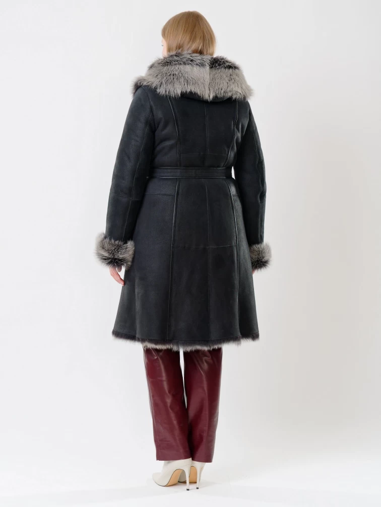 Зимний комплект женский: Дубленка 123НК + Брюки 02, черный/бордовый, р. 42, арт. 111250