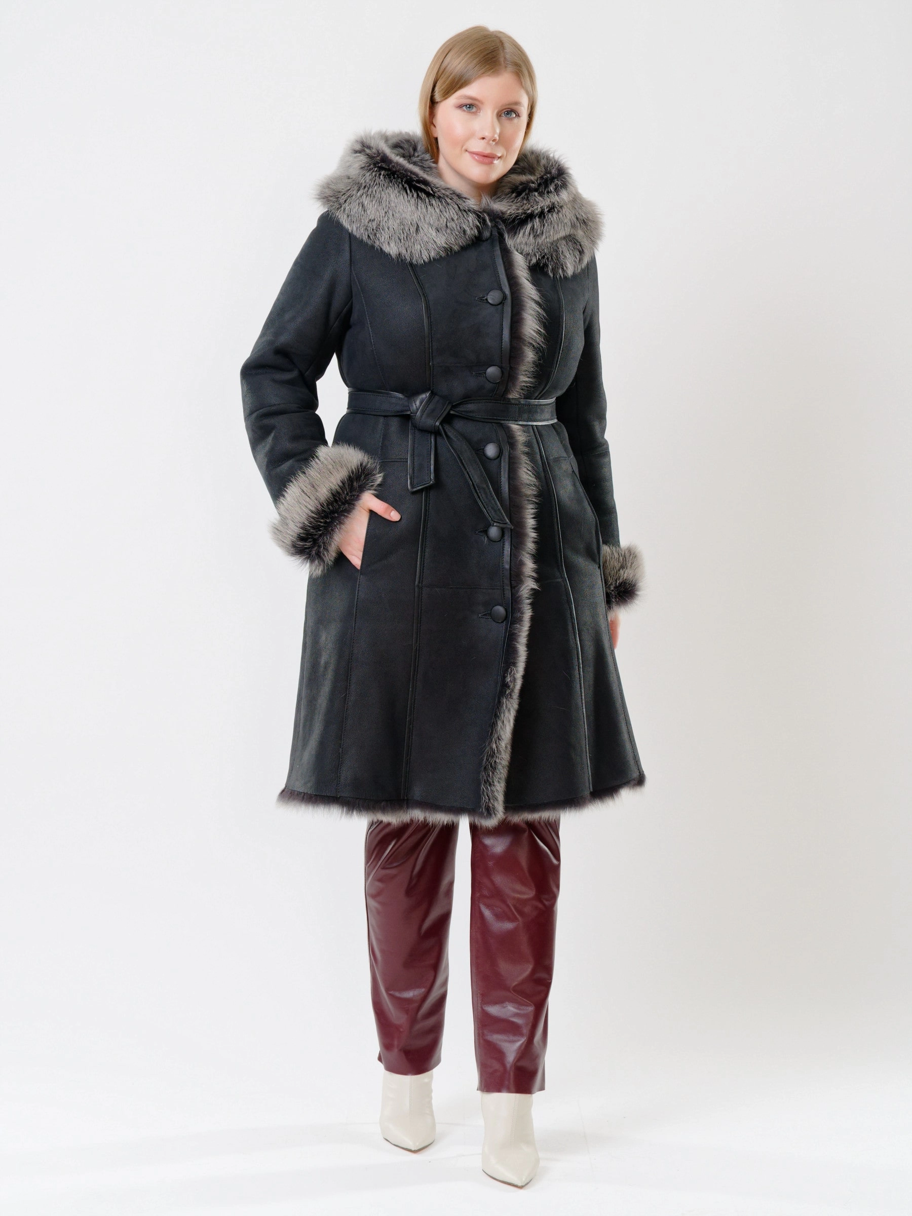Товар зимний комплект женский: дубленка 123нк + брюки 02, черный/бордовый, р. 42, арт. 111250.