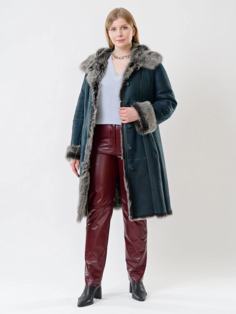 Товар зимний комплект женский: дубленка 123нк + брюки 02, синий/бордовый, р. 42, арт. 111248.