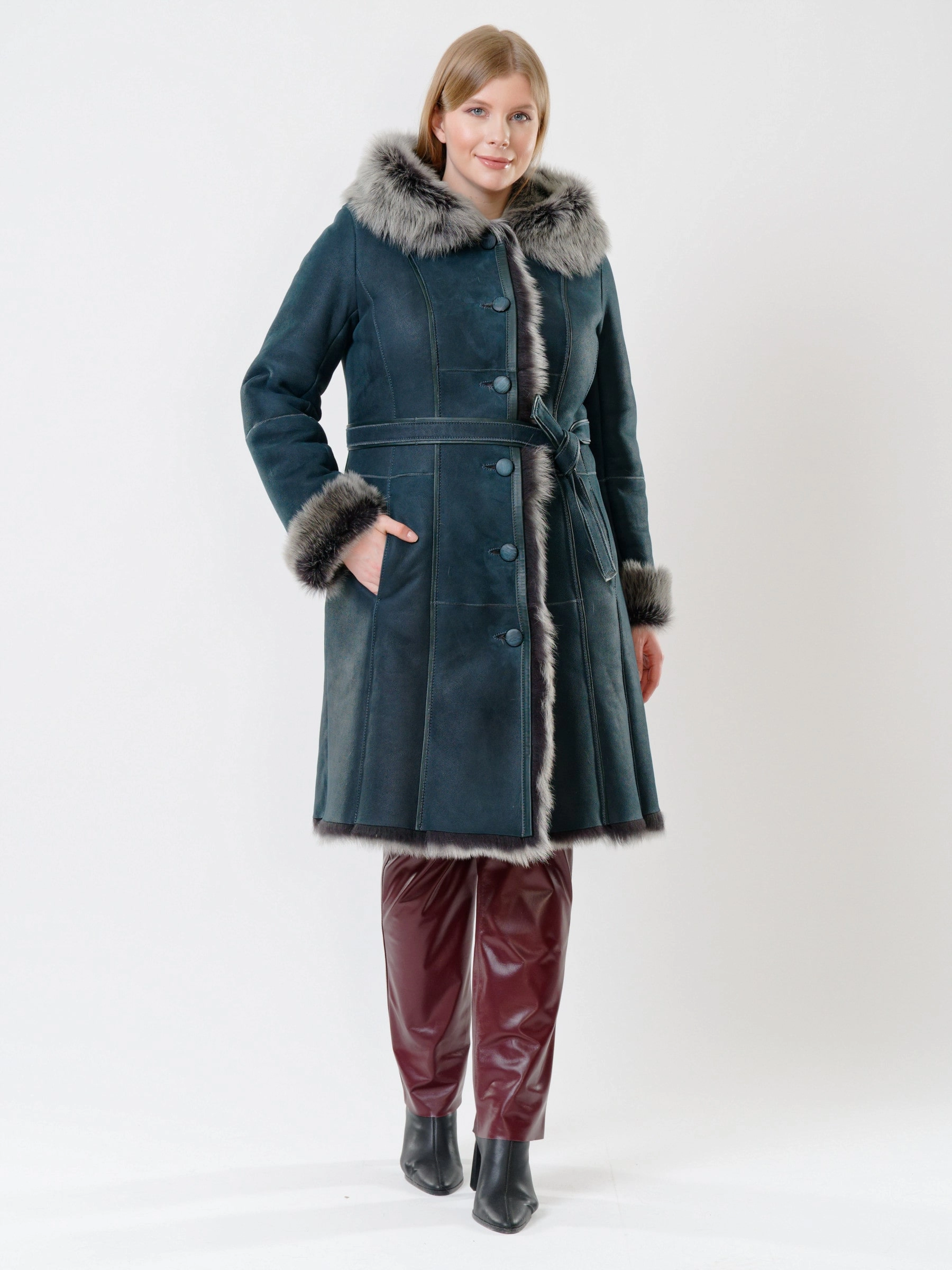 Зимний комплект женский: Дубленка 123НК + Брюки 02, синий/бордовый, р. 42, арт. 111248
