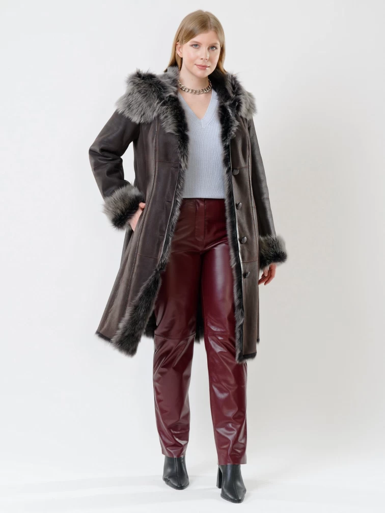 Зимний комплект женский: Дубленка 123НК + Брюки 02, коричневый/бордовый, р. 42, арт. 111249