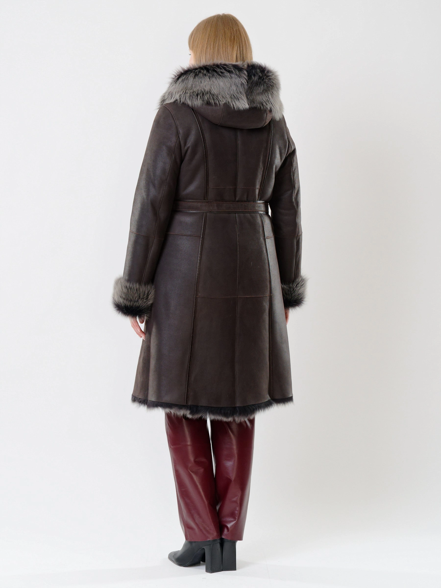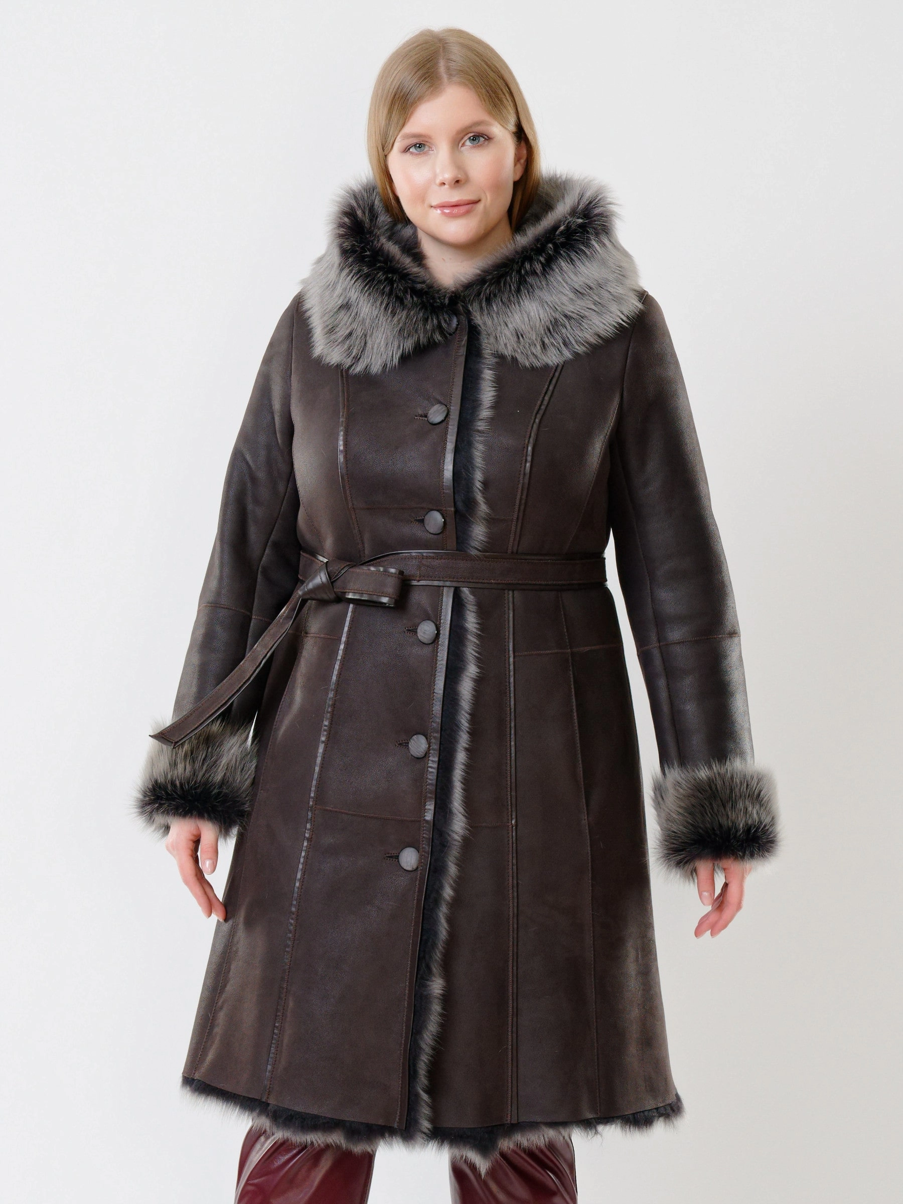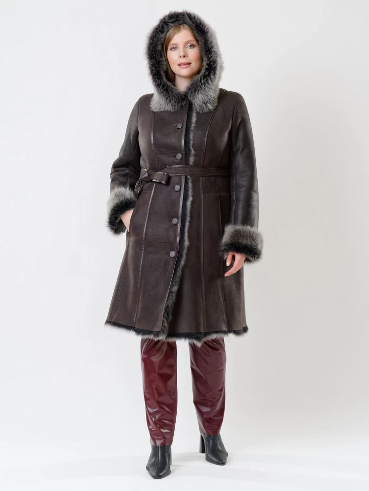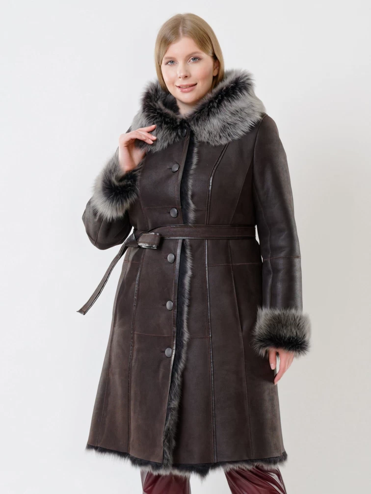 Товар зимний комплект женский: дубленка 123нк + брюки 02, коричневый/бордовый, р. 42, арт. 111249.