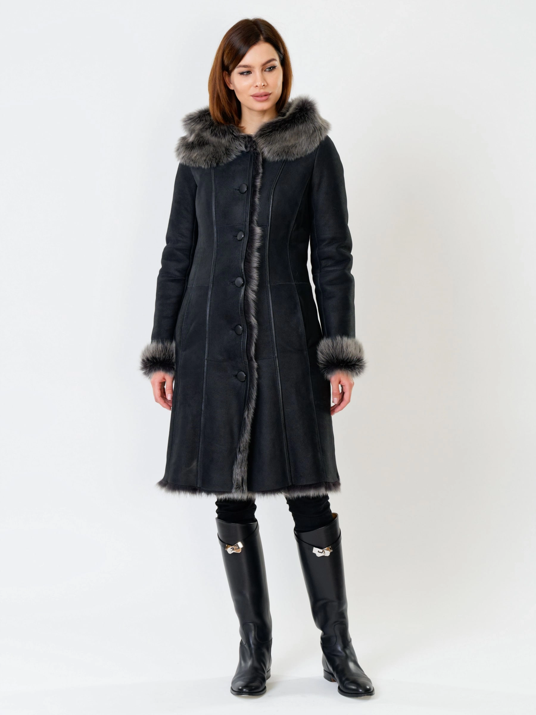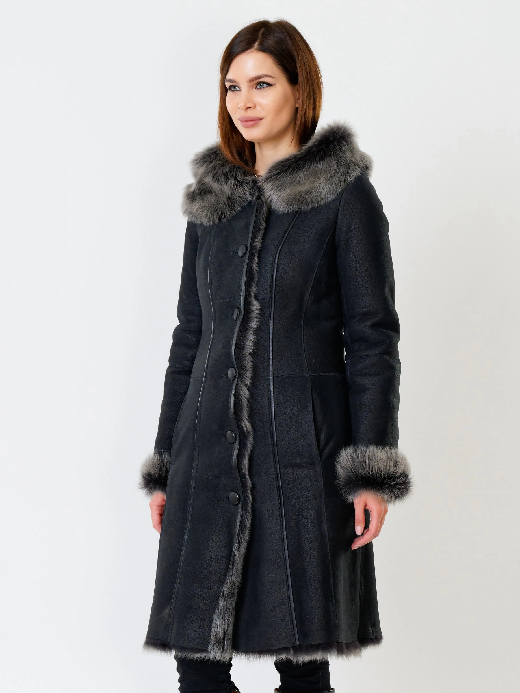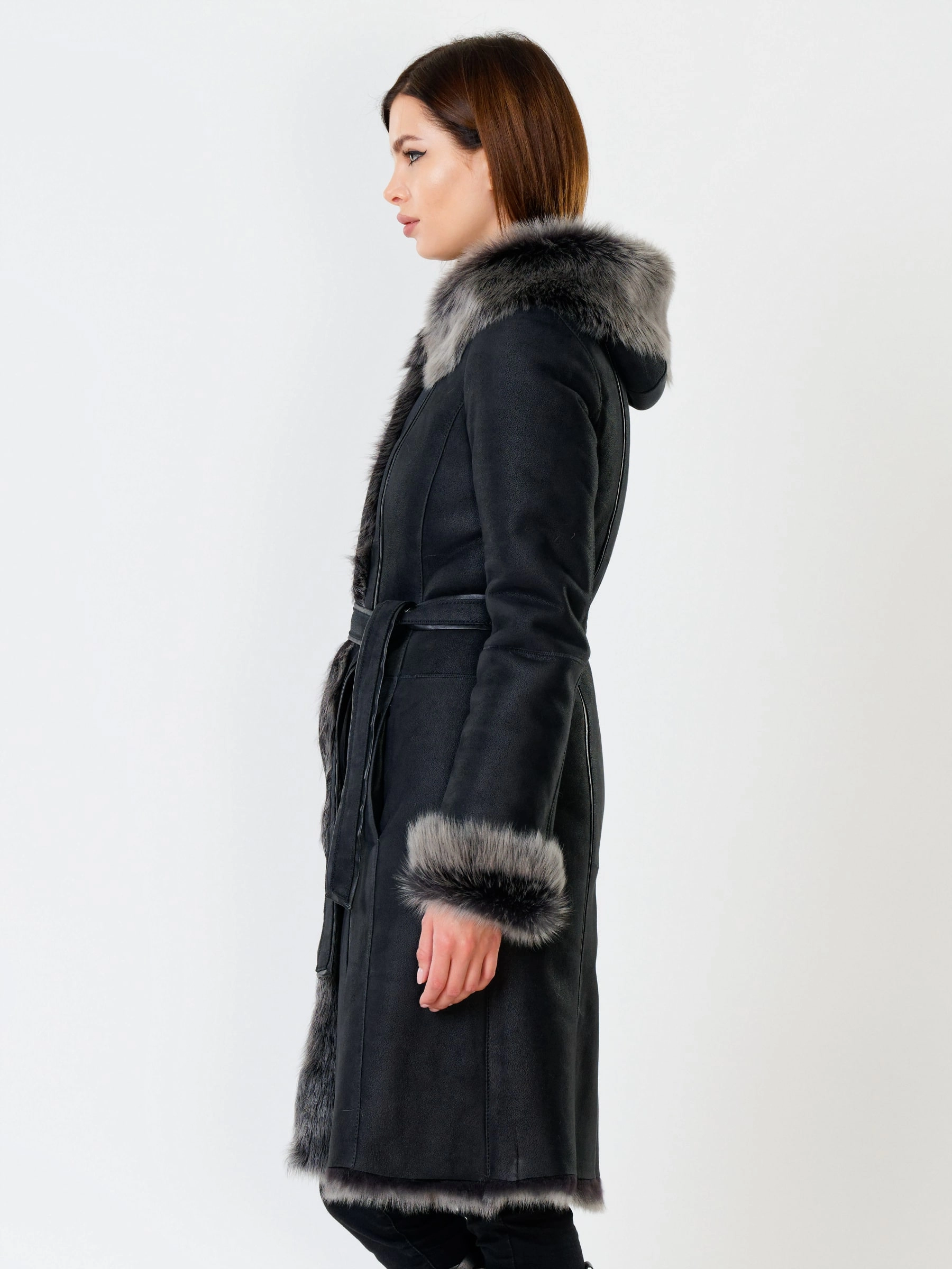 Длинная дублёнка с капюшоном из тосканской овчины. Роскошная полуприлегающая модель премиум-класса: густой нежнейший мех глубокого оттенк подарит королевское тепло даже в лютый мороз, а объёмный капюшон создаст уютный кокон от непогоды или элегантно ниспадет на плечи. Защитное покрытие убережёт от царапин, а идеальная посадка по фигуре, боковые карманы и длинный пояс подчеркнут силуэт — сочетайте с чёрными джинсами, вязаными платьями или кожаными брюками для безупречного зимнего образа! Преимущество: короткая длина, полуприлегающий крой - это мобильность для города и элегантность для вечера.