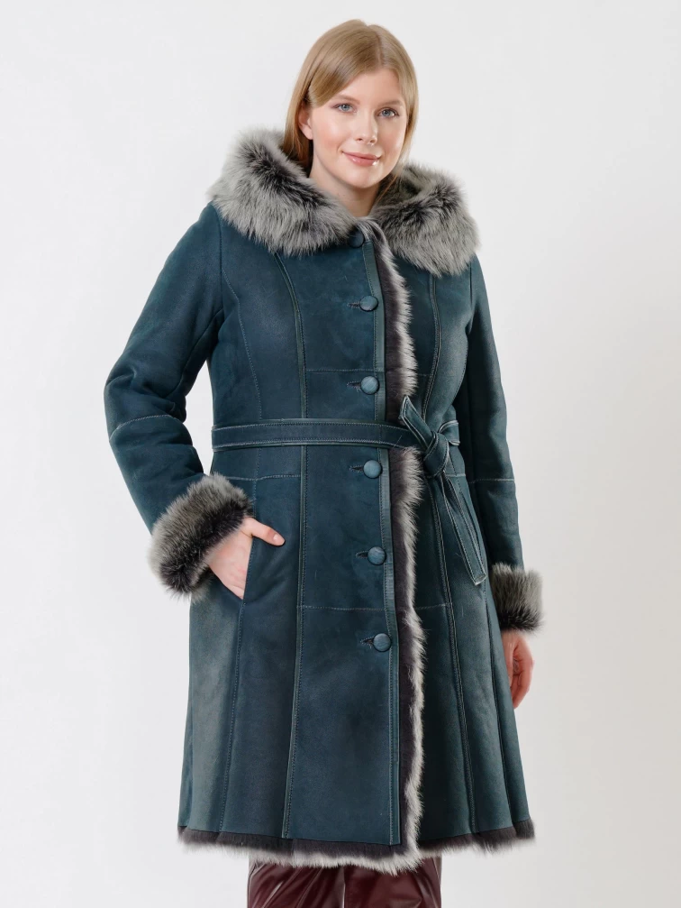 Товар длинная женская дубленка из тосканы с капюшоном 123нк, синяя, размер 40, артикул 62062 выполнен из овчина "тоскана" с застежкой пуговицы. Рассчитан на сезон: осень-зима. Длина изделия 101 см, силуэт полуприлегающий.