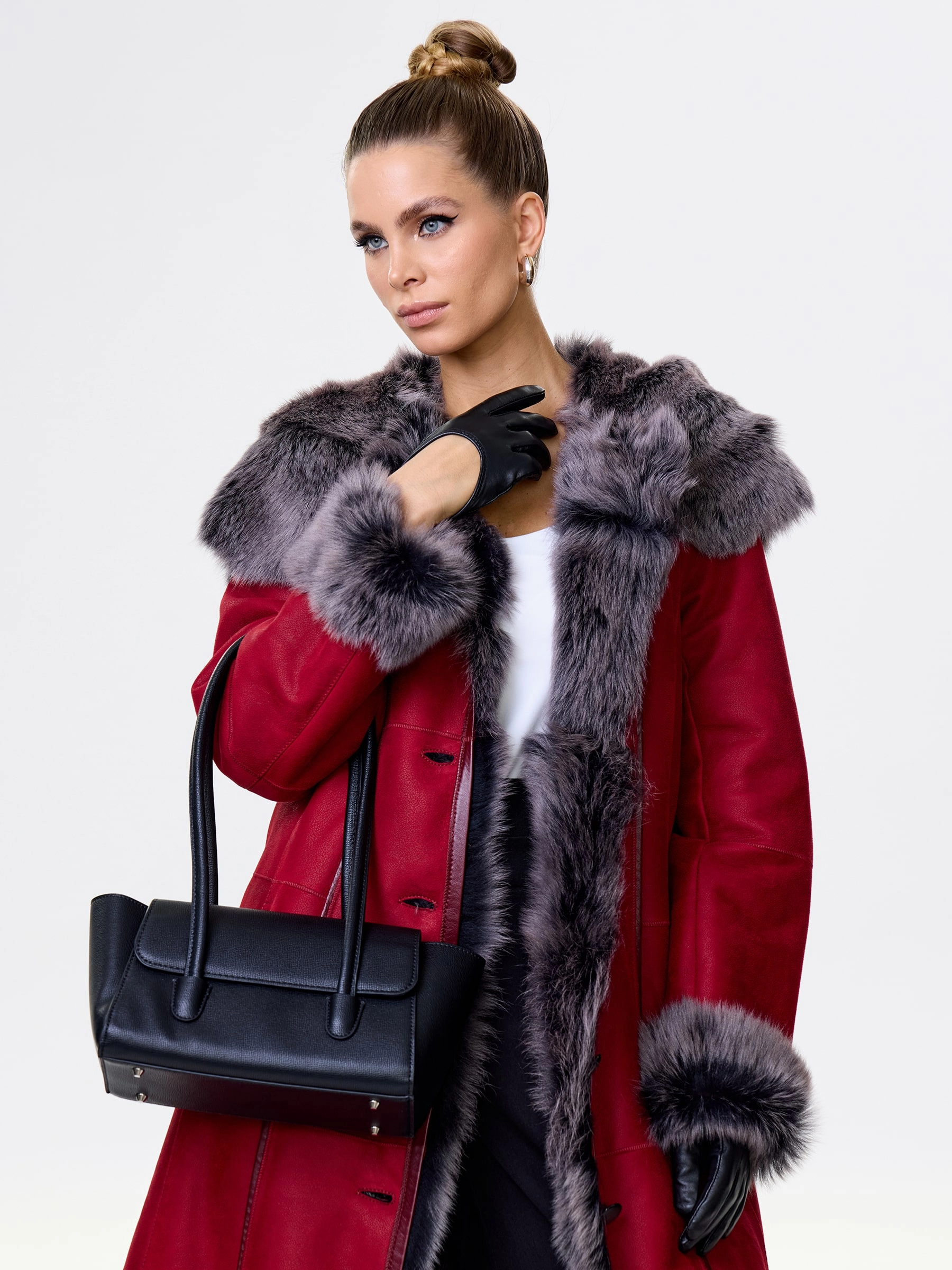 Длинная дублёнка с капюшоном из тосканской овчины. Роскошная полуприлегающая модель премиум-класса: густой нежнейший мех глубокого оттенк подарит королевское тепло даже в лютый мороз, а объёмный капюшон создаст уютный кокон от непогоды или элегантно ниспадет на плечи. Защитное покрытие убережёт от царапин, а идеальная посадка по фигуре, боковые карманы и длинный пояс подчеркнут силуэт — сочетайте с чёрными джинсами, вязаными платьями или кожаными брюками для безупречного зимнего образа! Преимущество: короткая длина, полуприлегающий крой - это мобильность для города и элегантность для вечера.