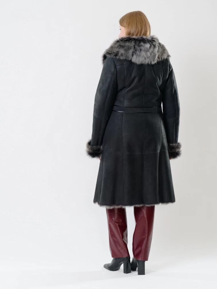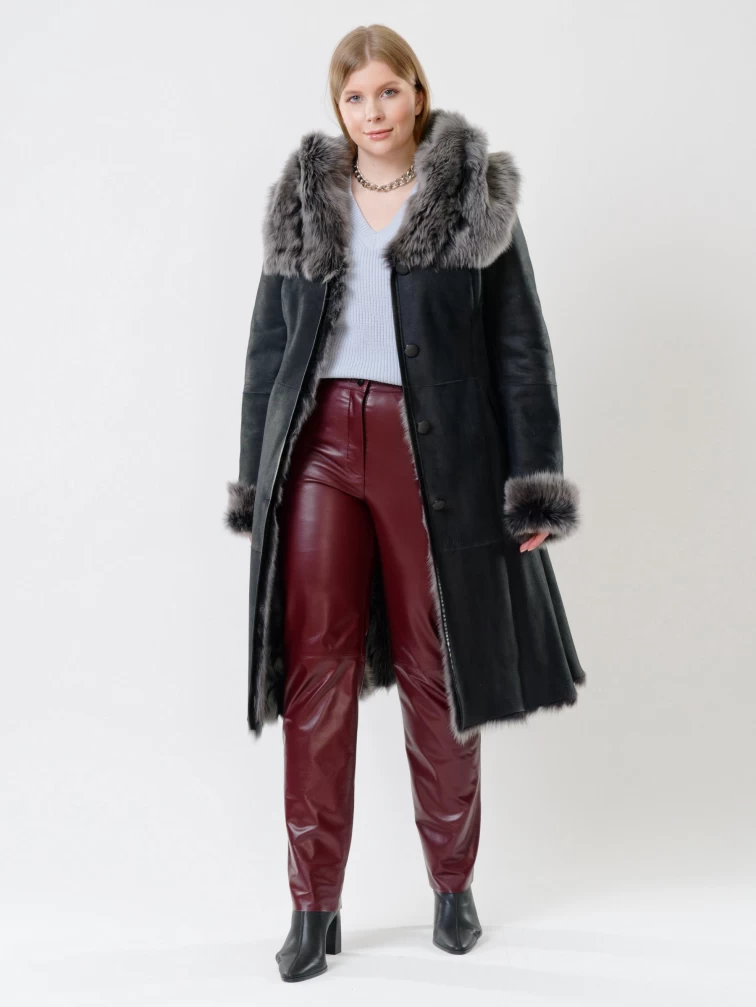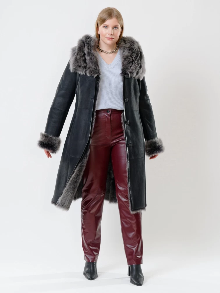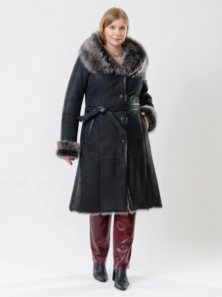 В насыщенном черном цвете, эта роскошная длинная женская дубленка из нежнейшей овчины "Тоскана" на пуговицах, с эффектным объемным капюшоном-шалью, полуприлегающим силуэтом, двумя врезными карманами и длинным поясом, дарит премиальное тепло и подчеркивает элегантность; сочетайте ее с водолазкой и джинсами, элегантным платьем и сапогами, кожаной косухой и кедами или поверх тонкого свитера, дополняя объемным шарфом и стильной сумкой.