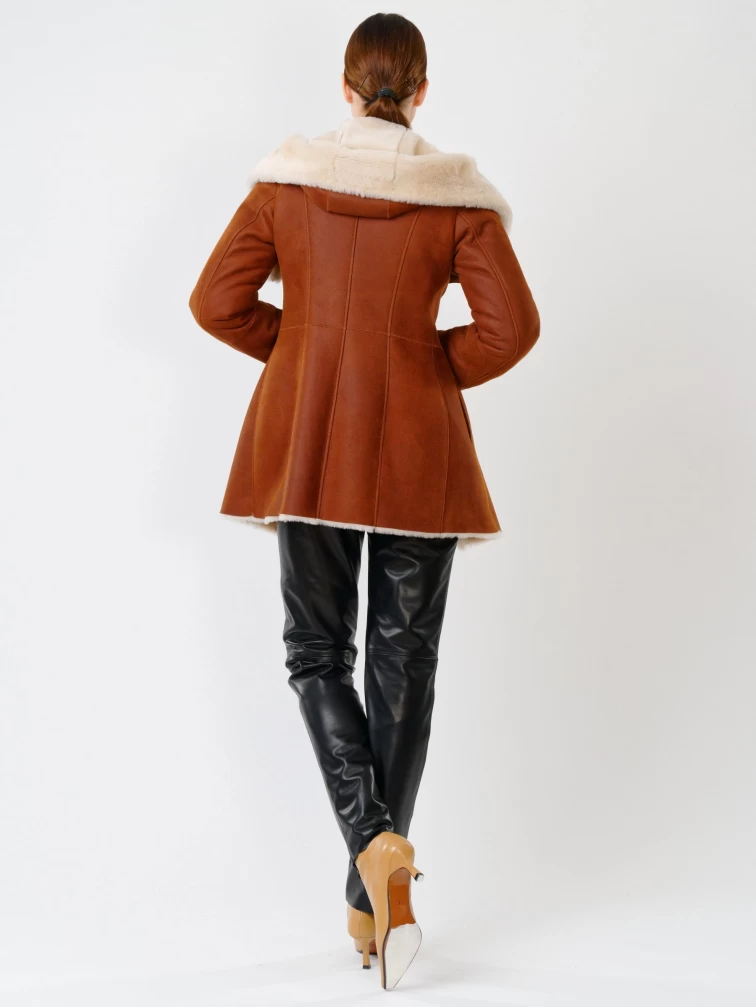 Дубленка-косуха. Удобный объёмный капюшон. Нежнейшая мериносная овчина с максимально густым мехом согреет в любой мороз. Устойчивое защитное покрытие. Абсолютный комфорт. Премиальное качество.