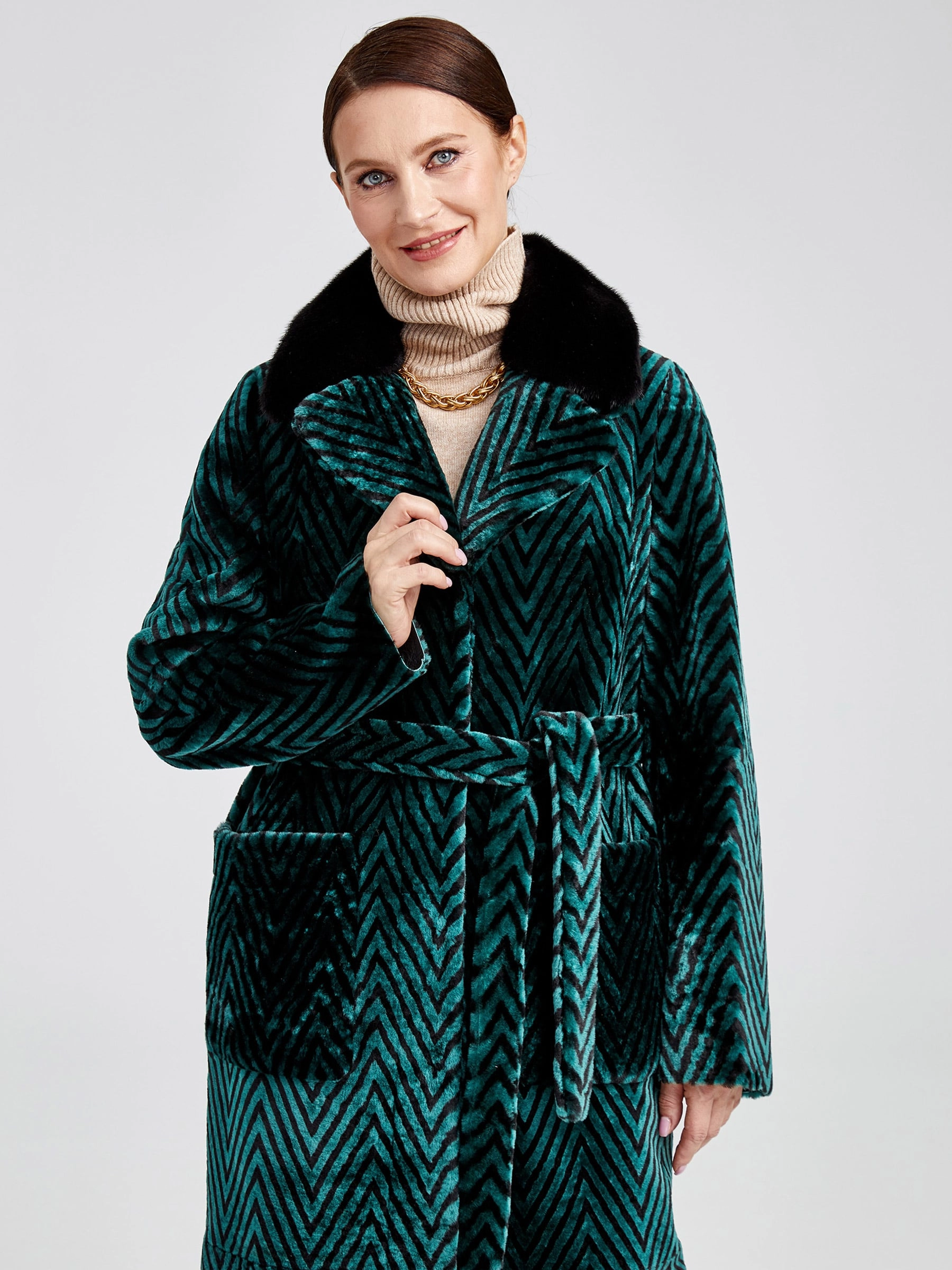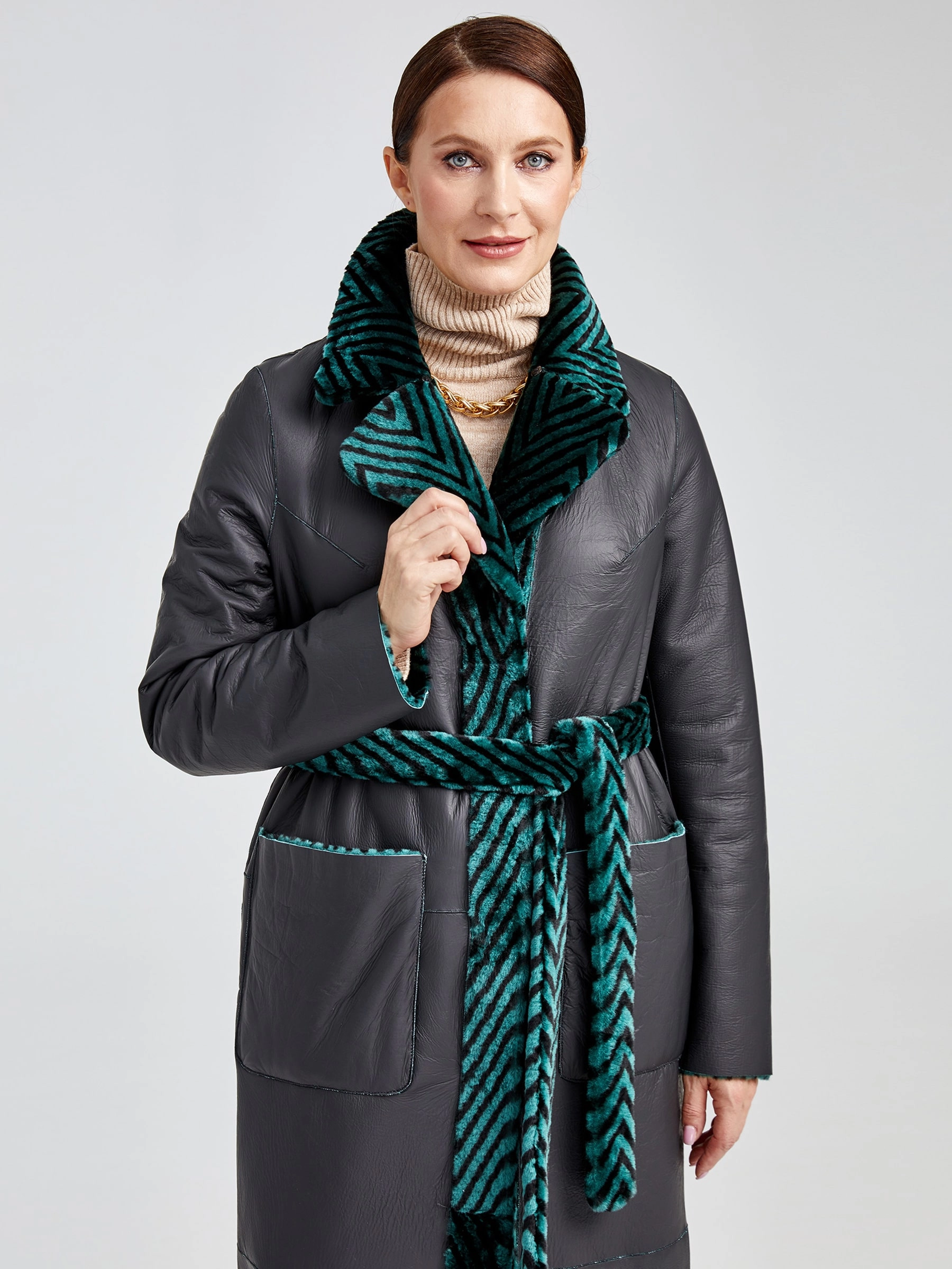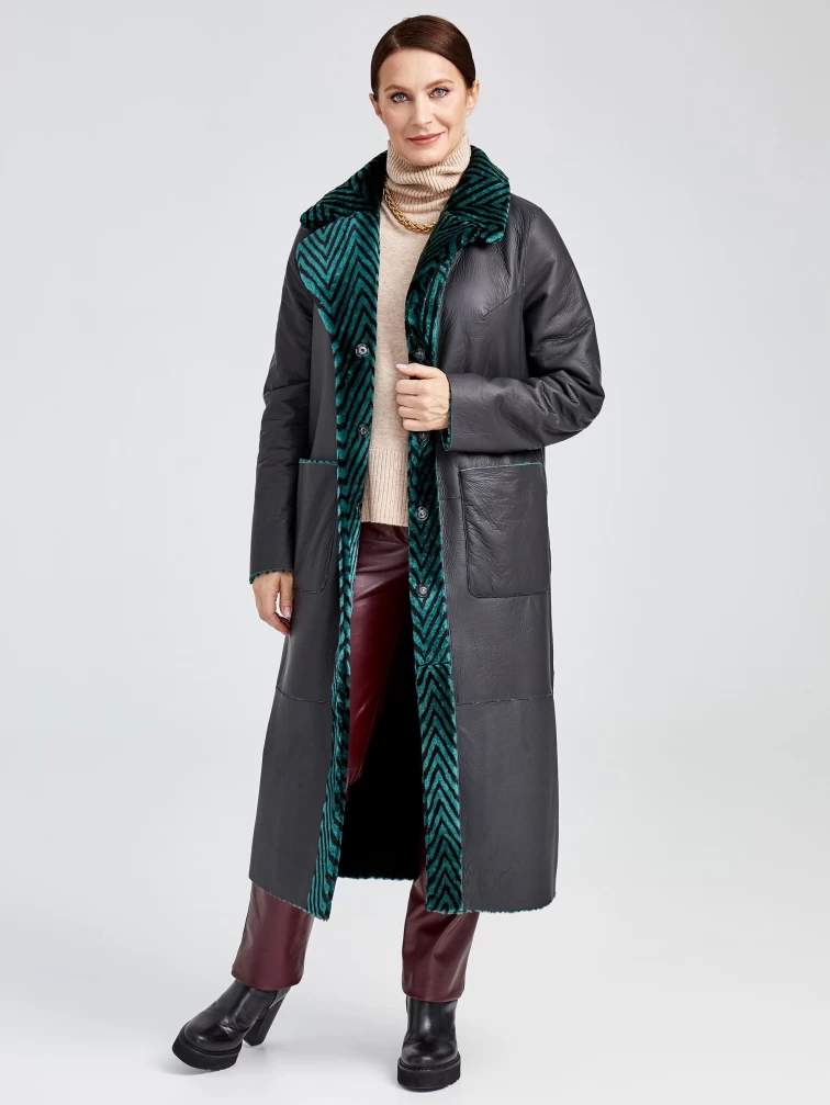 Зимний комплект женский: Дубленка 2003 + Брюки 02, зеленый/бордовый, р. 46, арт. 111246