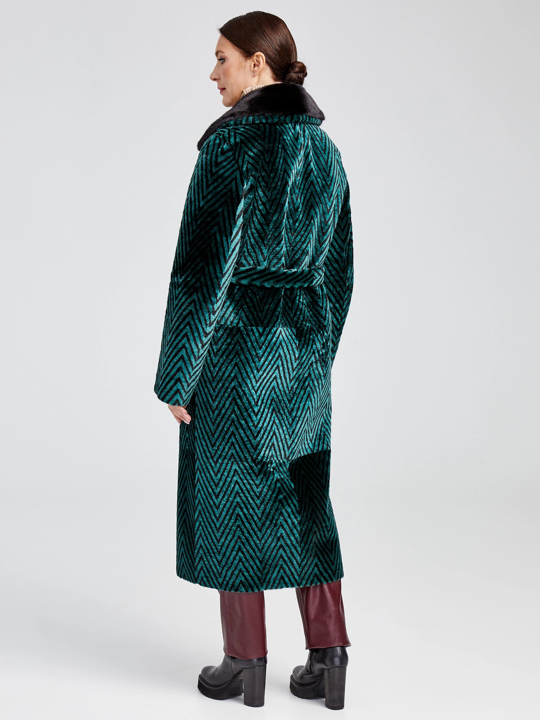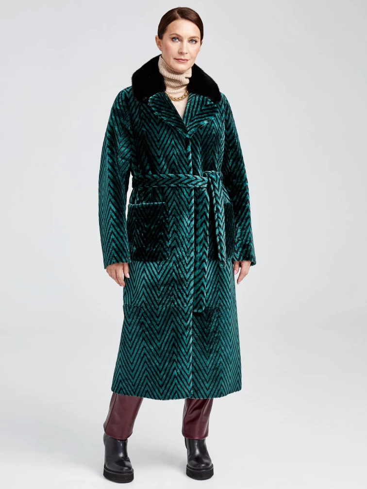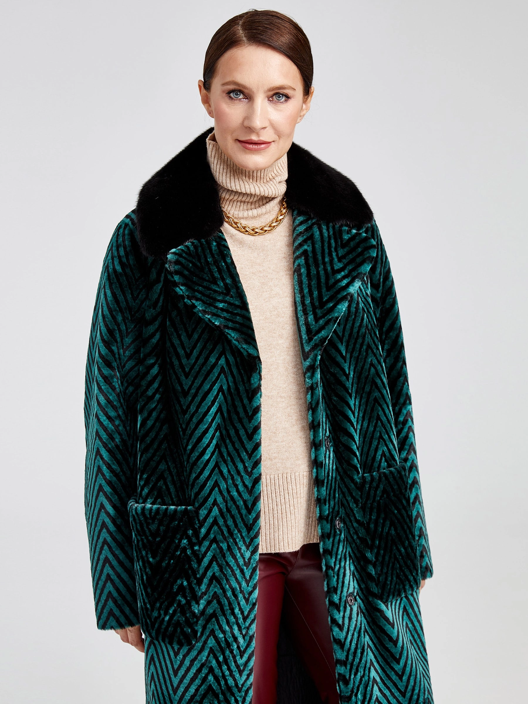 Зимний комплект женский: Дубленка 2003 + Брюки 02, зеленый/бордовый, р. 46, арт. 111246