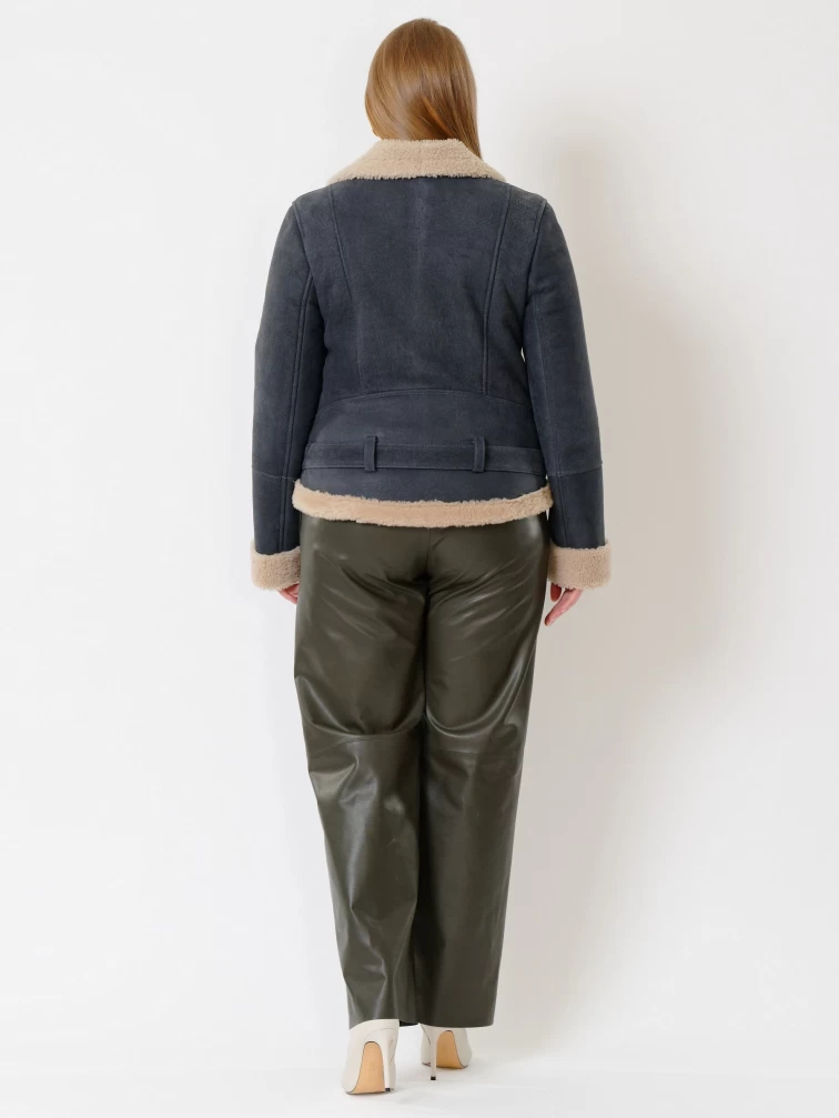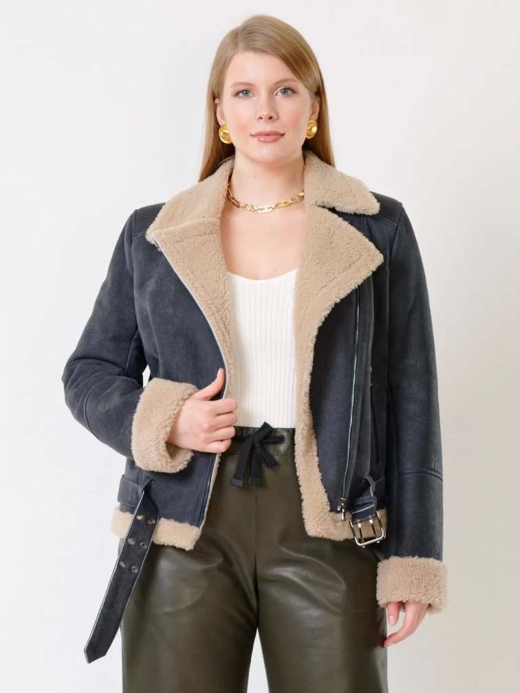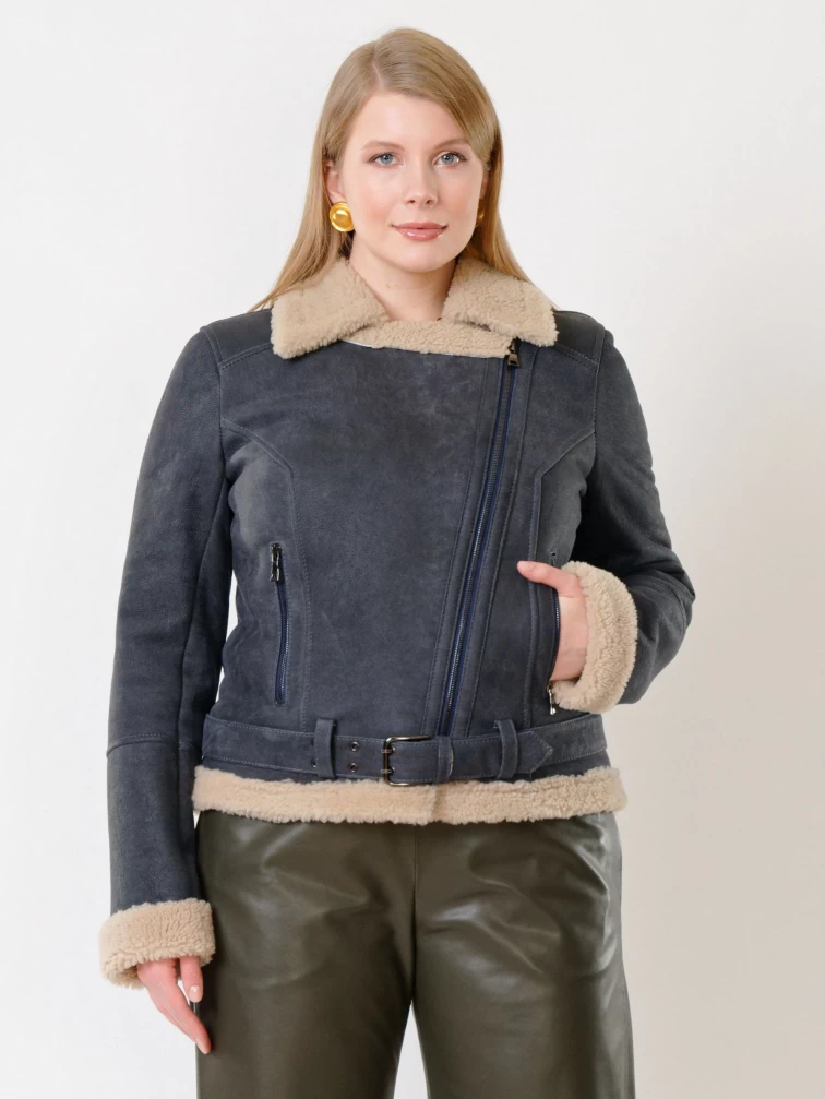 Короткая женская дубленка косуха из керли 201, синяя, размер 44, артикул 61990