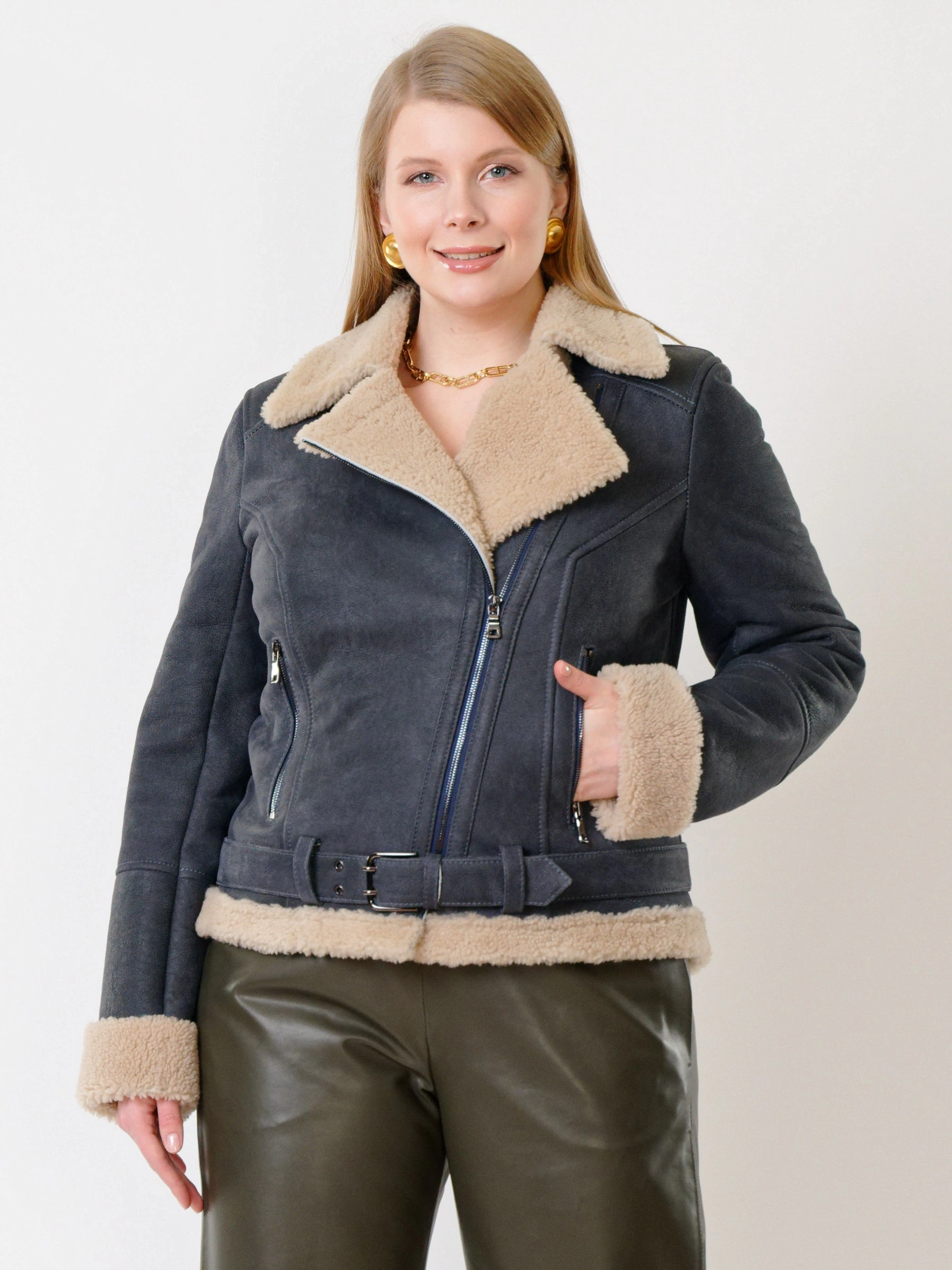 Дублёнка-авиатор из овчины кёрли. Максимально густой, нежный волос прекрасно защитит от холода. Длина рукавов регулируется отворотом меховых манжет. Карманы на молниях. Безупречная работа наших портных. Чёткая посадка по фигуре. Комфорт и великолепная свобода движений.