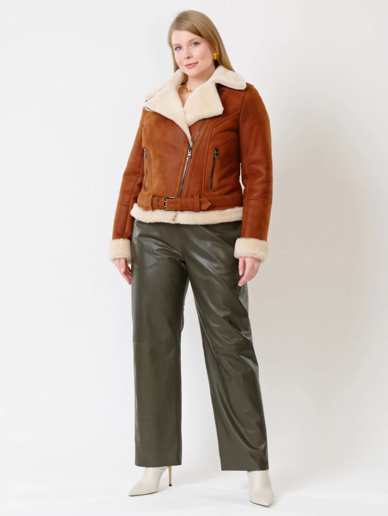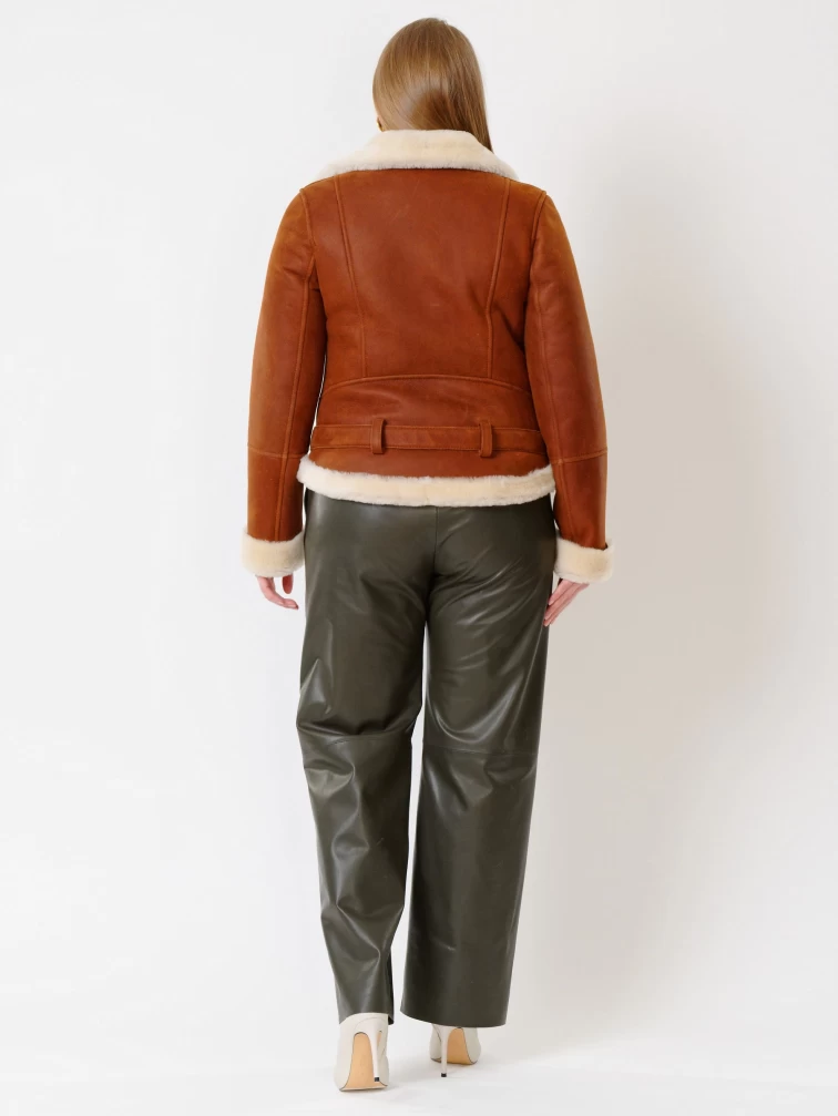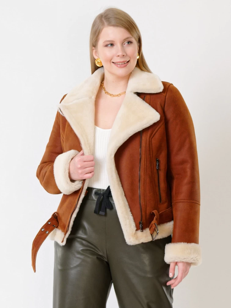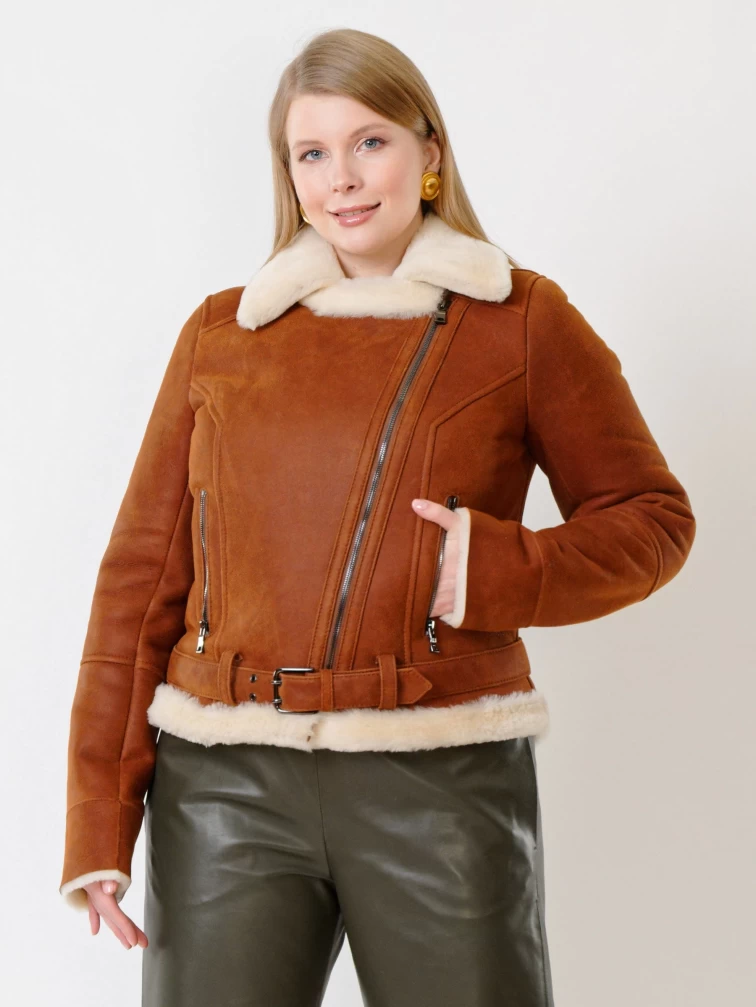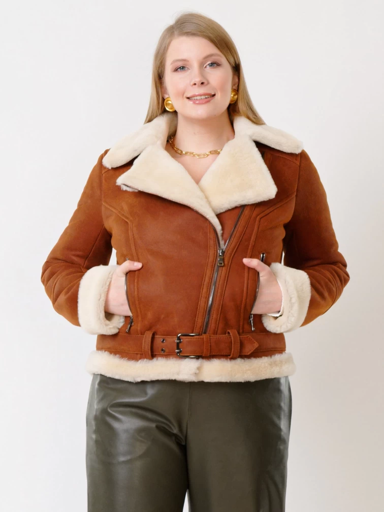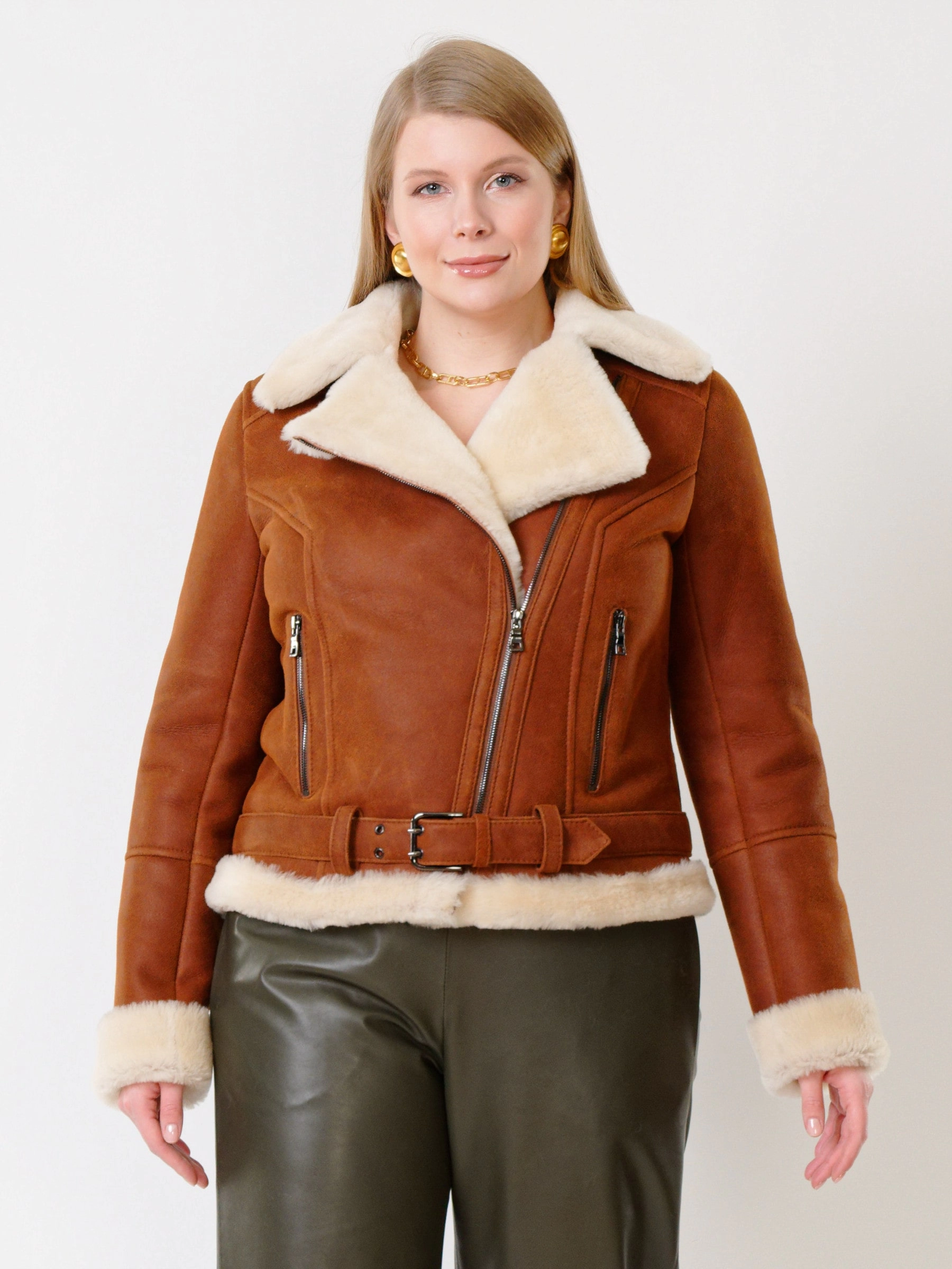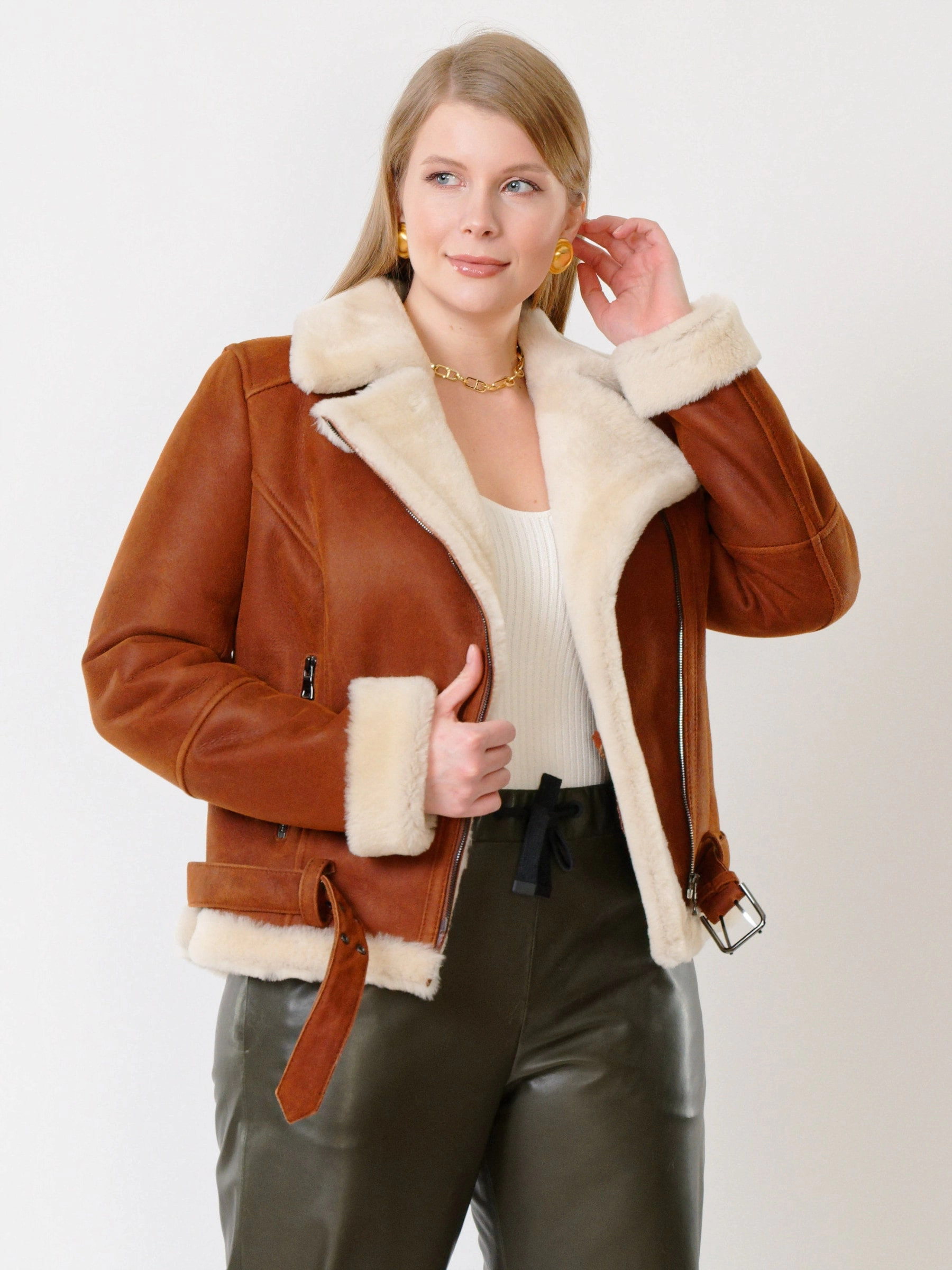 Короткая женская дубленка косуха из керли 201, табачно-рыжая, размер 44, артикул 62000