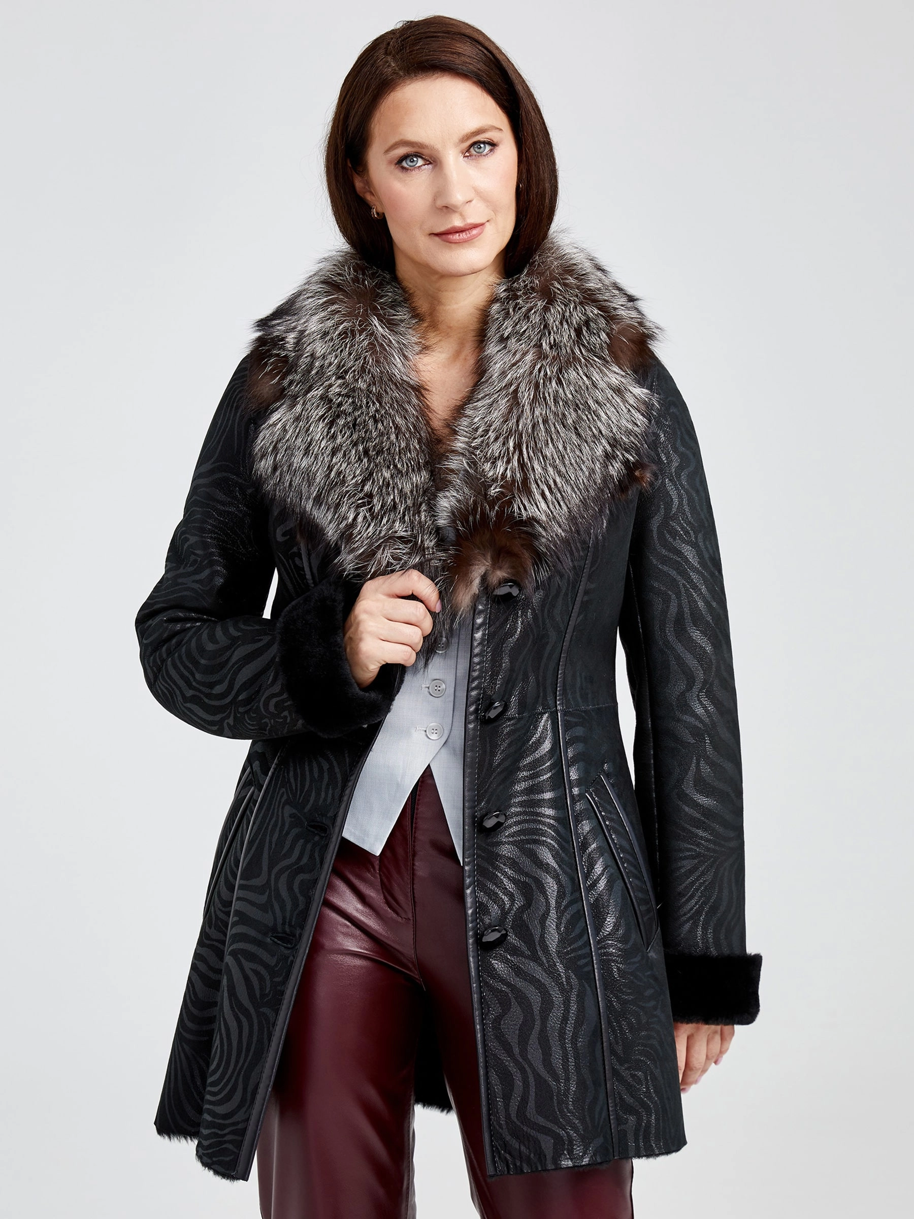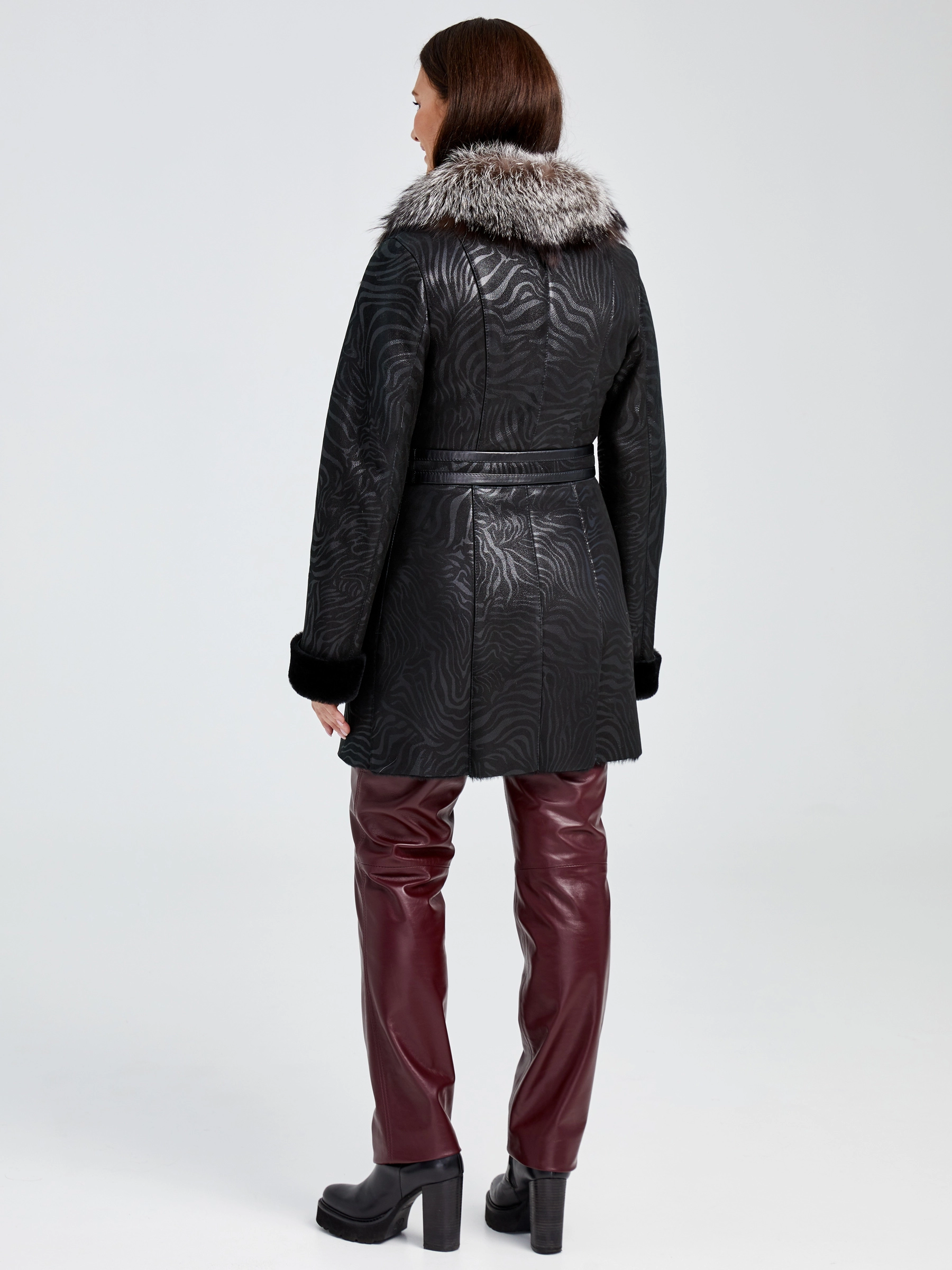 Дубленка женская с воротником из меха чернобурой лисицы 255, черная, размер 42, артикул 62390