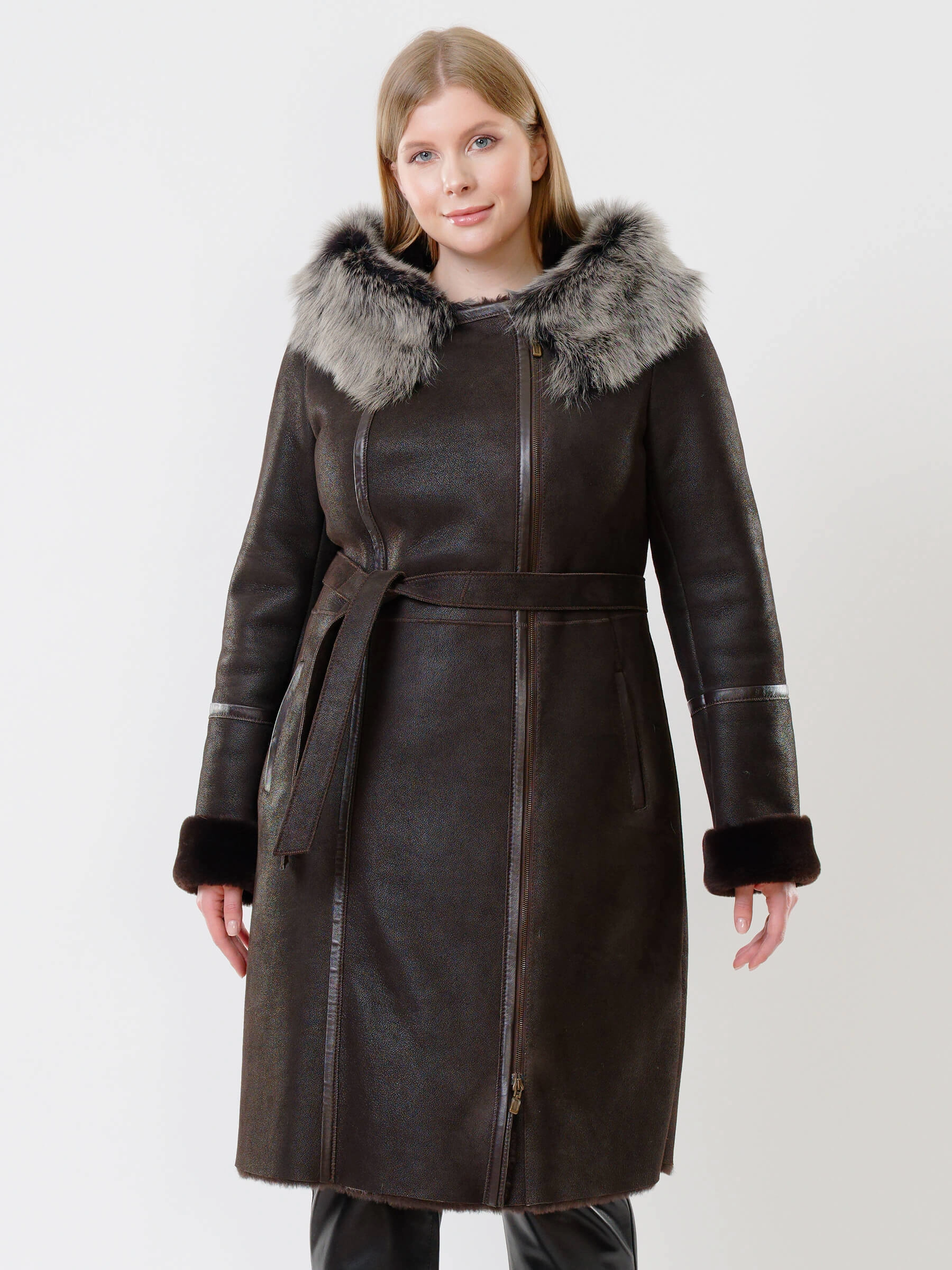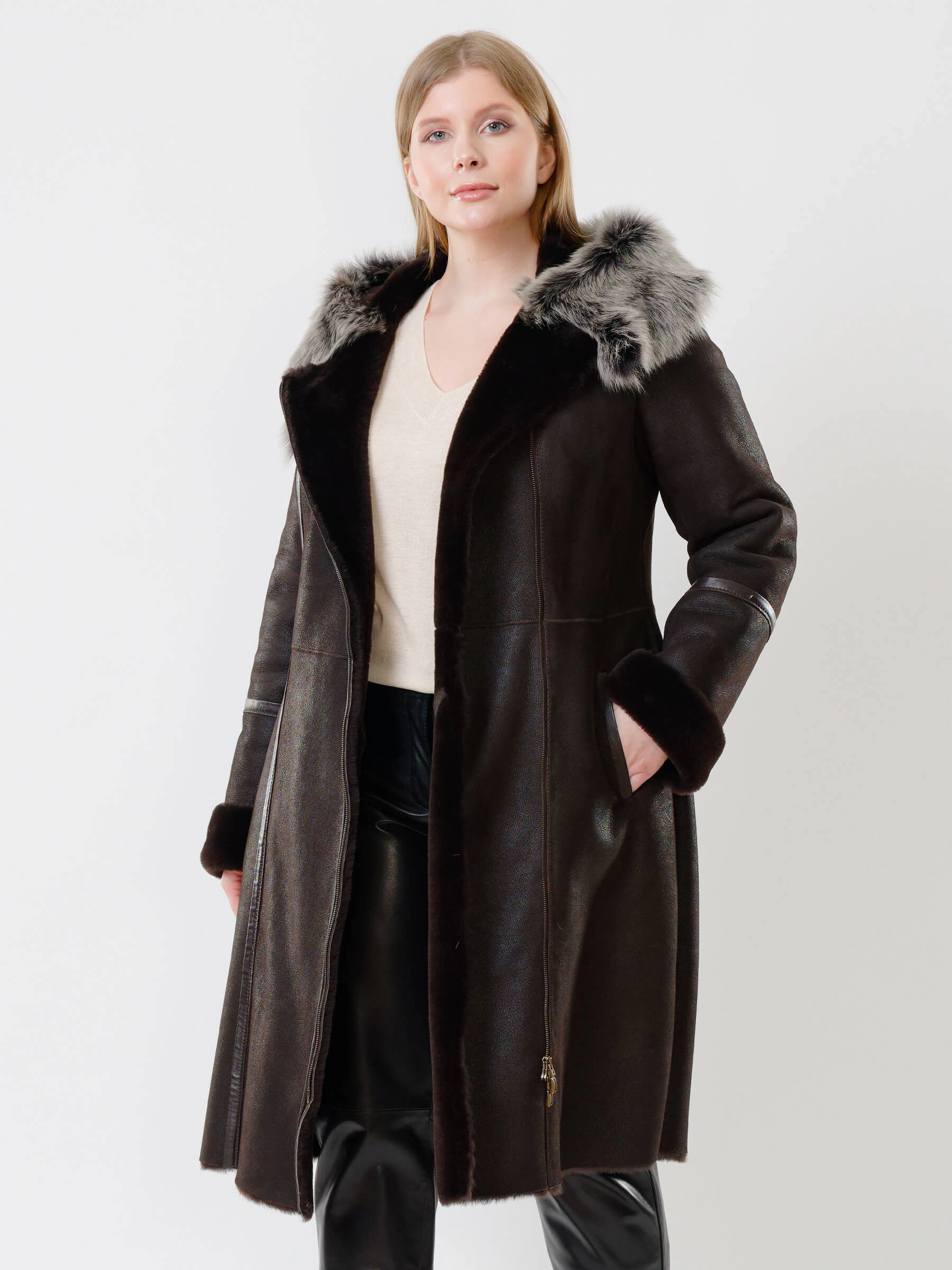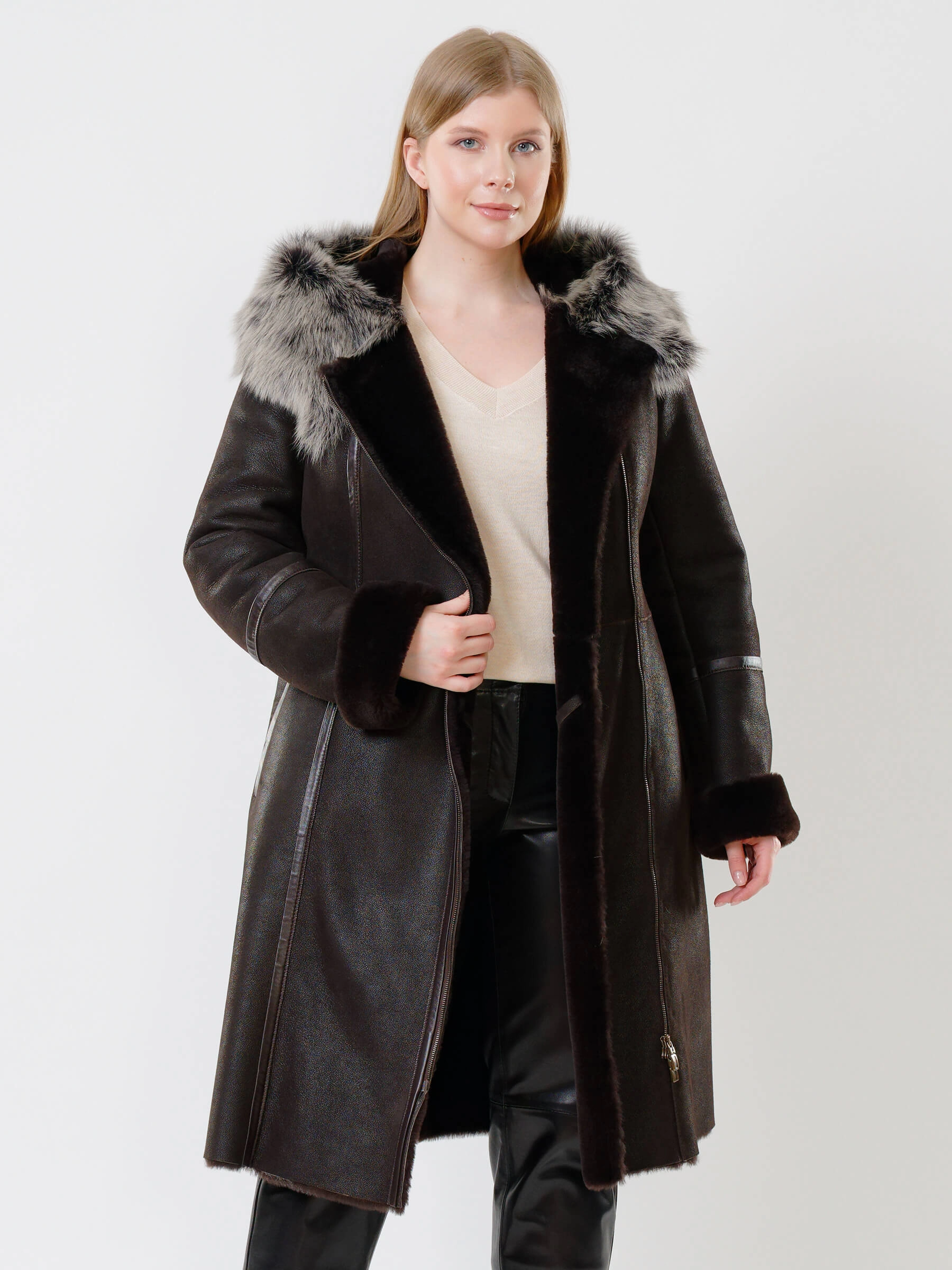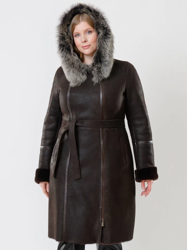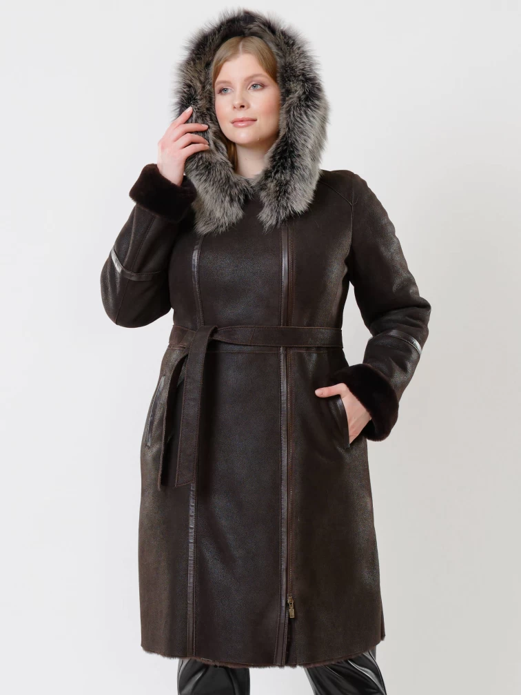 Товар женская дубленка с капюшоном из тосканы на молнии 265, коричневая, размер 42, артикул 61551 выполнен из овчина "мерино" с застежкой молния. Рассчитан на сезон: осень-зима. Длина изделия 100 см, силуэт полуприлегающий.