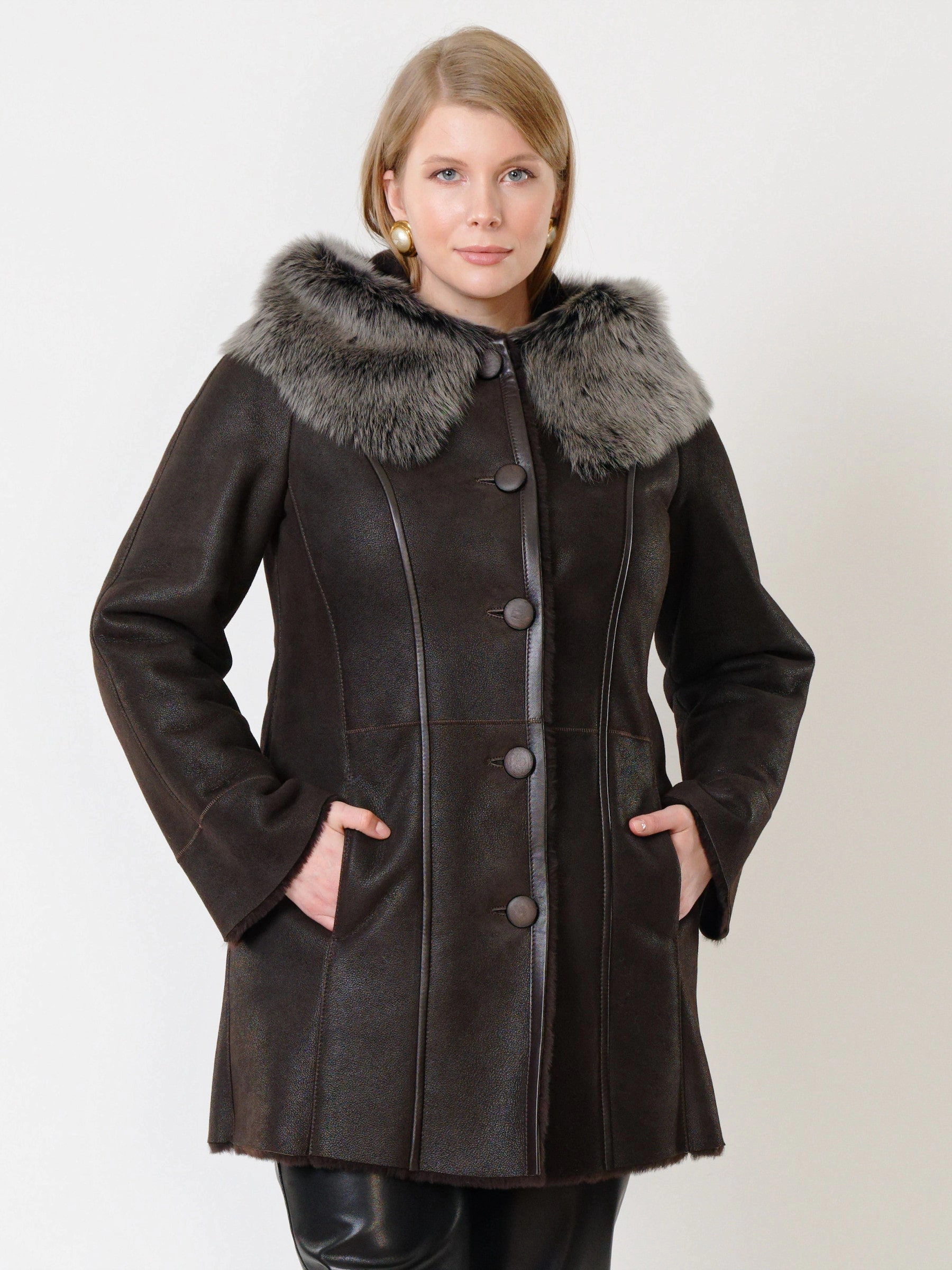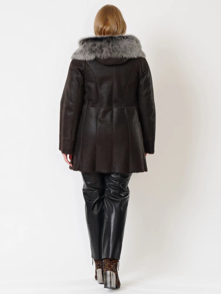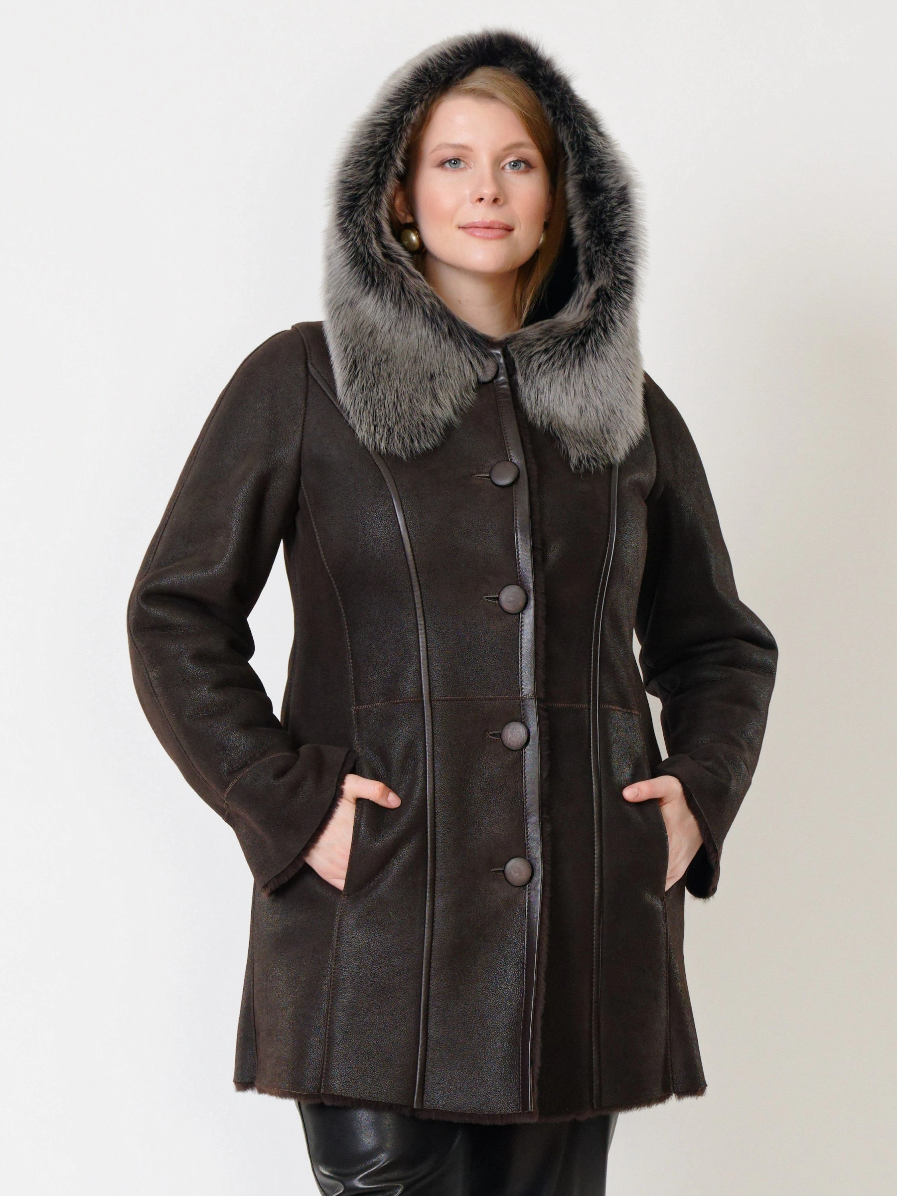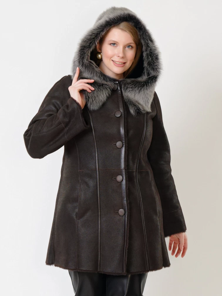 Товар женская дубленка с капюшоном из тосканы 270, коричневая, размер 66, артикул 14720 выполнен из овчина "мерино" с застежкой пуговицы. Рассчитан на сезон: осень-зима. Длина изделия 83 см, силуэт прямой.